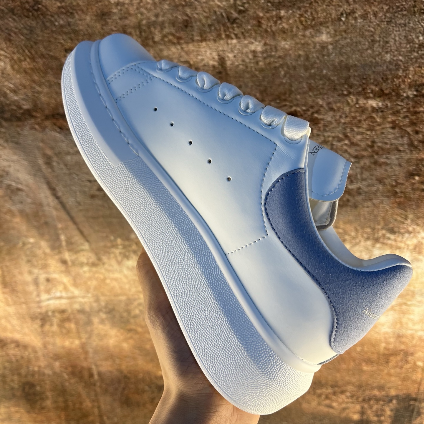 Alexander McQueen 亚历山大麦昆小白鞋全套专柜包装物及配件 附送快递加固牛皮纸盒 右脚鞋面嵌入核心防伪芯片装置 秒杀市面文案版本 支持NFC原码独立扫描 采用丝绸硬质头层小牛皮鞋面材质 内外超软小羊皮贴脚透气及超软PU脚感乳胶物料鞋 外置原抽真空高密度增高底 白色光滑牛皮革系带运动鞋 圆头设计 鞋跟点缀黑色绒面革细节 搭配宽扁鞋带 鞋舌和后帮饰有 Alexander McQueen 品牌标志 阔型橡胶鞋底 运动鞋另配一副鞋带材料 100 小牛皮 所有细节与原版一致 尺码 35 36 37 38 39 40 41 42 43 44 45