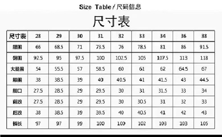 尺码 28 38