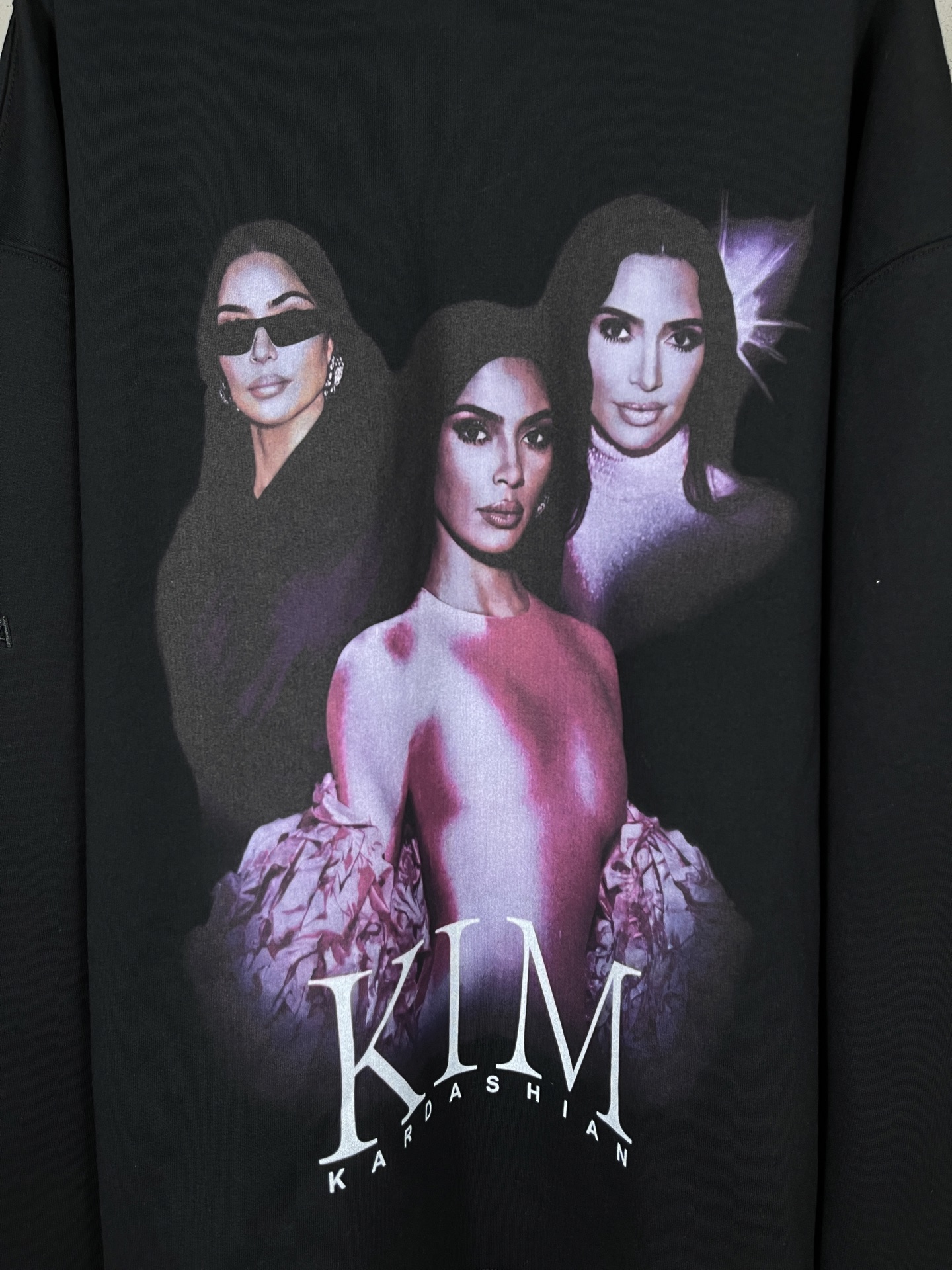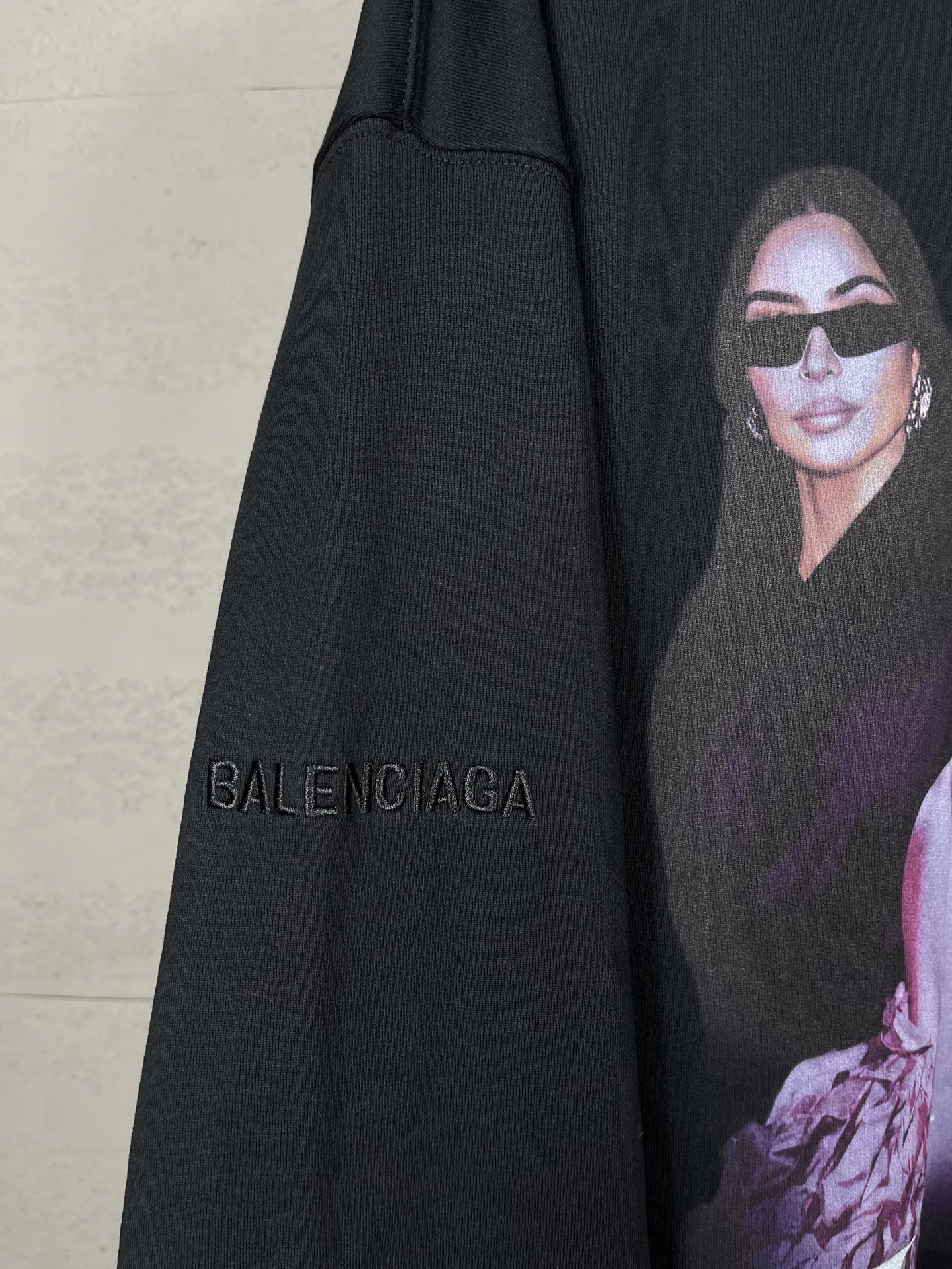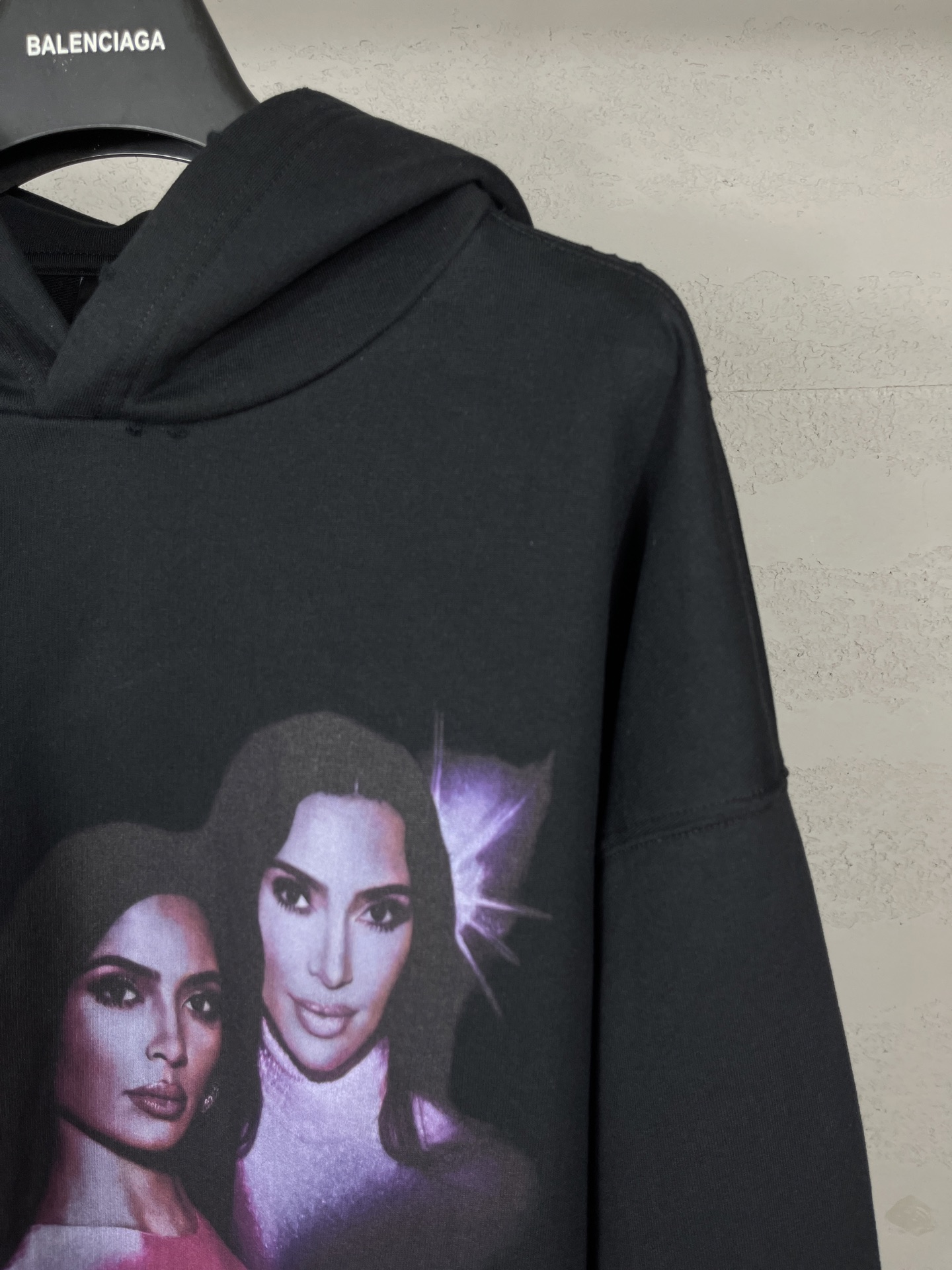 实拍图 顶级版本 官网品质 BALENCI GA 25新款 正面以卡戴珊人像艺术作品直喷印花 后面以艺术签名印花 右袖刺绣英文磨烂做旧连帽卫衣