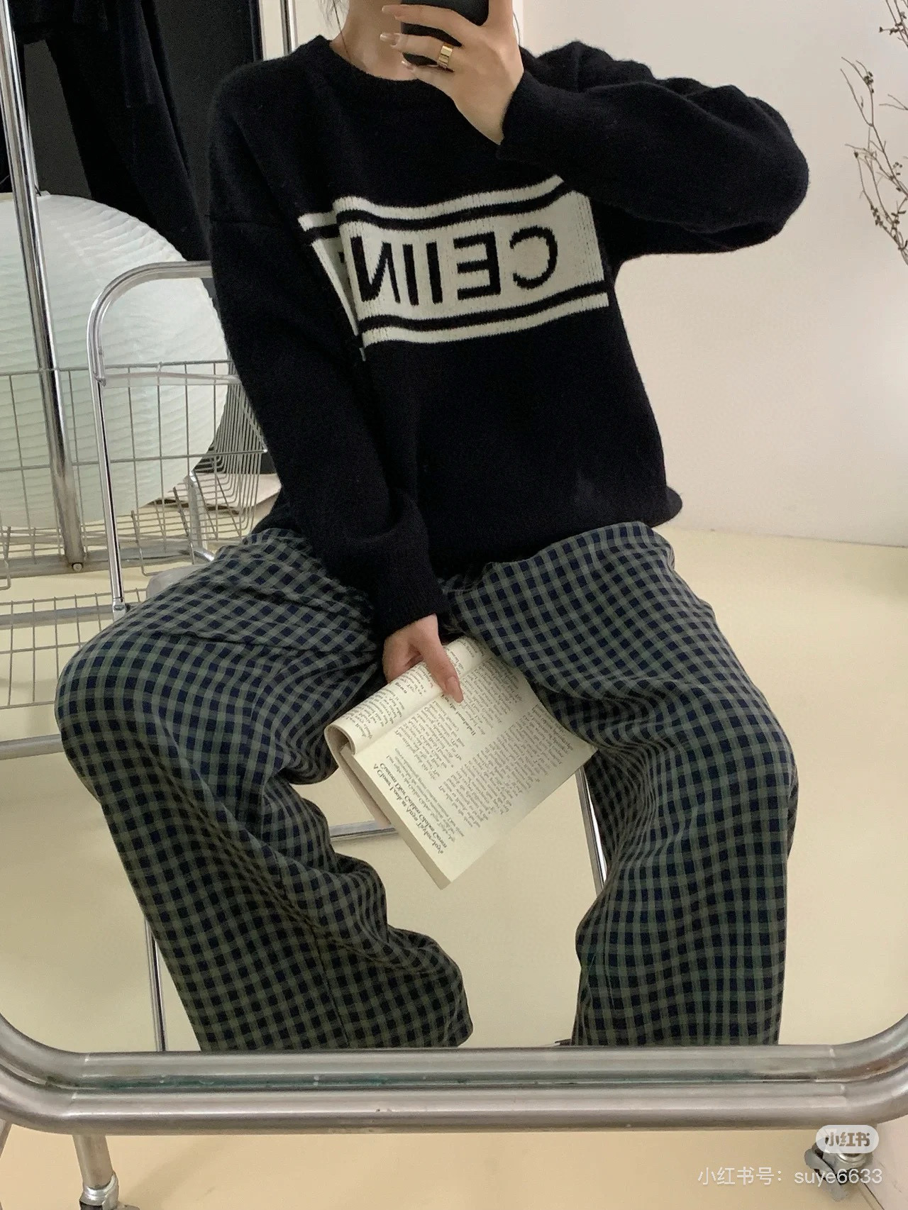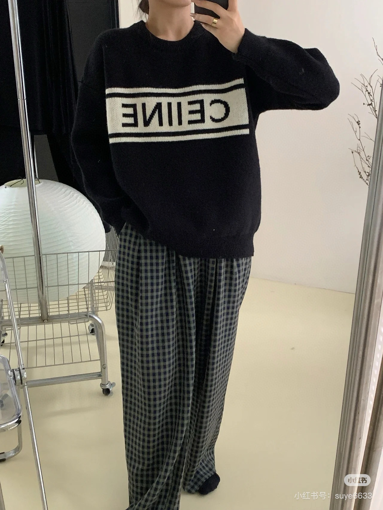 模特咨询图 款号 Y246 塞琳 CELINE 横幅经典字母logo针织圆领毛衣 超高克重重工制作 面料精选羊毛混纺面料柔软舒适透气亲肤 上身效果极佳 不扎人很舒适 进口机器编织拼接设计 内里包边包条做工高版本 细节完美 版型宽松 良心制作 吊牌 吊粒 水洗 包装袋 全套辅料 颜值相当高 做工超精致 颜色 黑色 尺码 S M L XL