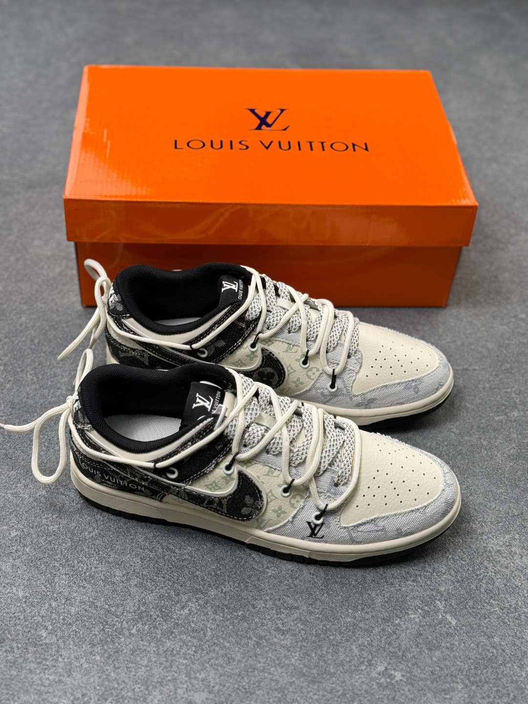 Nk SB Dunk Low LV联名 米灰黑牛仔抽绳 周年高端定制 低帮休闲板鞋 定制鞋盒 大厂纯原品质出货 超高清洁度 皮料切割干净无任何毛边 细节完美