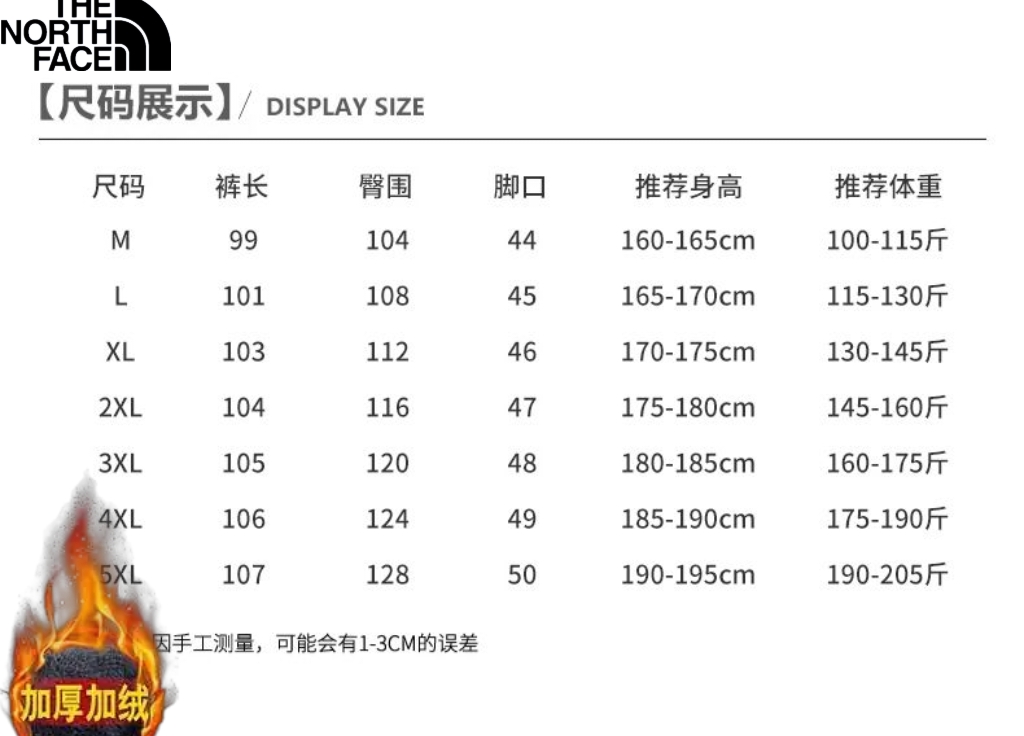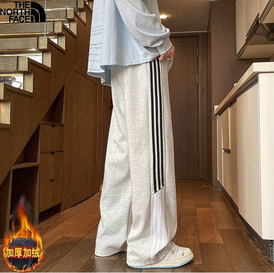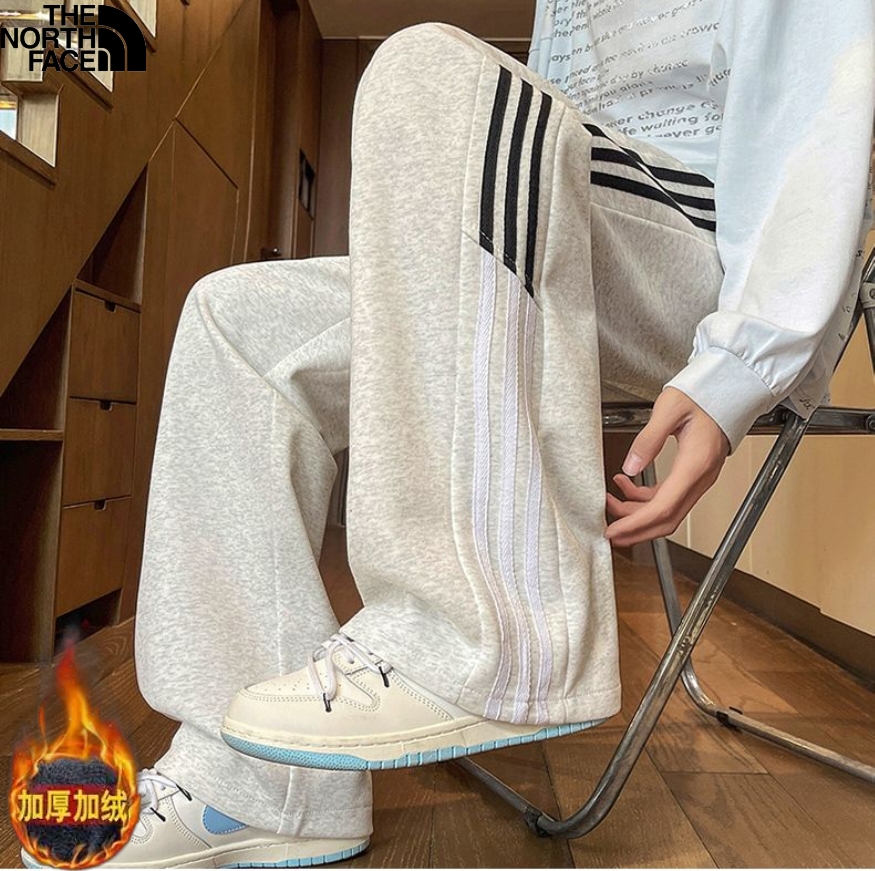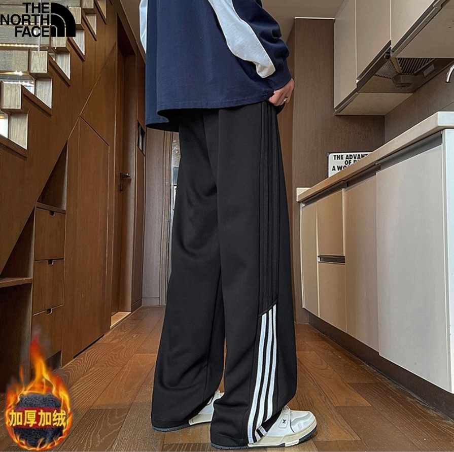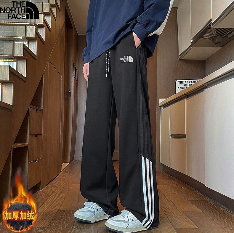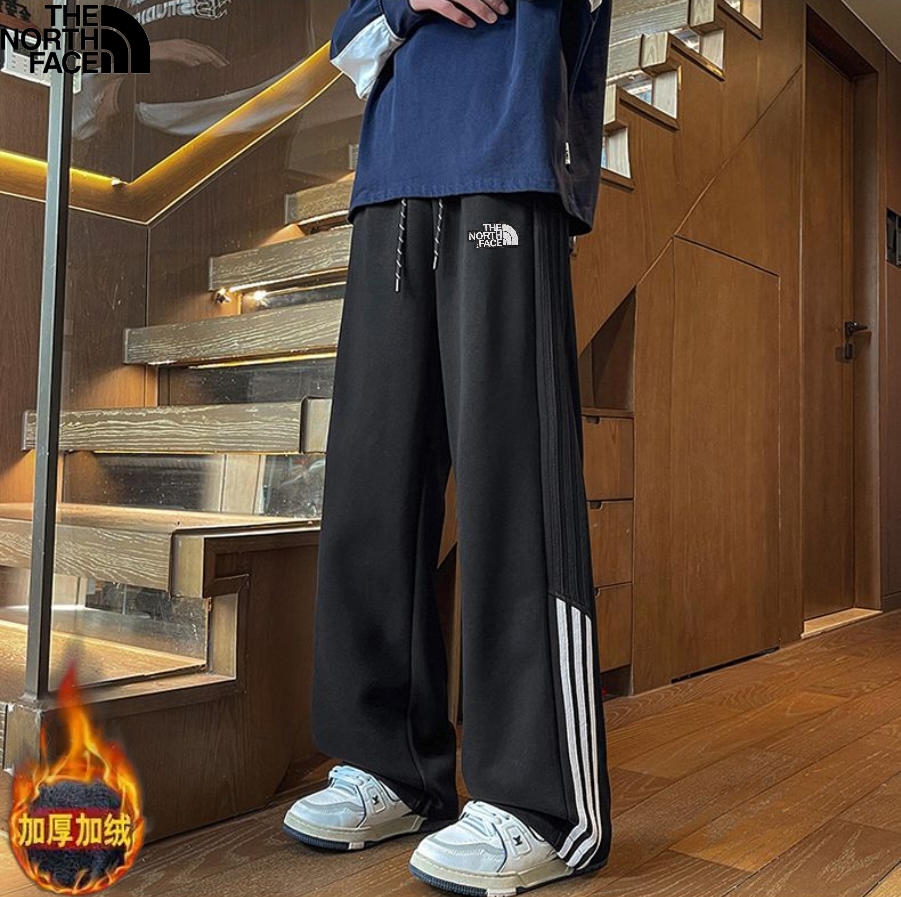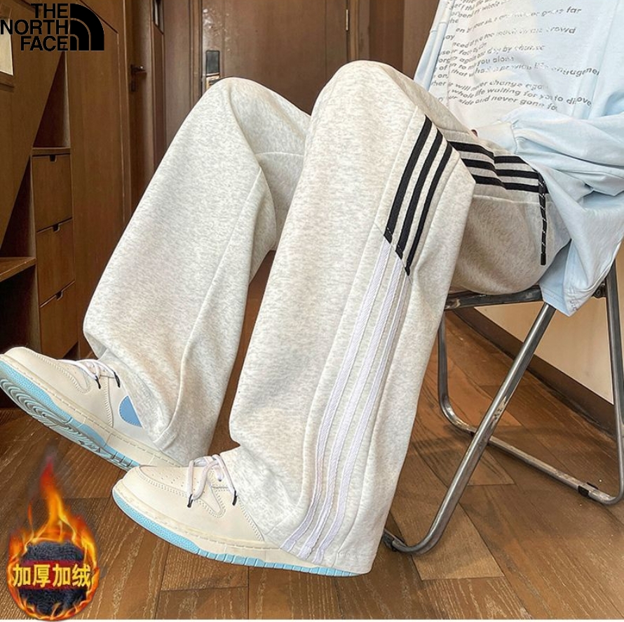 北面The North face冬季新款 男女同款侧边条纹拼接加绒加厚百搭卫裤 男士直筒裤 休闲裤长裤