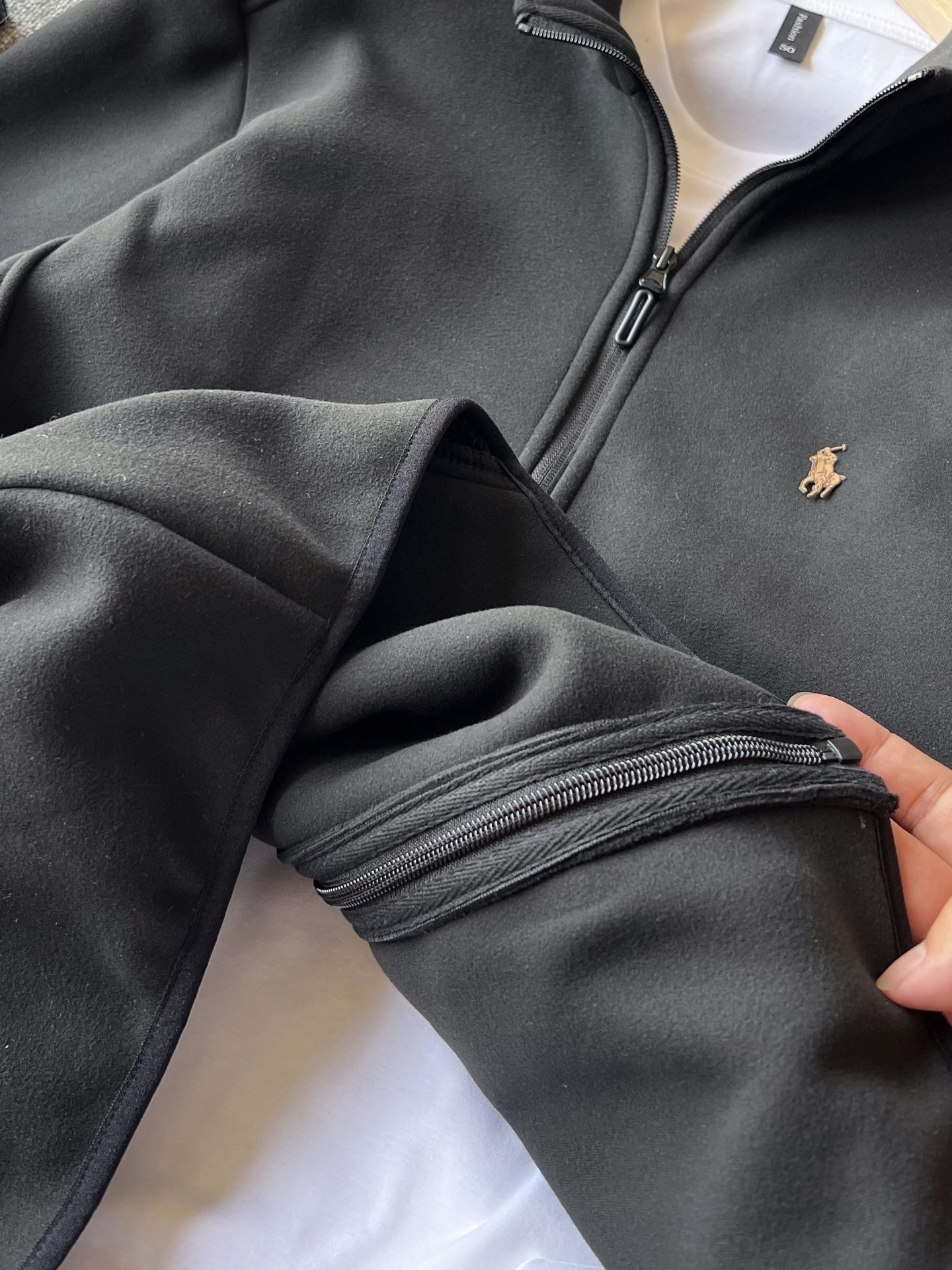 细节细节再细节 Ralph Lauren家商场新品超柔加厚拉链款外套 胸前拉夫劳伦棕色立体小标 细品表面纹路清晰 十分精致 双侧拉链做了压胶封边工艺 臂膀做了功能性拉链口袋设计 增强立体质感 双袖以及下摆都做了包边设计 细节做的十分到位