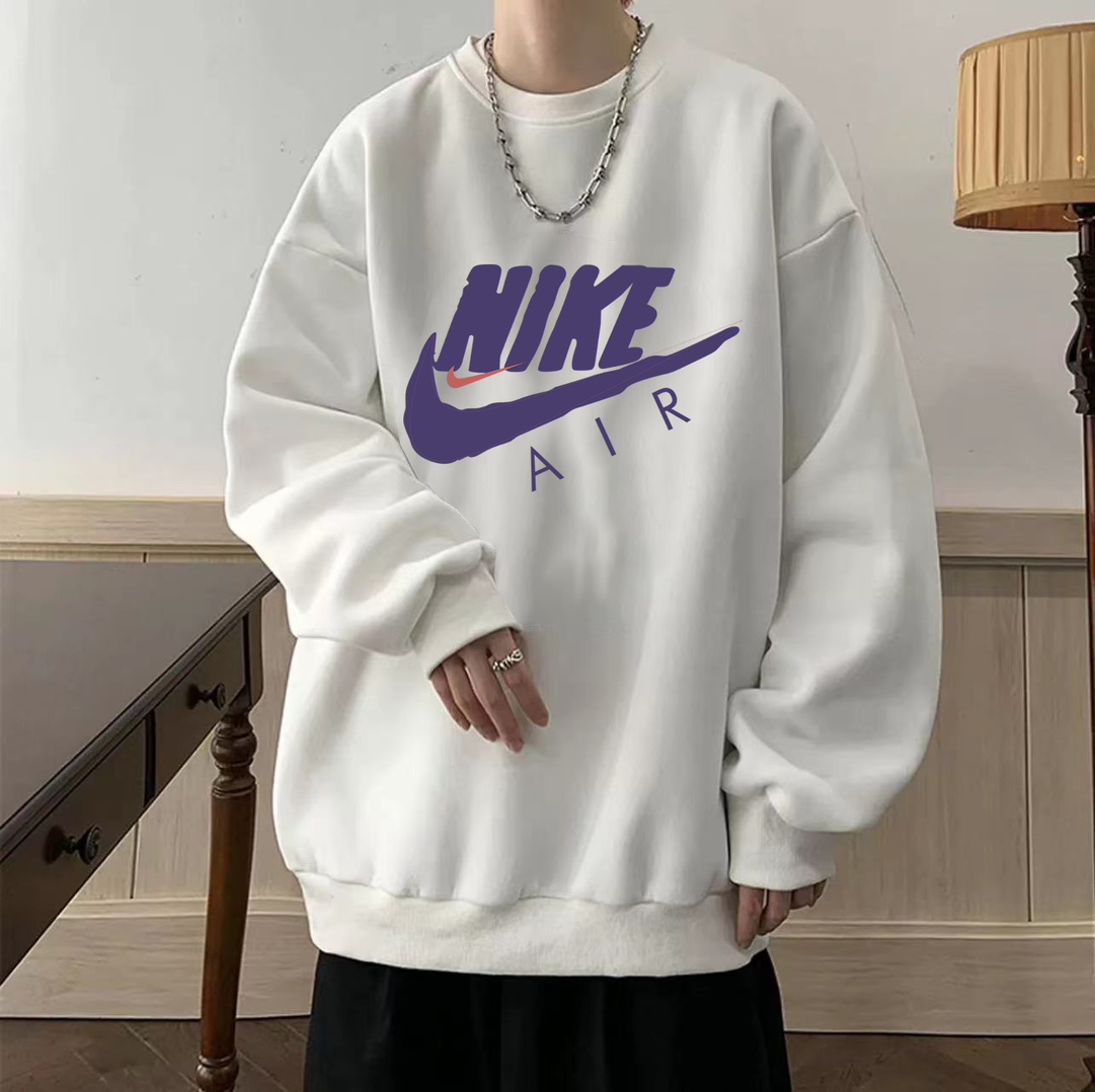 Nike耐克AIR紫色涂鸦冬季加绒加厚圆领卫衣