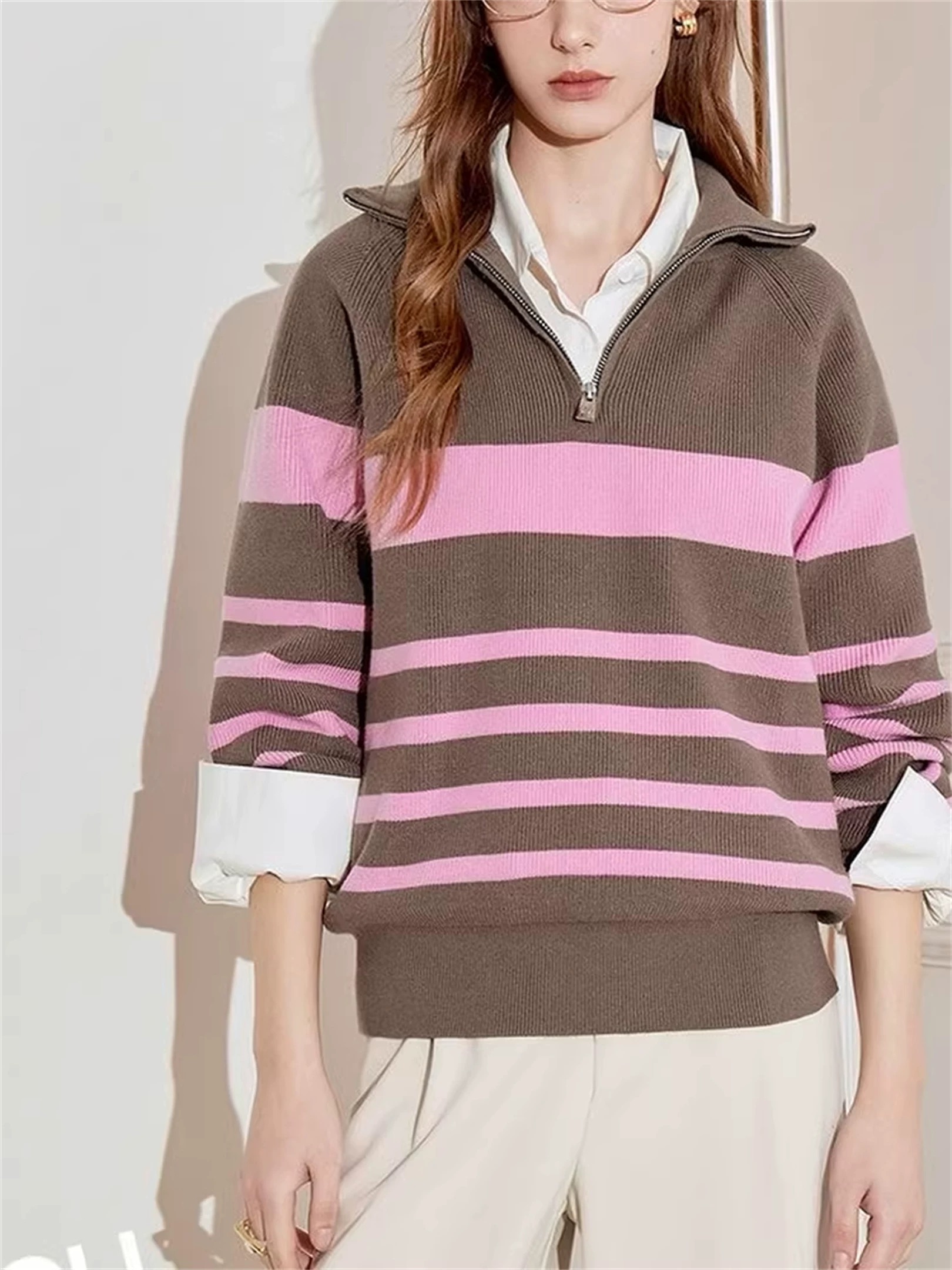 焦糖棕撞甜粉 甜酷平衡得刚好 软乎乎的针织质感贴肤暖 配短裙是甜系辣妹 搭阔腿裤又能穿出慵懒氛围感