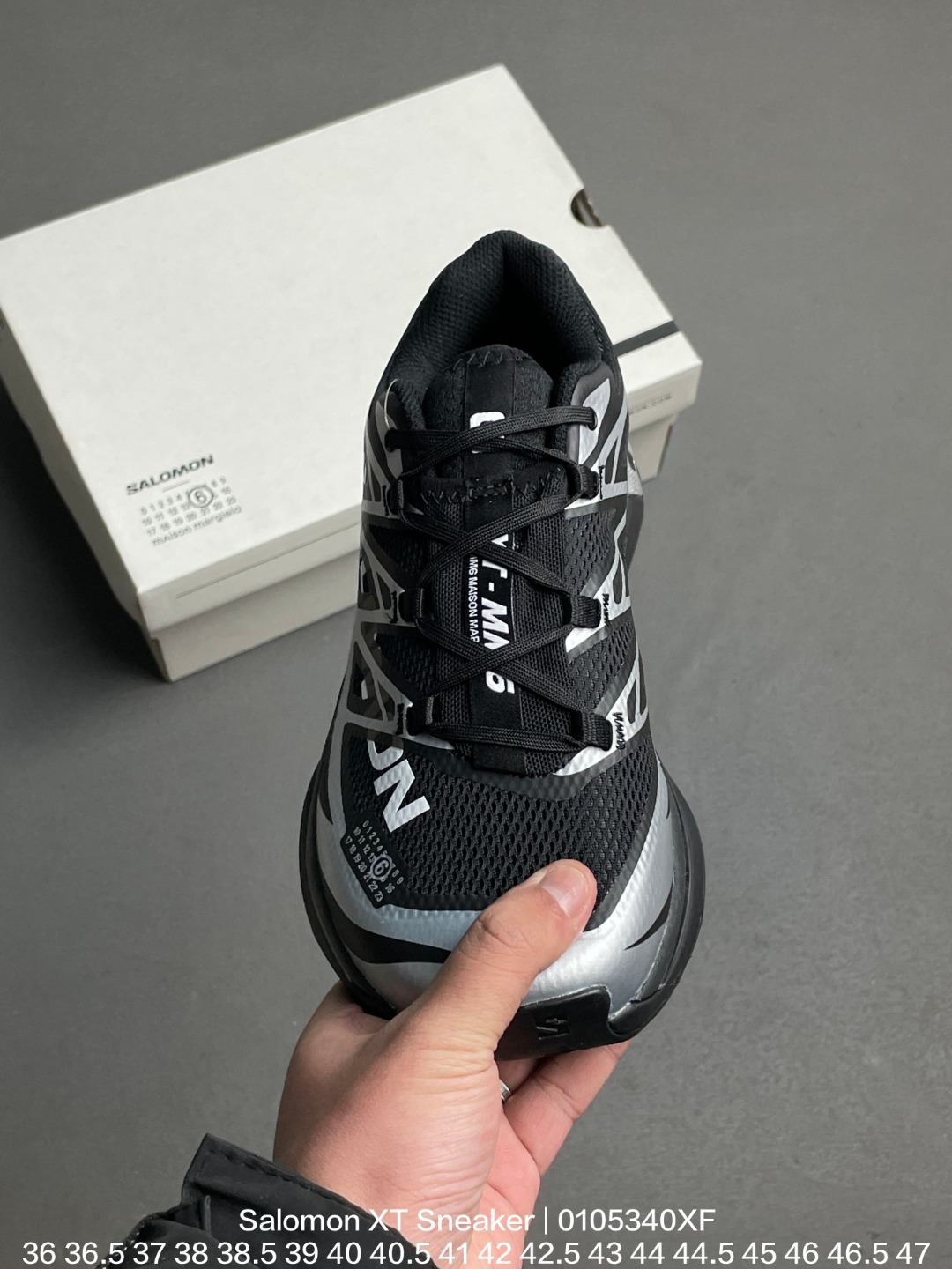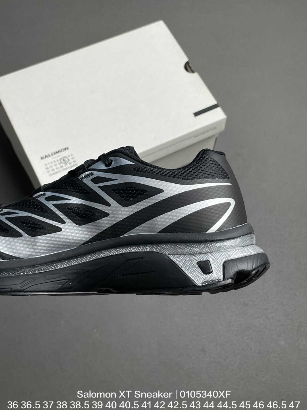 Salomon 萨洛蒙 采用工程透气织物鞋面材质 欧索莱环保去臭环型组合鞋垫 外置三层双层组合橡胶高回弹泡棉科技防滑大底法国户外品牌 萨洛蒙联名比利时著名设计师品牌 马丁 马吉拉 MM6 Maison Margiela x Salomon XT Sneaker Vanilla Ice XT系列低帮城市越野机能透气休闲运动鞋 联名黑银MM6