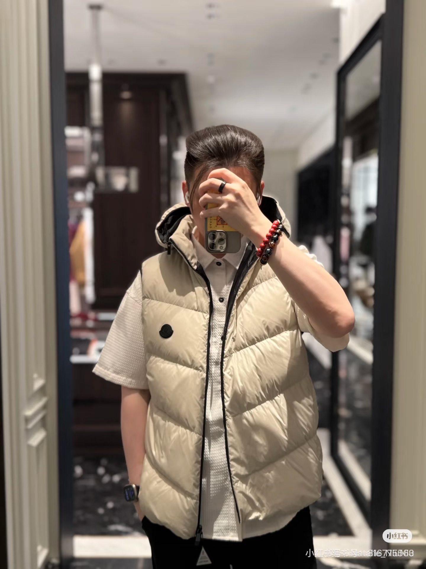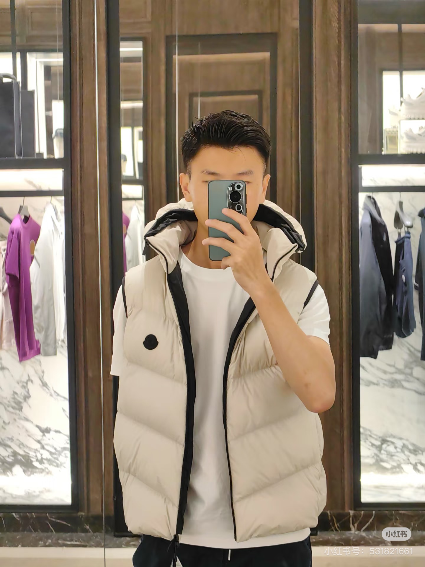 很基础的设计 与经典款MAYA马甲相比 它更显时髦的地方是帽子的设计 可拆卸的设计让马甲呈现不同穿搭风情 比经典款更为实力抢镜 兼具时髦耐看的造型 虽然轻薄 里边填充的是白鹅绒 上身特点的保暖 面料采用定织的防水尼龙材质 修身的版型设计 上身实力显瘦 男生女生都能轻松驾驭起来