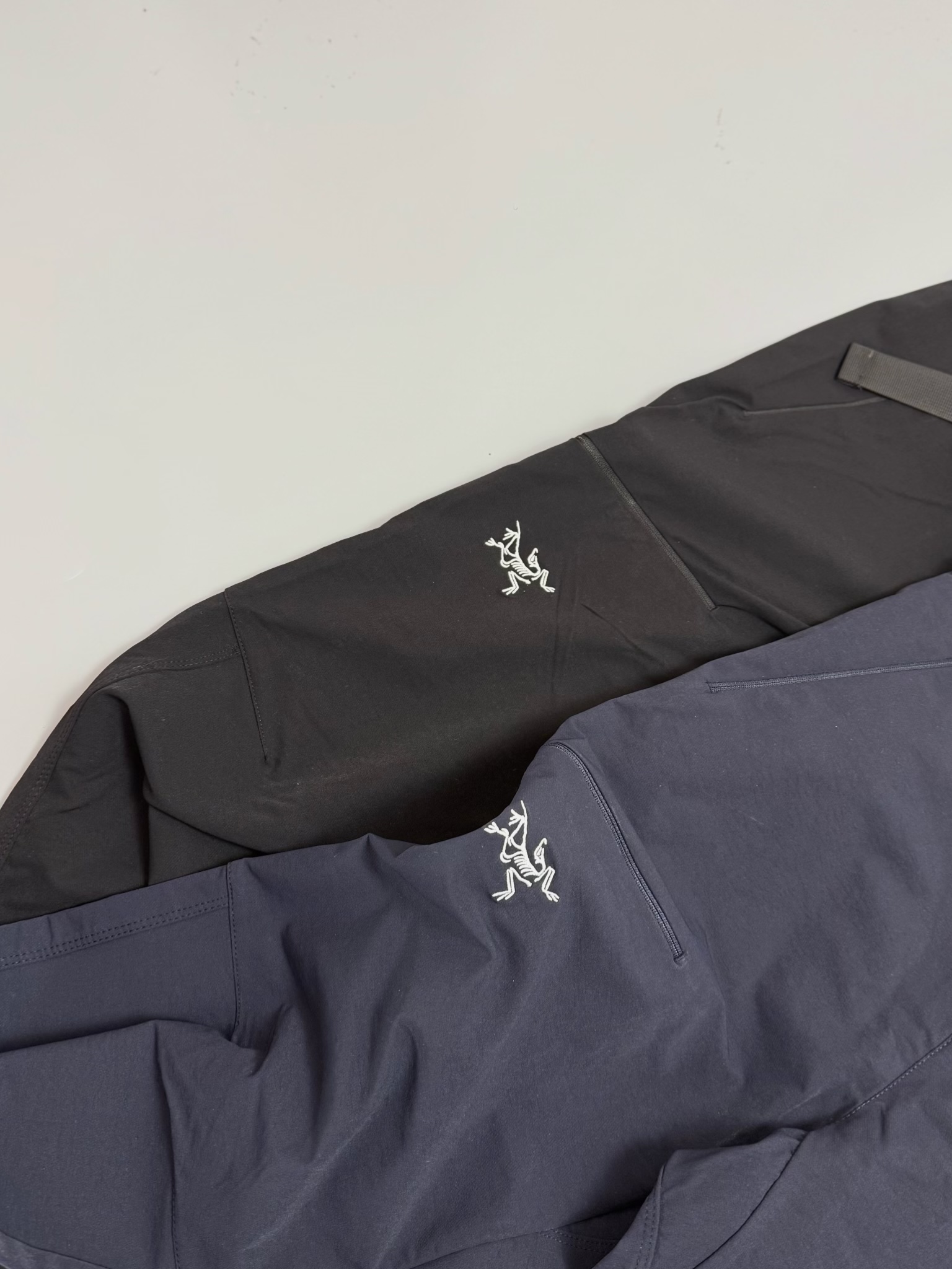 细节满满 有两个带拉链的插手口袋 还有一个大腿口袋 方便又安全 刺绣logo精致有质感