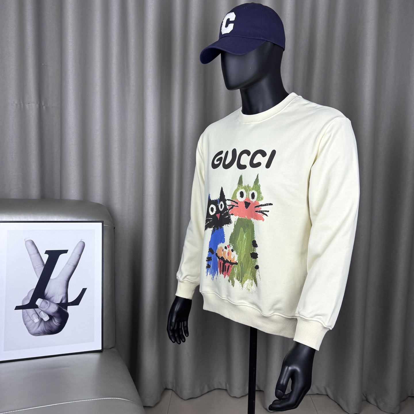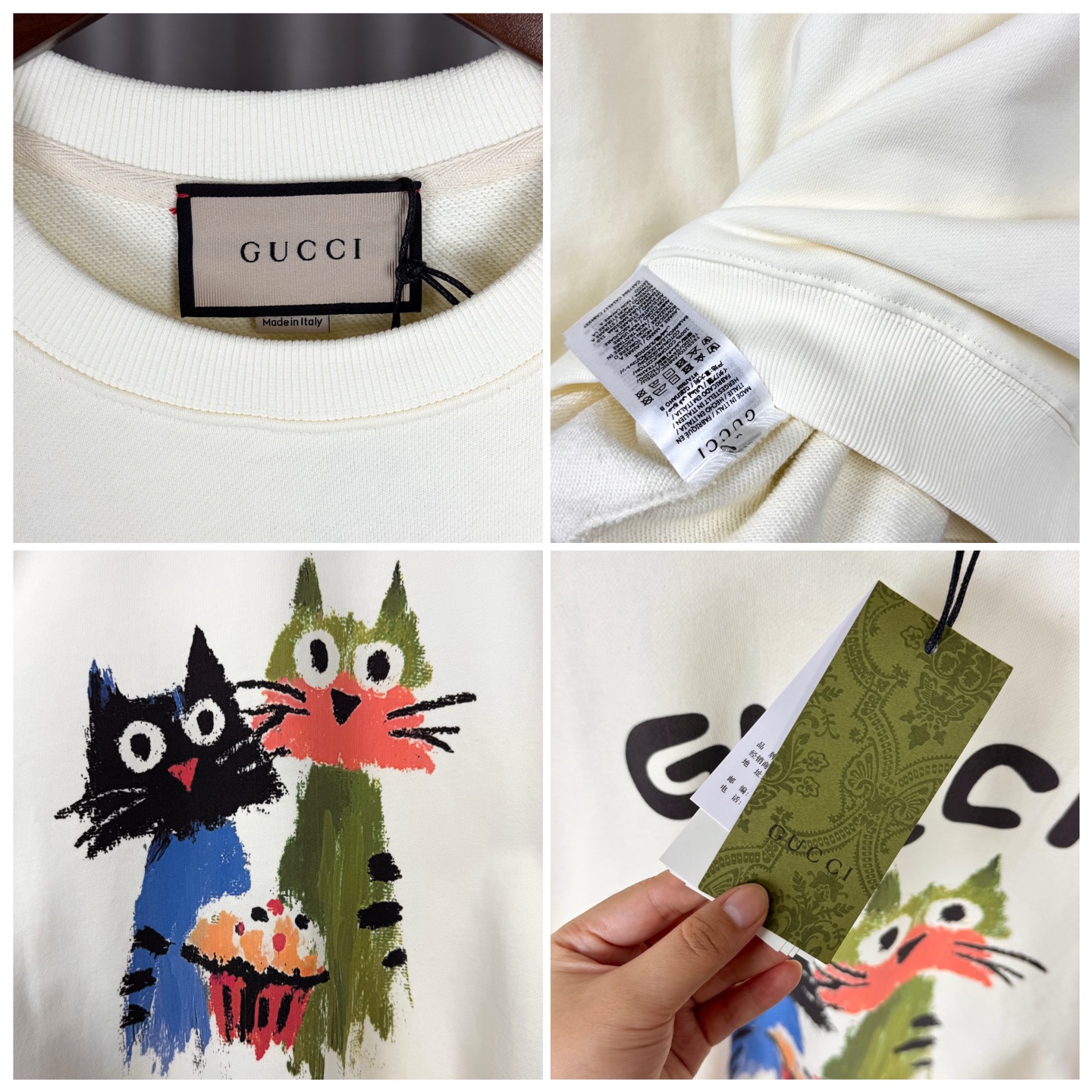 𝑮𝒖𝒄𝒄𝒊 古驰趣味卡通小狗插画系列印花 玩偶积木小猫 圆领套头长袖卫衣男女同款t恤