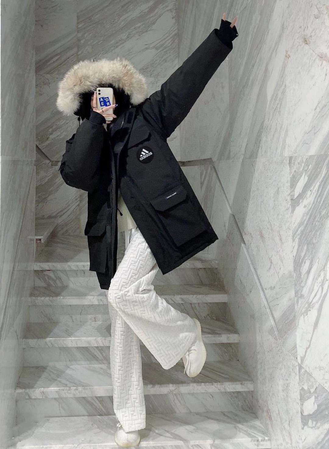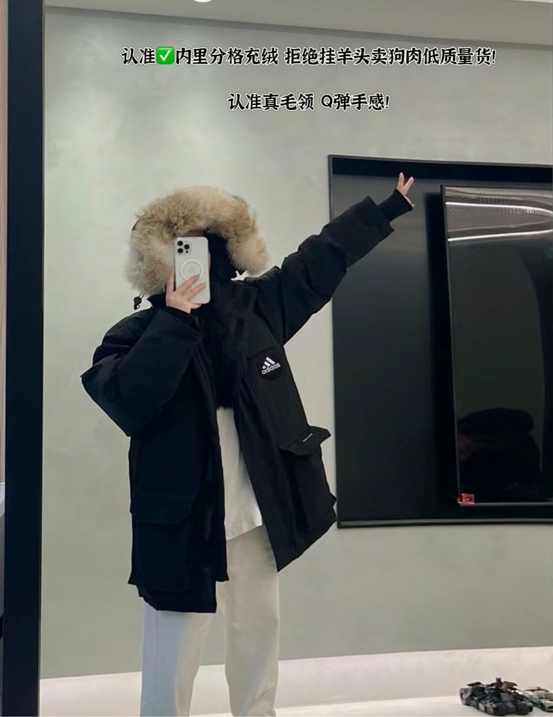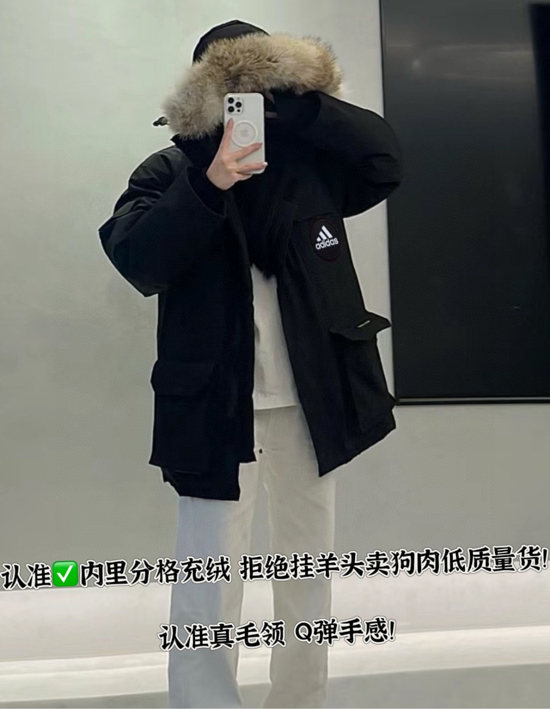 售后不停 阿迪达斯Adidas90白鸭绒中长款羽绒服派克服内里分层设计男女同款羽绒服
