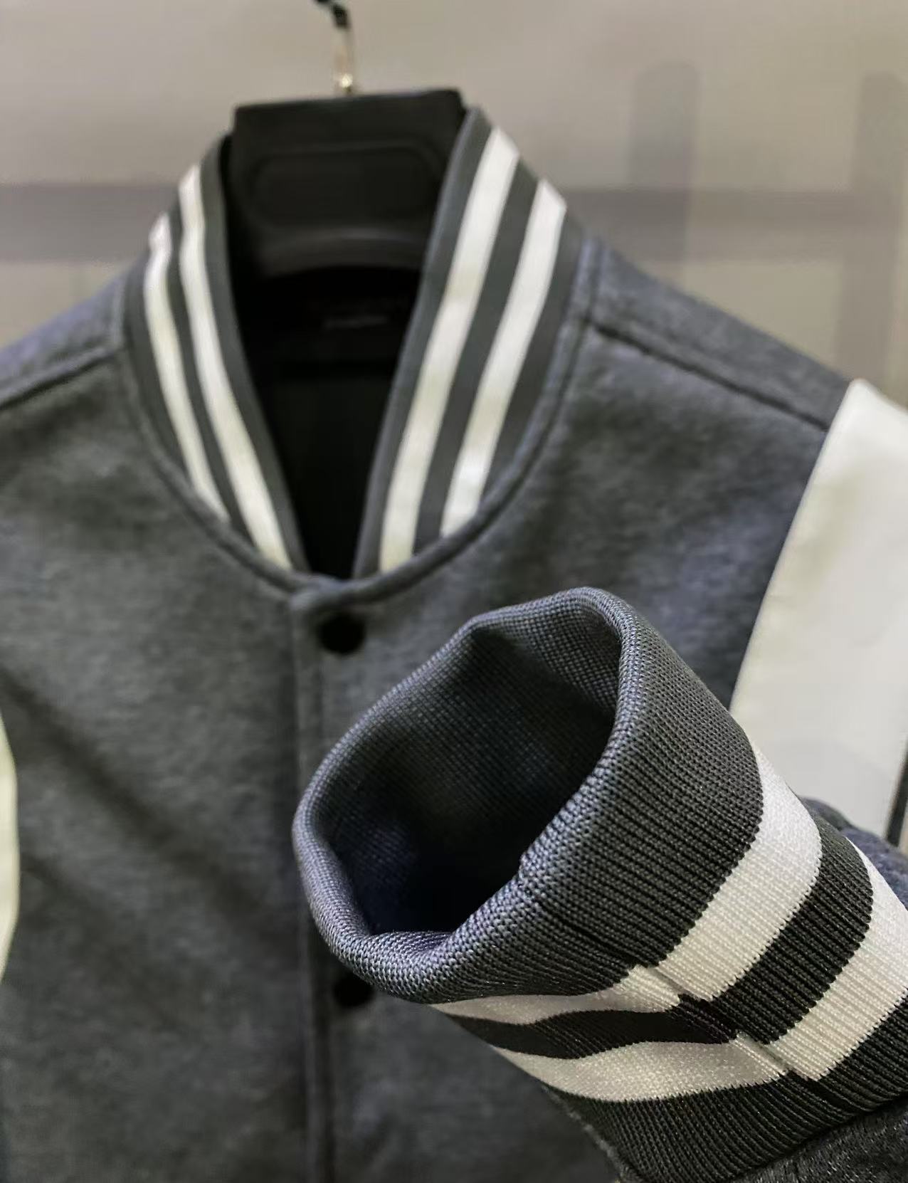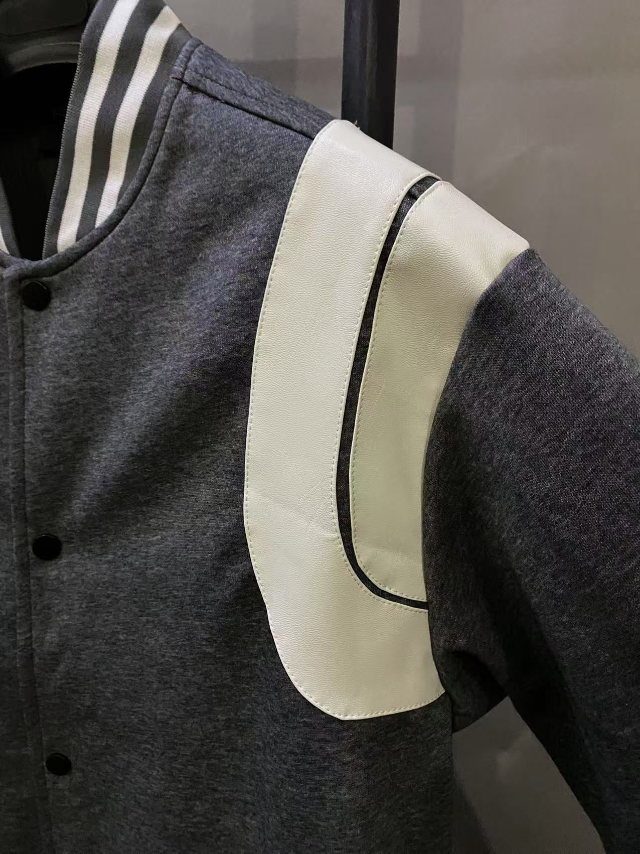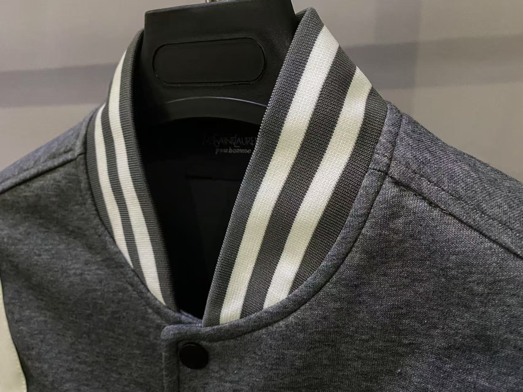 圣罗兰𝐒𝐚𝐢𝐧𝐭 𝐋𝐚𝐮𝐫𝐞𝐧𝐭 𝐏𝐚𝐫𝐢𝐬 SL经典混羊毛毛呢皮革拼接夹克棒球服外套