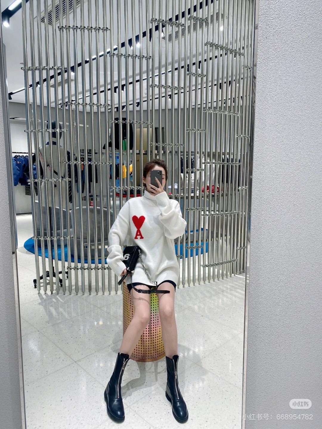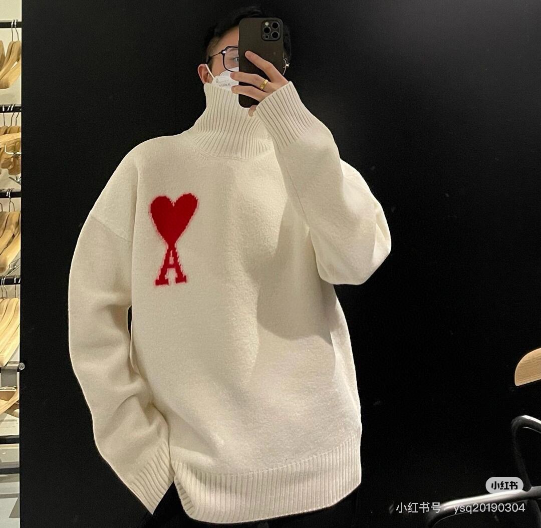 代发 市场第一版本 Ami 爱心2025SS 经典款提花大爱心高领毛衣 整衣净重730G 市场最强厚度 不够克重可退 万年经典款 谁穿谁好看 百搭不挑人