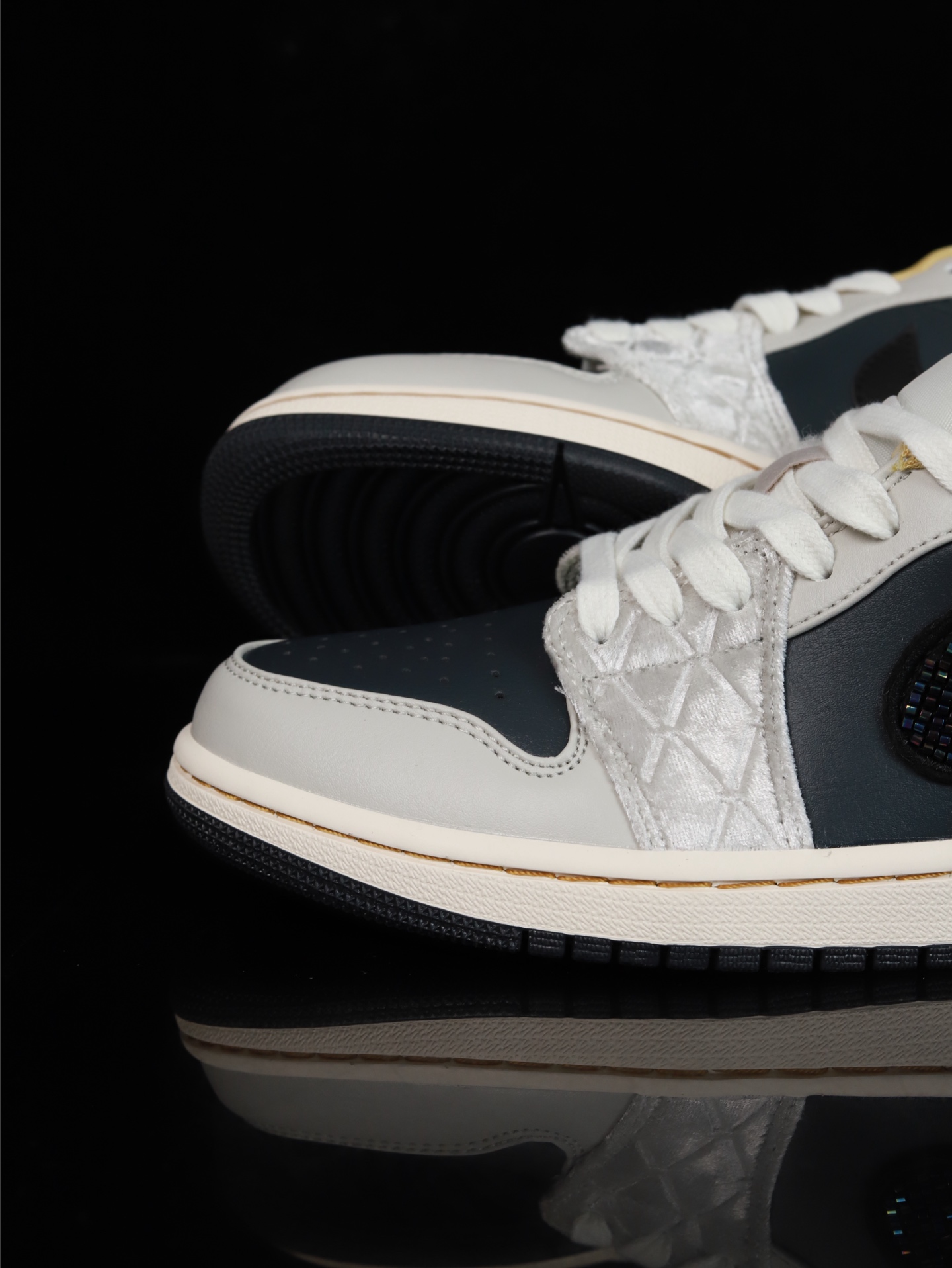 无原鞋不开发 原厂内置气垫魔块 A模大底 头层小牛皮 鞋舌AJ原厂专用牛津布 AJ专用反口珍珠布 原厂无杂质高弹内里海棉 特殊封边弹力鞋带