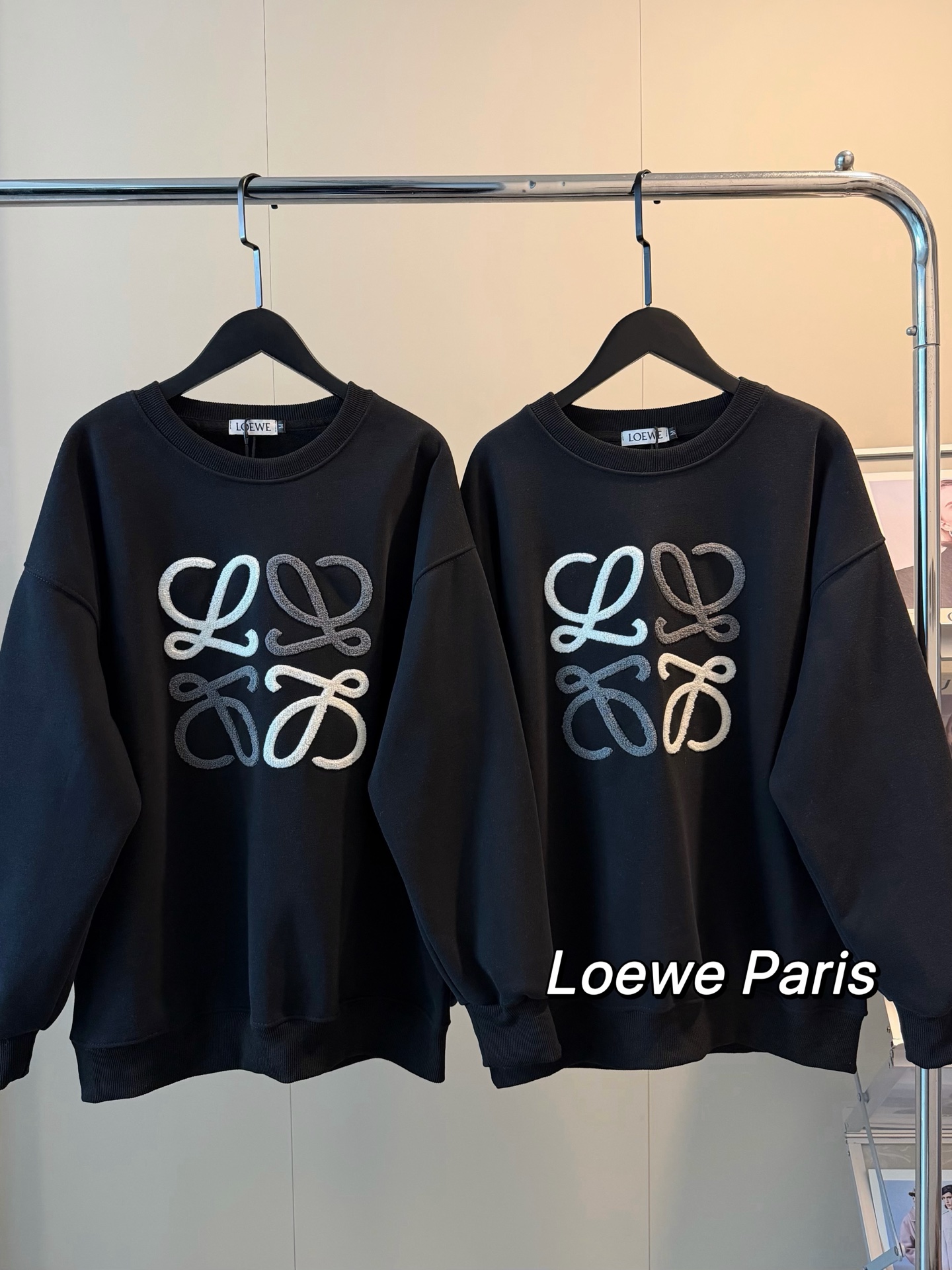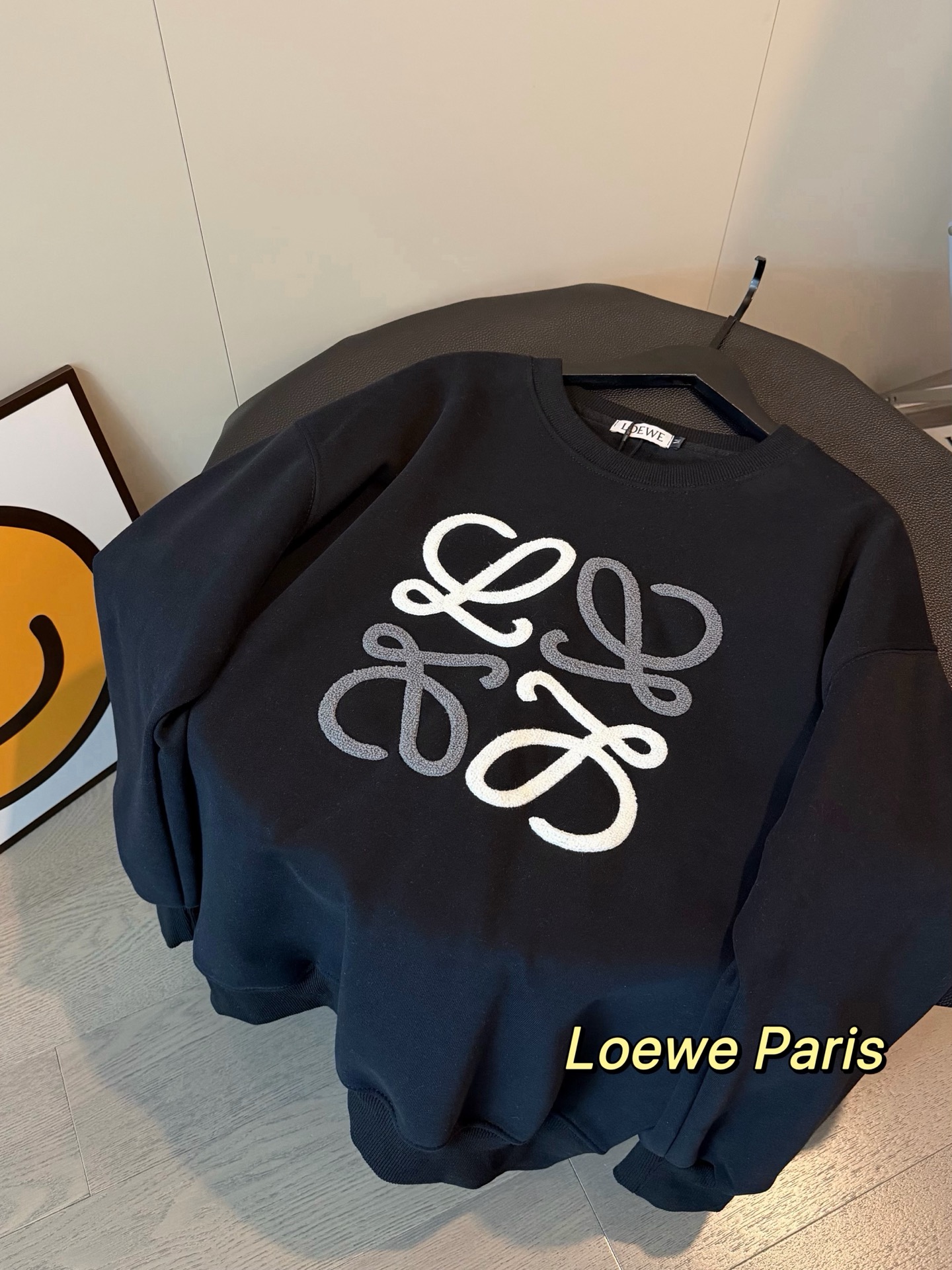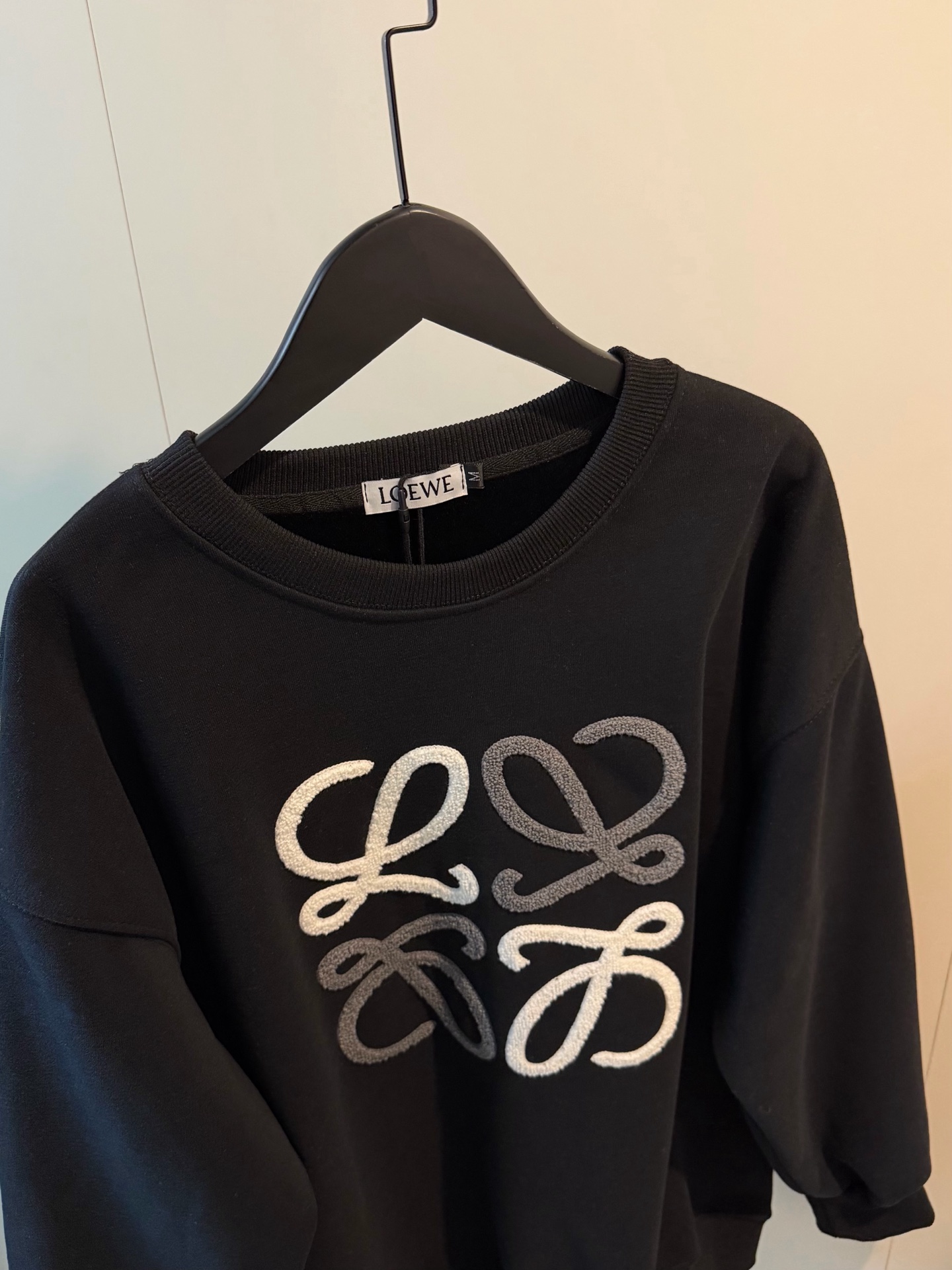Loewe罗意威加绒毛巾刺绣logo撞色圆领卫衣