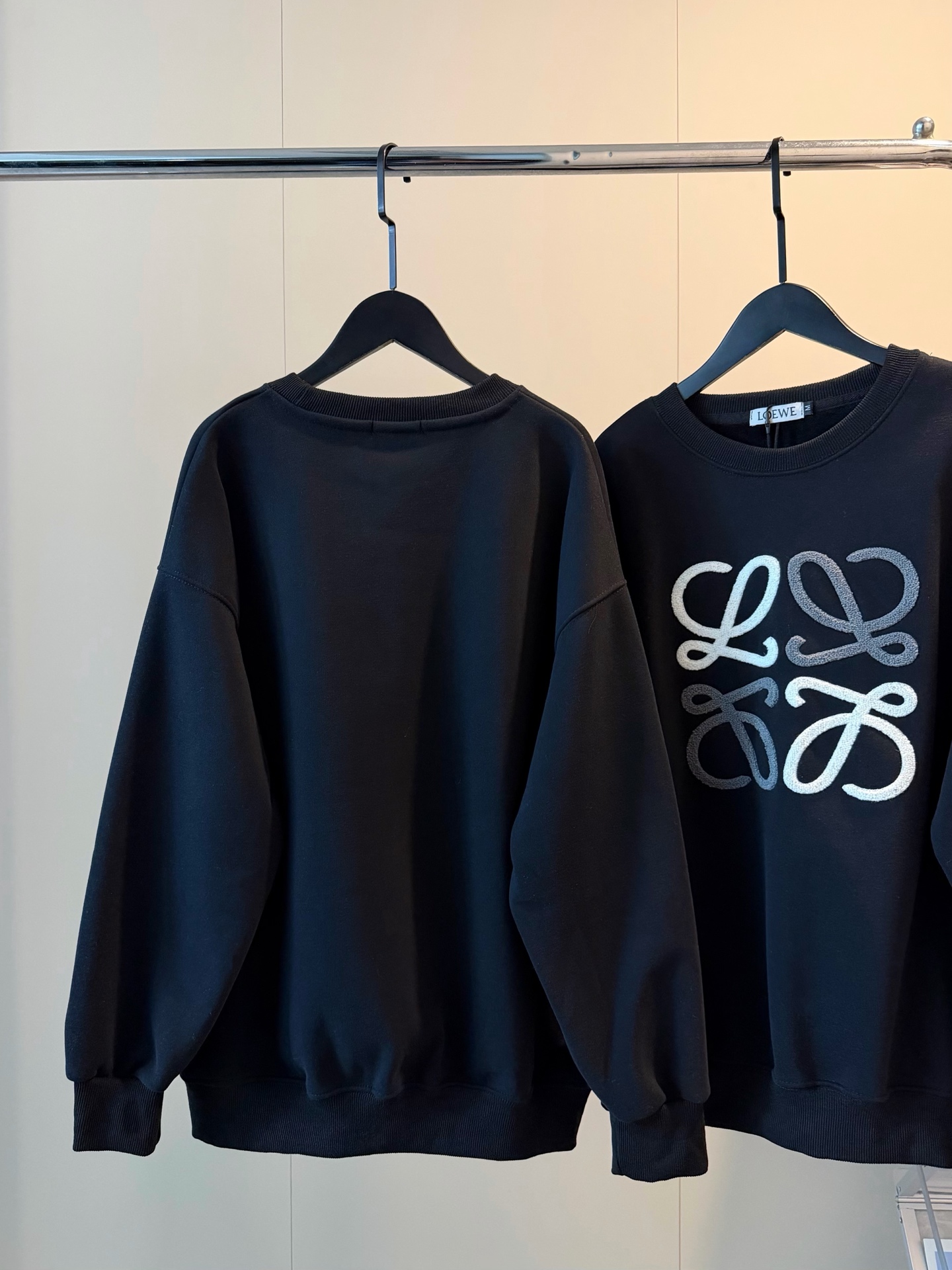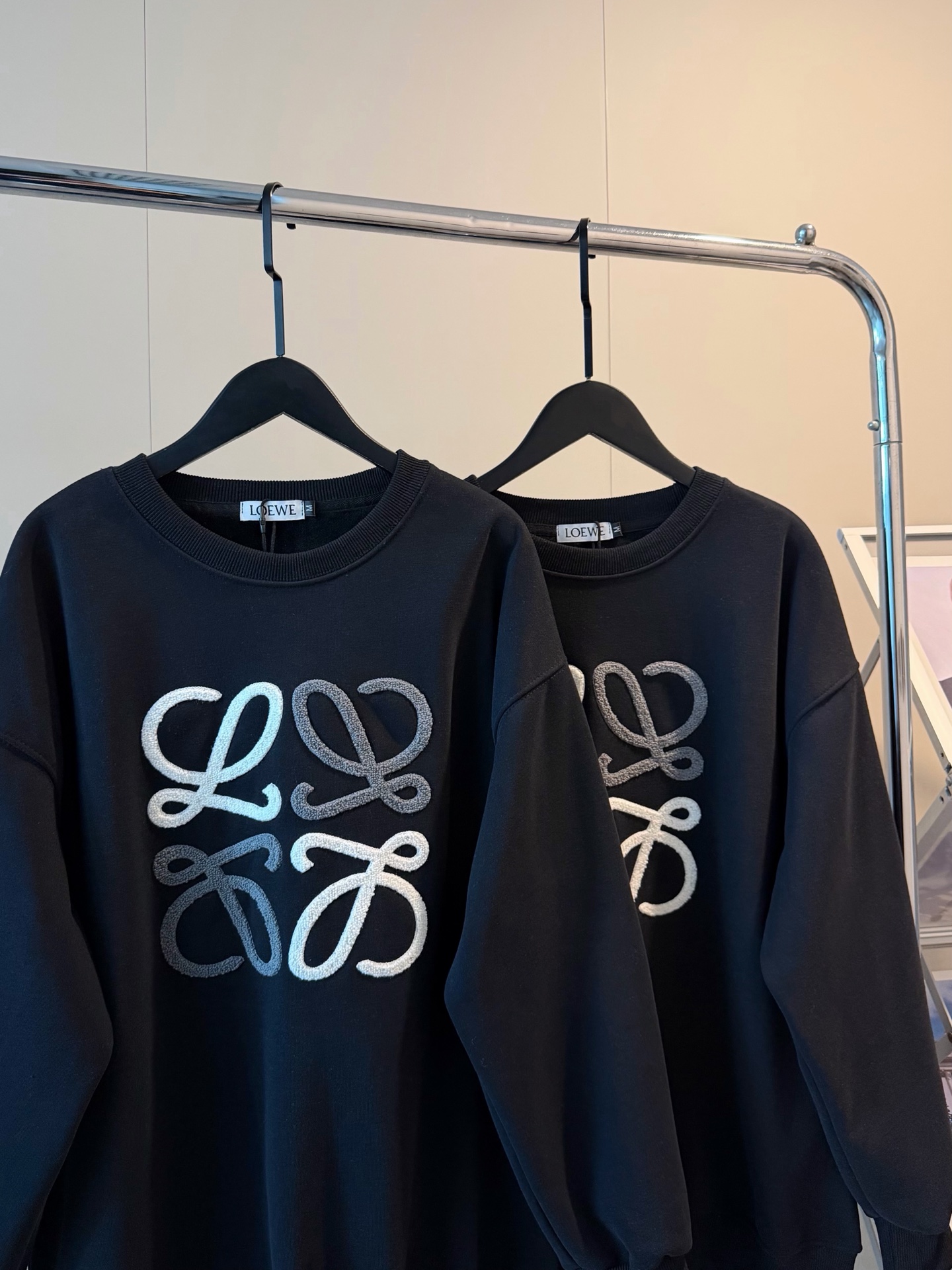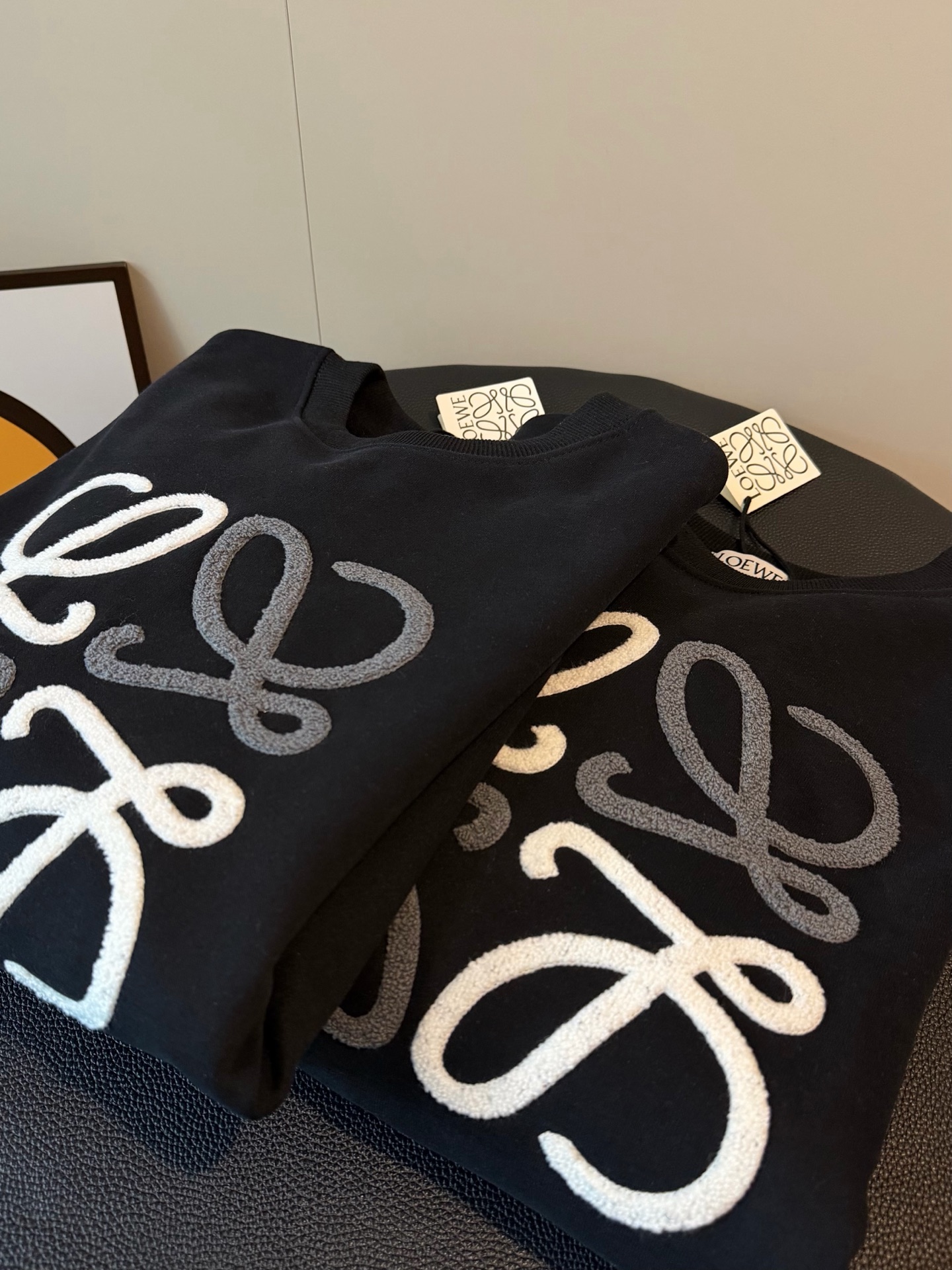 Loewe罗意威加绒毛巾刺绣logo撞色圆领卫衣