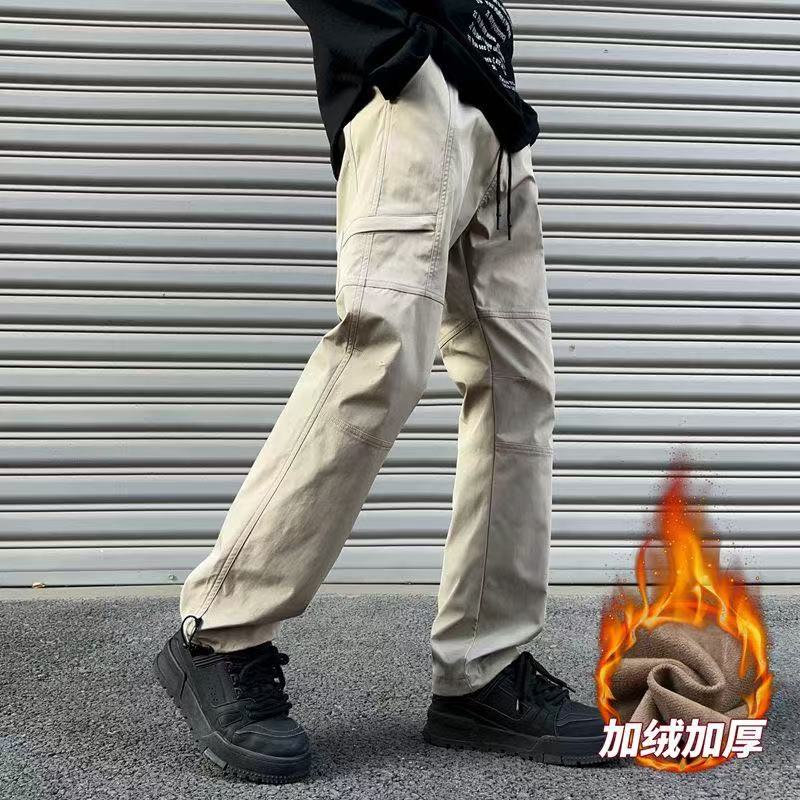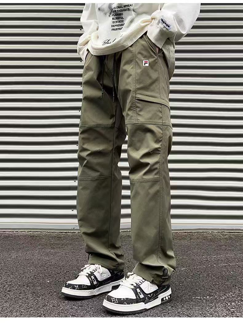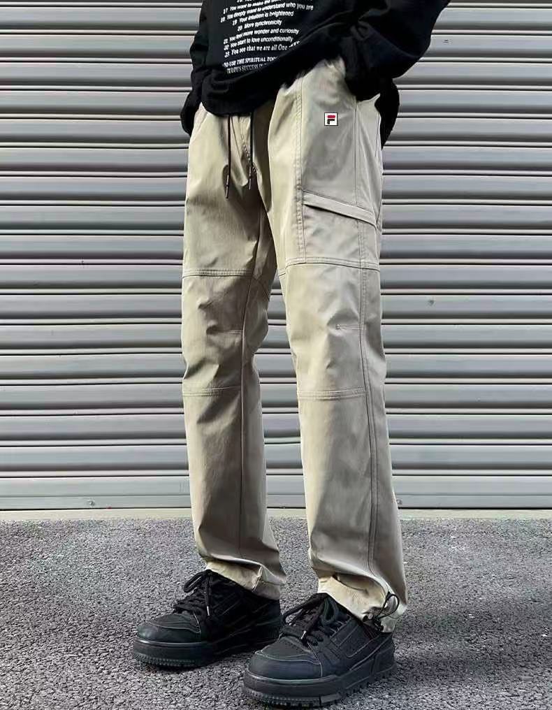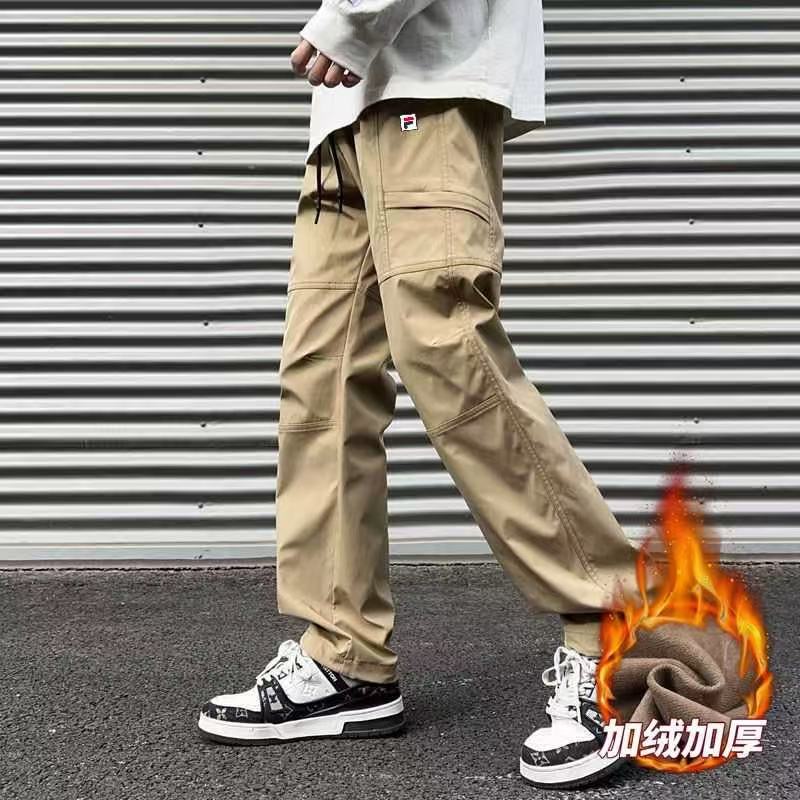 FILA 斐乐冬季加绒加厚同色拼接敞口户外休闲工装裤