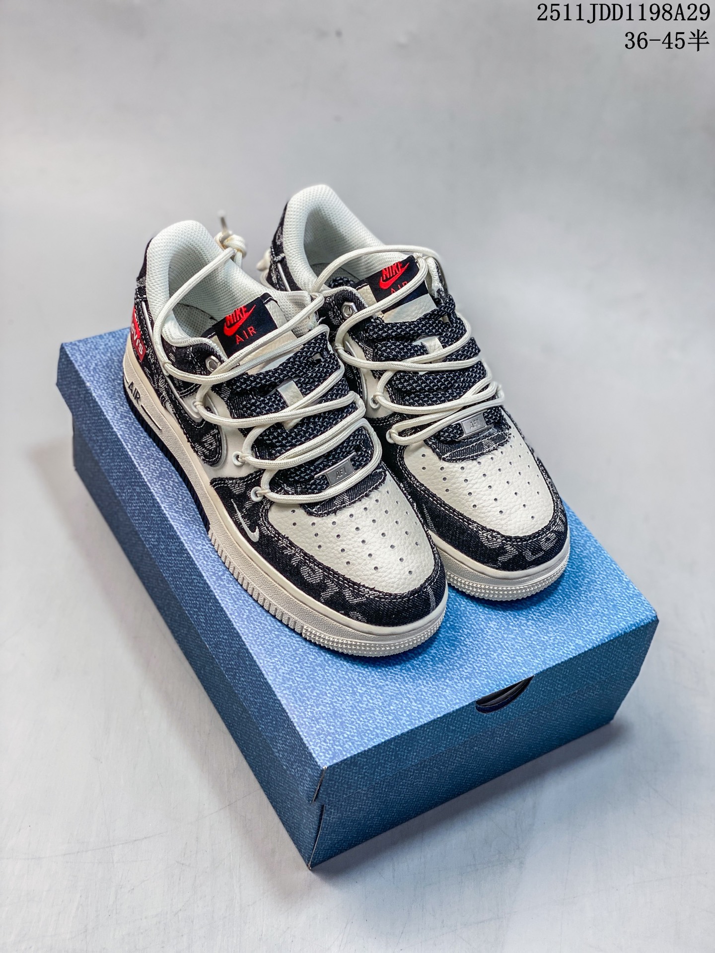 海外限量发售 公司级NIke Air Force 1 07 Low 李维斯联名 黑牛仔抽绳 空军一号 低帮 运动鞋 休闲鞋 折边针车 工艺难度大 原楦头原纸板 原装鞋盒 定制五金配件 内置全掌气垫 原厂鞋底