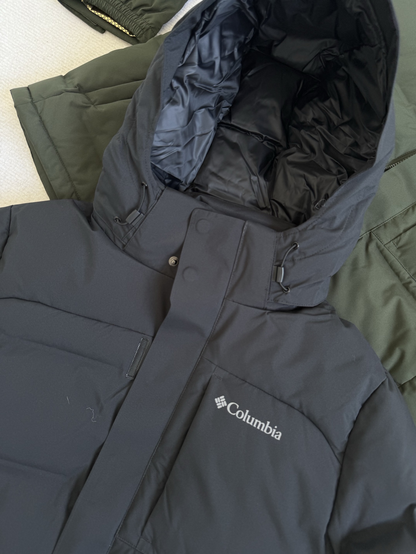 面料是100的聚酯纤维 挺括有型 不易皱采用奥米防水黑科技 防水 放寒 防风效果好 可以轻松应对多变的天气 宽松的版型 不长也不短恰到好处的长度 凸显干练利落干脆大方的气质 连帽设计 帽子可以拆卸 整体采用复杂的热压胶工艺 基本看不到线 可以超强锁绒 不跑毛 再加上双层内胆 让你这件羽绒服穿的放心又安心 内衬是大面积的金点热能反射 超级暖和 暖你3个冬季都没问题 简直无敌了 它简直就是男神们的过年战袍 过年你俩穿情侣羽绒服回家过年 不光提神档次 漂亮帅气 家里人还会特别羡慕你们的感情 这么恩爱 年过的更加喜气洋洋了 哈哈哈 买买买必须买 数量真不多 真不多 很快就缺色断码了 所以趁着现在都全 抓紧蹲 要不然后悔都来不及了