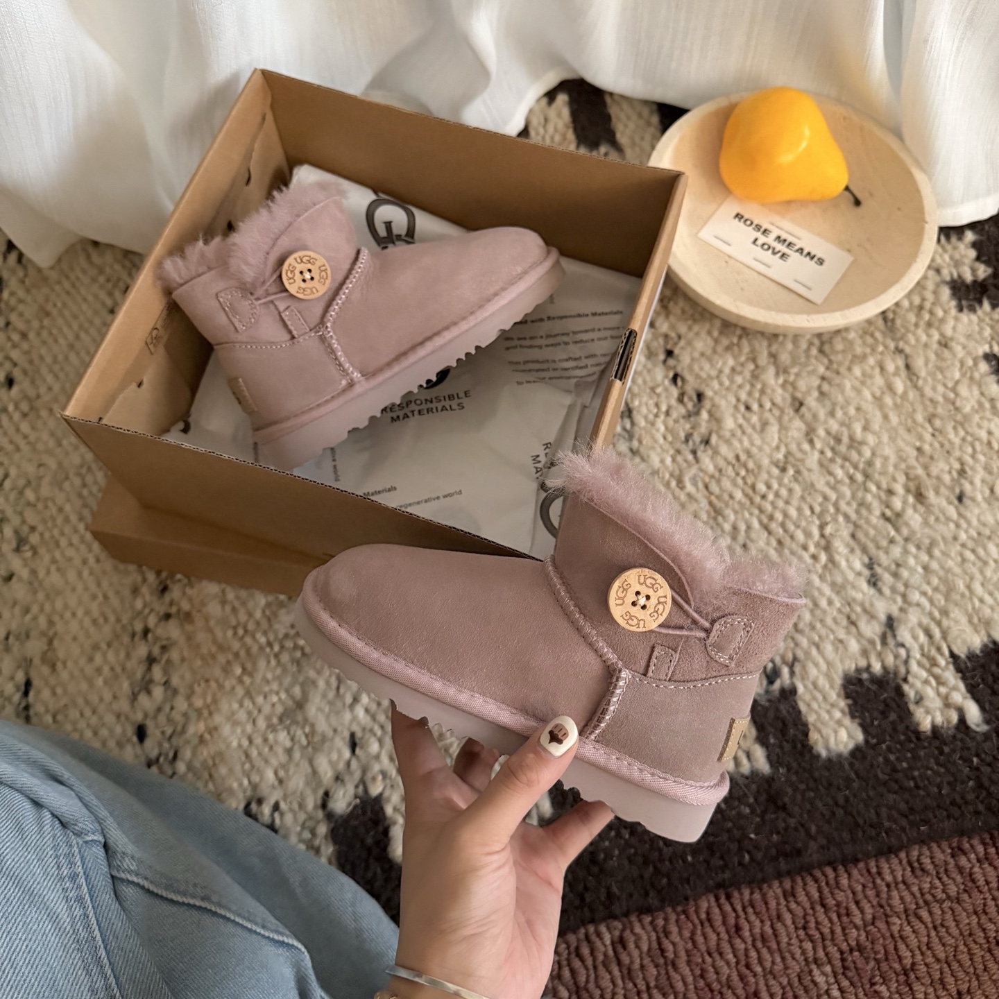 羊皮毛一体童鞋款 高端精品 经典栗色 暮粉色 闭合方式 纽扣 833185