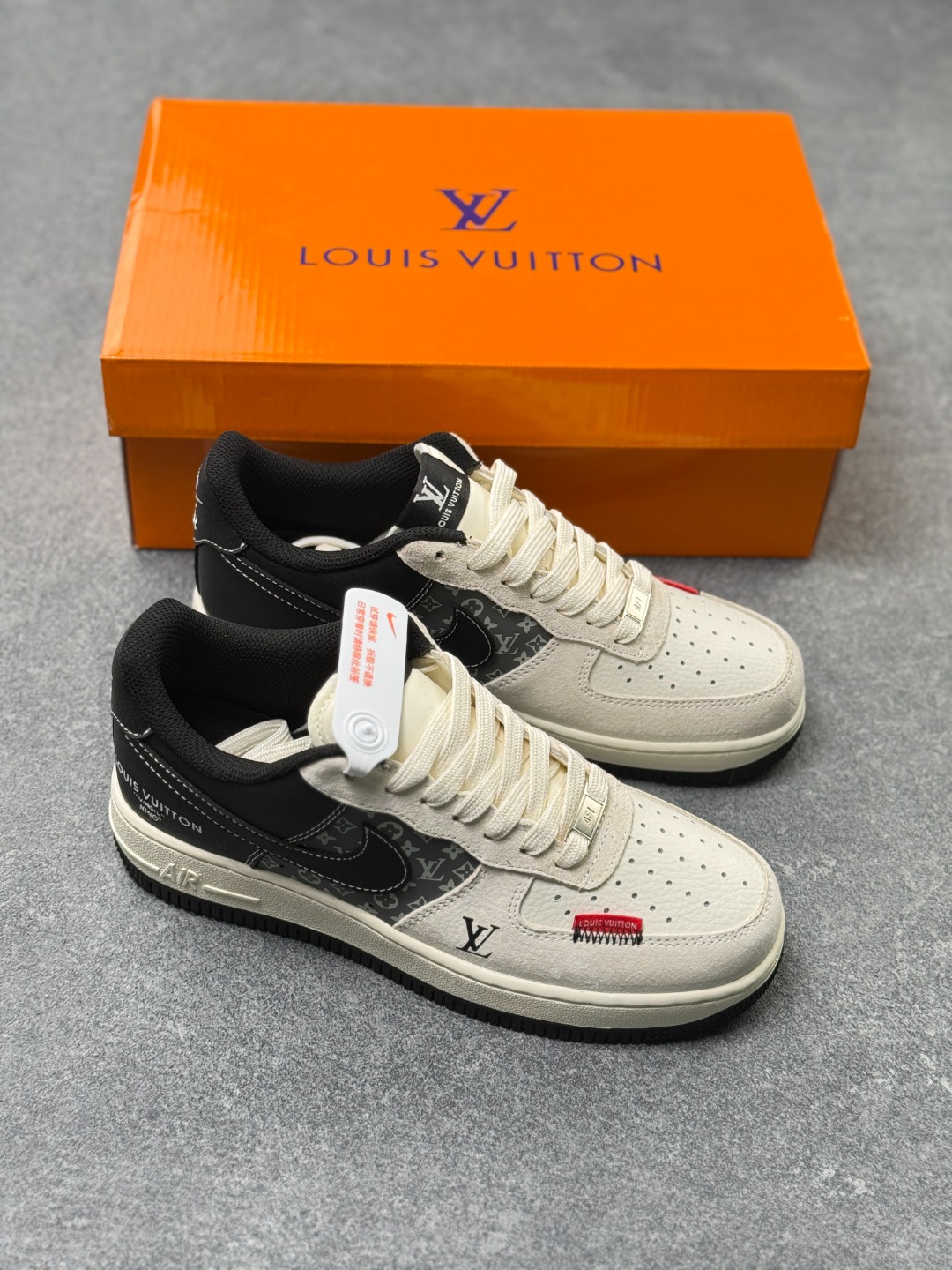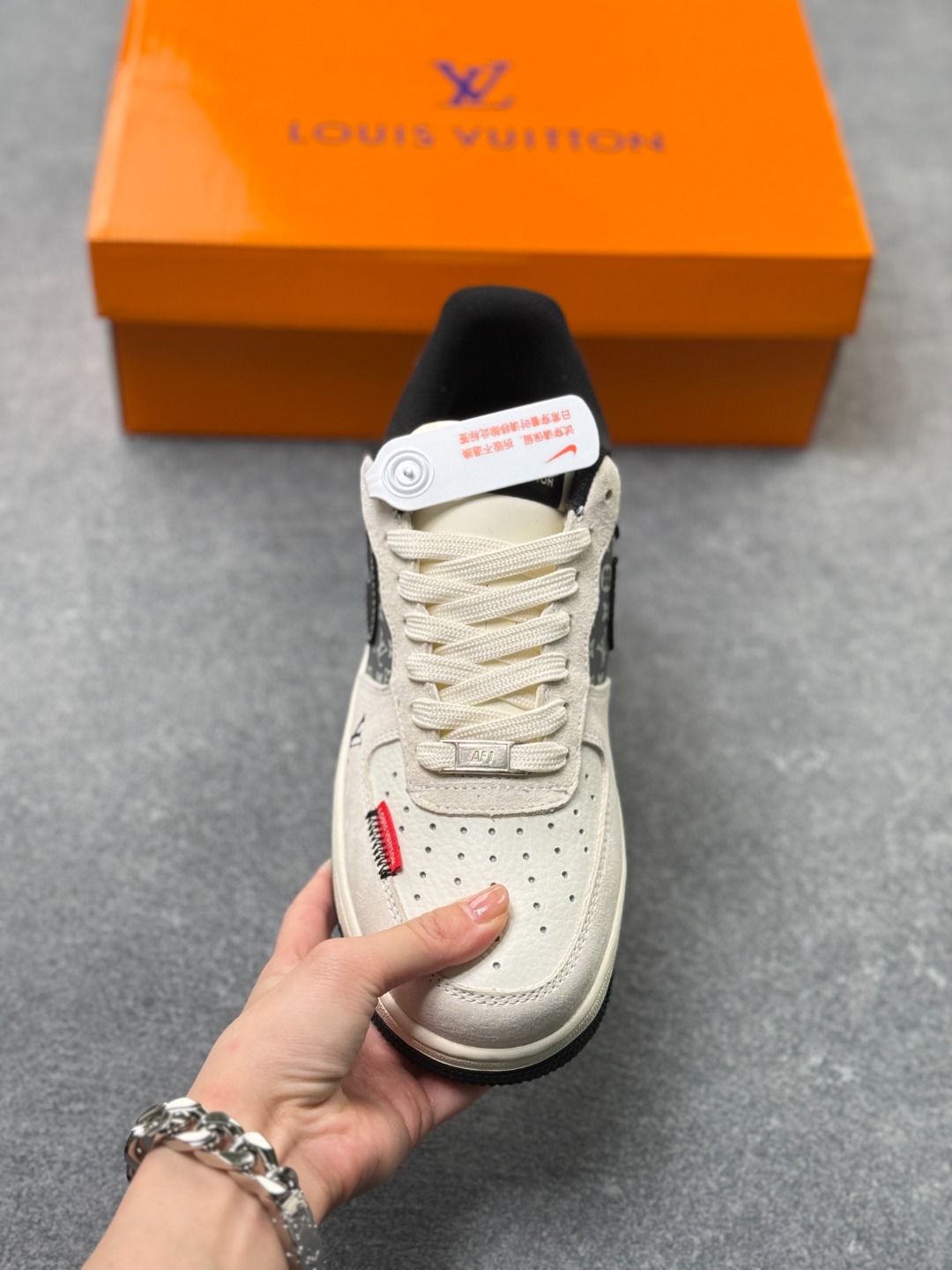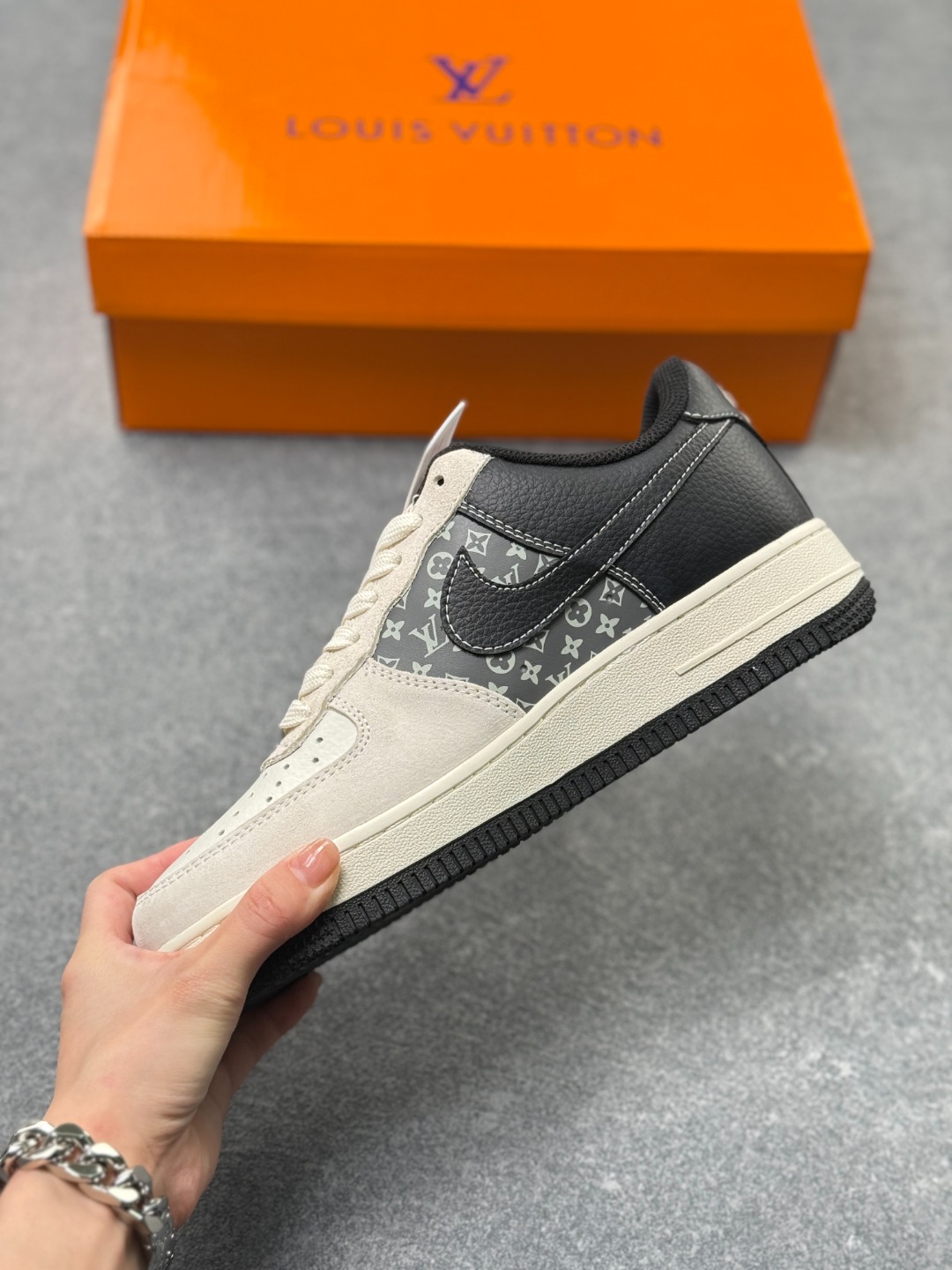 当经典AF1遇上奢牌老花 这双Nike Air Force 1 Low KD6699 F08 直接把奢华与街头的融合玩到极致 藏蓝麂皮碰撞米白老花皮革 红尾点缀瞬间点亮视觉 LV标识与Nike Swoosh的叠搭设计 打破次元壁的同时拉满高级感 细腻的材质拼接 精致的字母印花 每一处细节都透着独特的定制腔调 Air气垫底保留经典舒适脚感 不管是收藏还是上脚 都是鞋柜里独一份的吸睛存在 奢华街头风的天花板不过如此