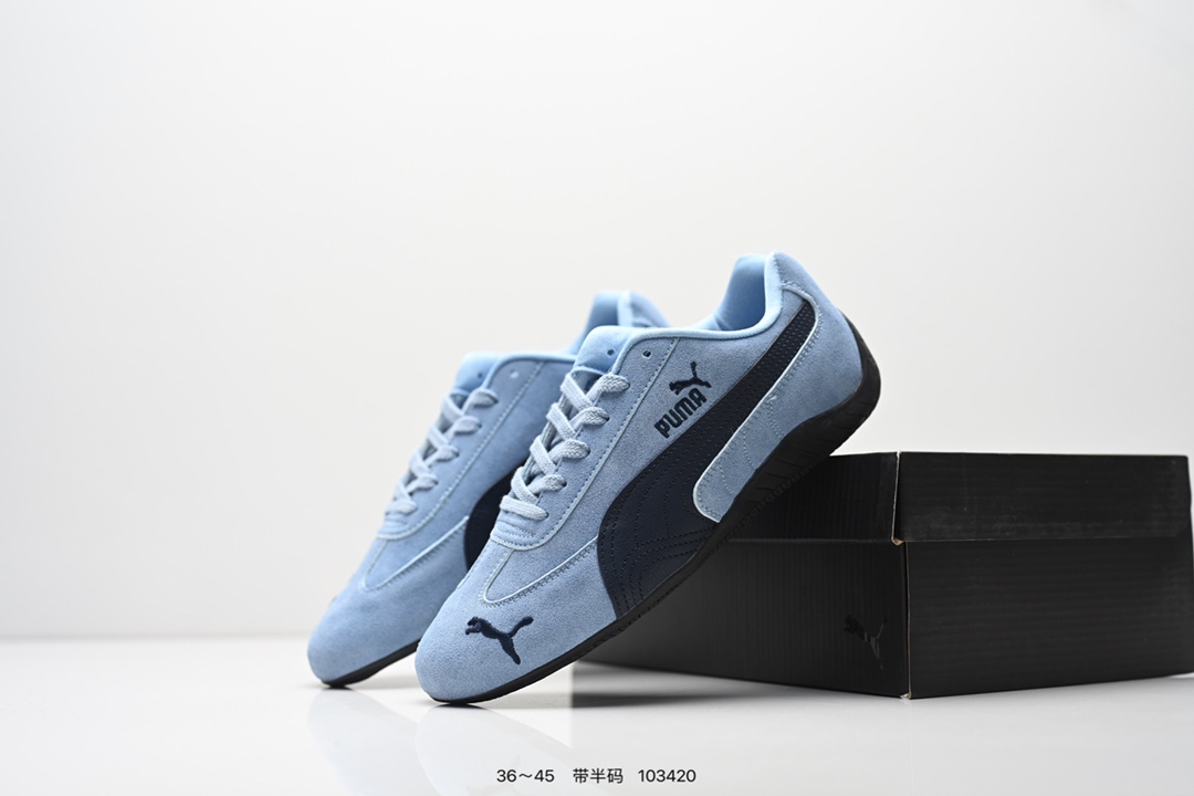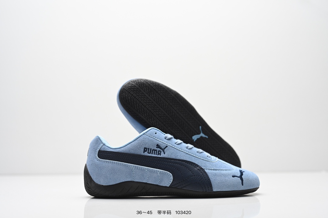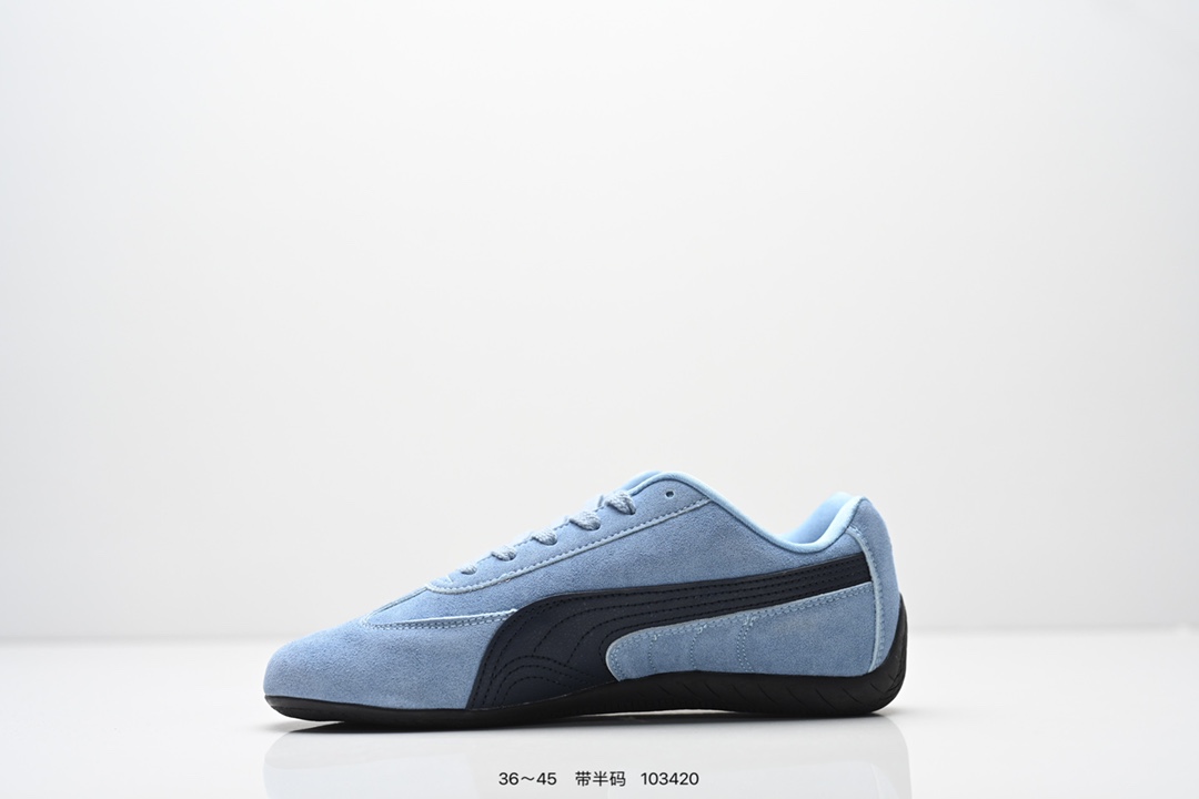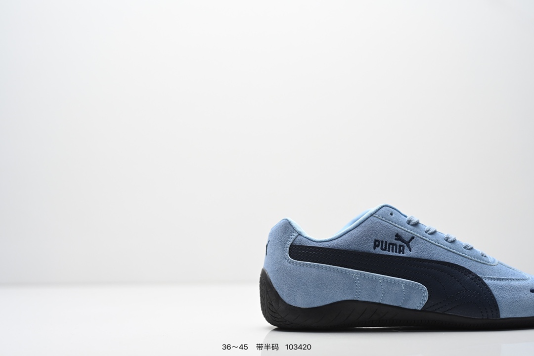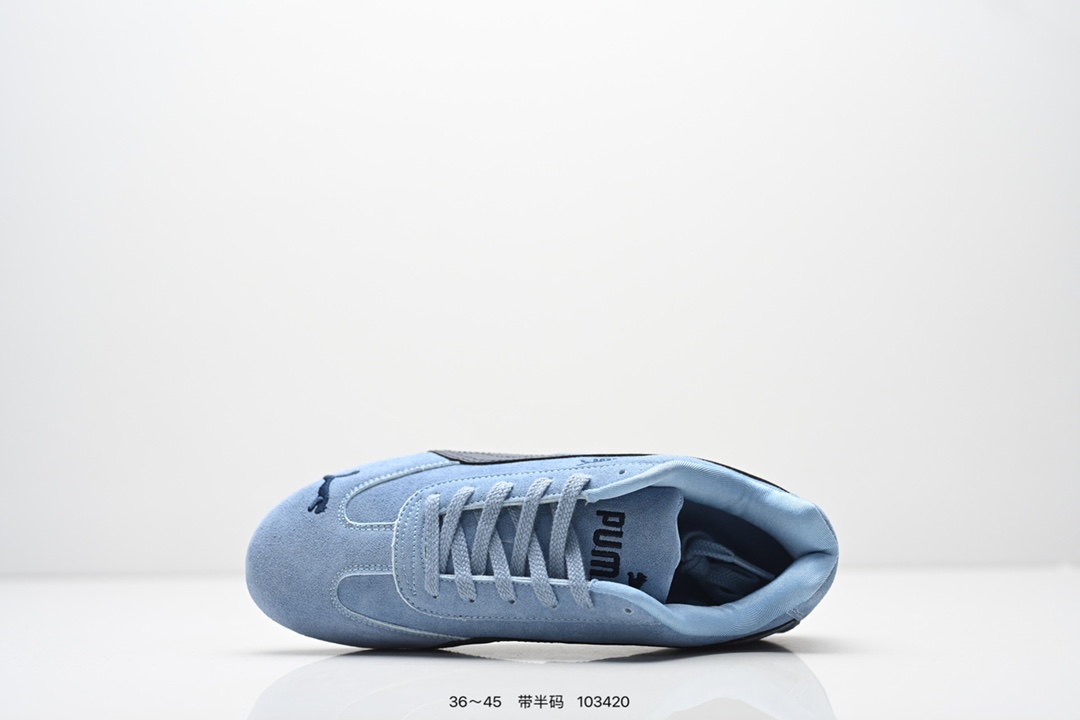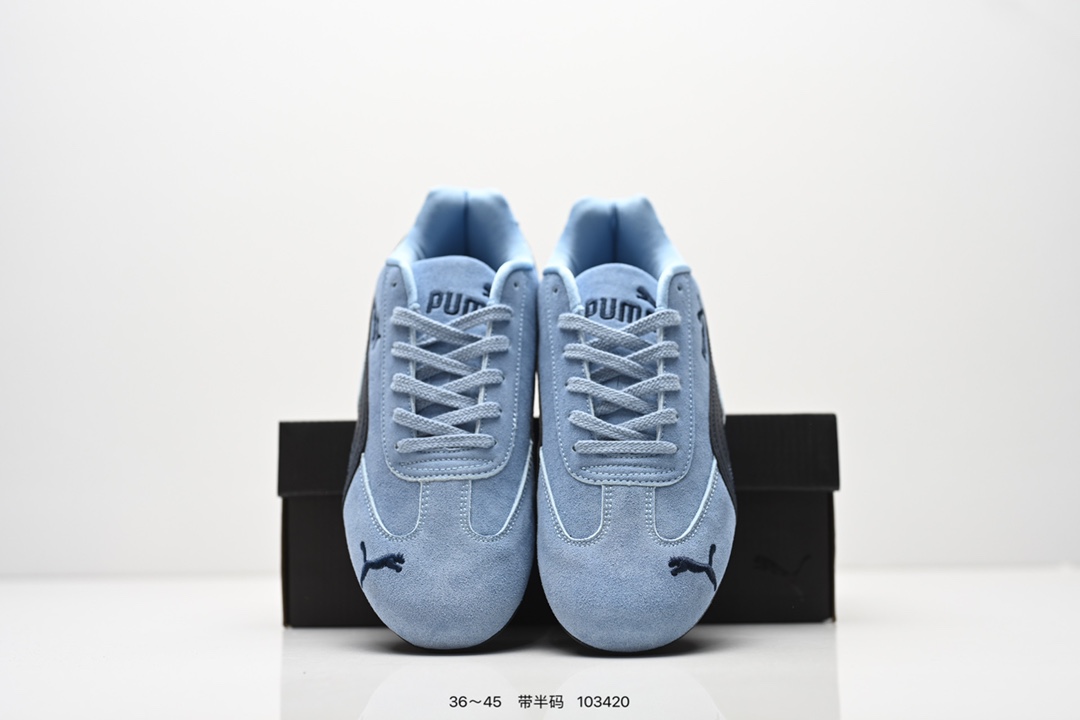 PUMA Speedcat OG 彪马 低帮 粉白色 女款防滑耐磨低邦训练鞋生活休闲鞋赛车鞋 鞋型是Puma联合赛车运动品牌Sparcoh专为专业赛车手而打造 流线型的粉色翻毛皮鞋面低调却不失质感台 侧面米白色Logo加上白色的烫印Puma字样以及鞋舌白色Puma字样及Logo 让蓝色的鞋子显得不那么单调 鞋头彪马Logo以蓝色刺绣呈现 鞋底平坦 采用轮胎纹路设计 防滑耐磨