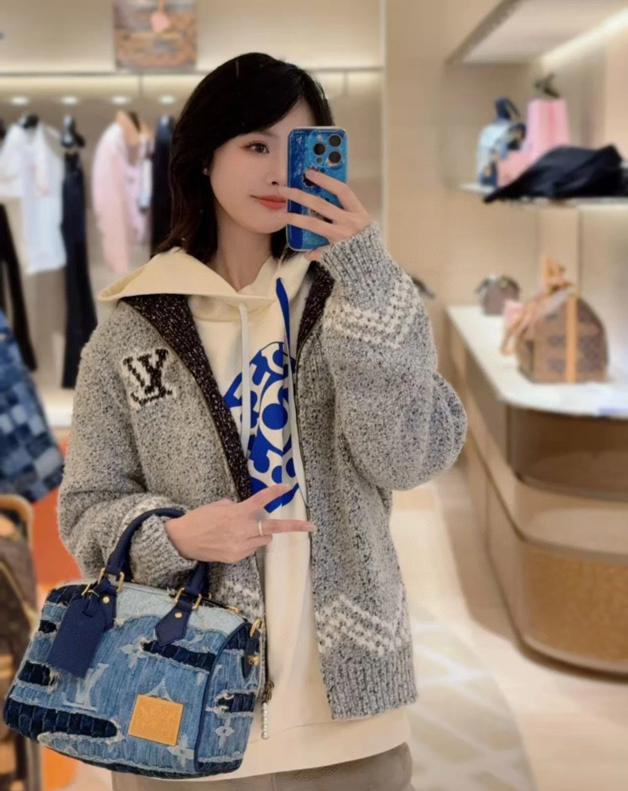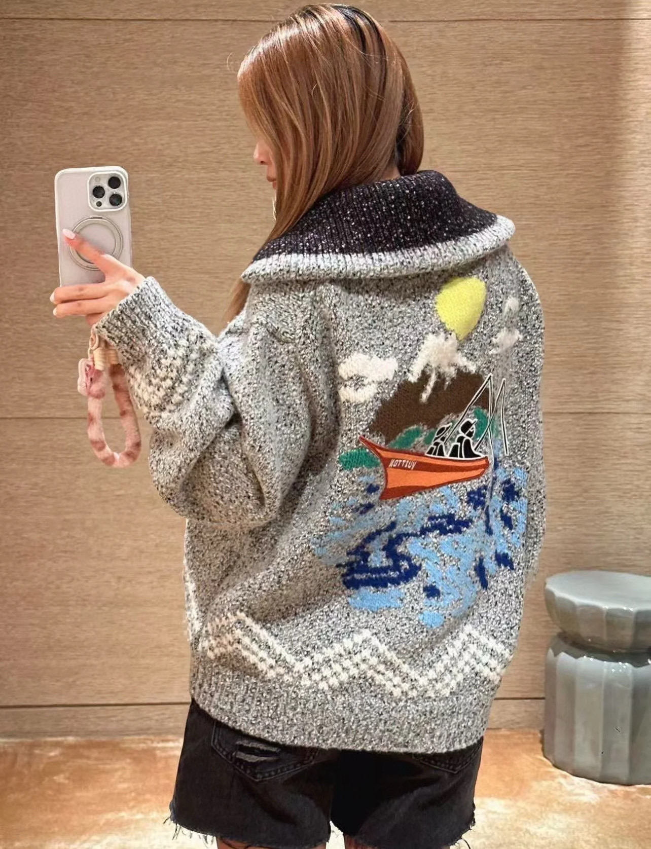 Louis Vuitton LV 路易威登 25ss大帆船刺绣logo提花女款高领大翻领两穿针织毛衣拉链开衫 顶级南油版本