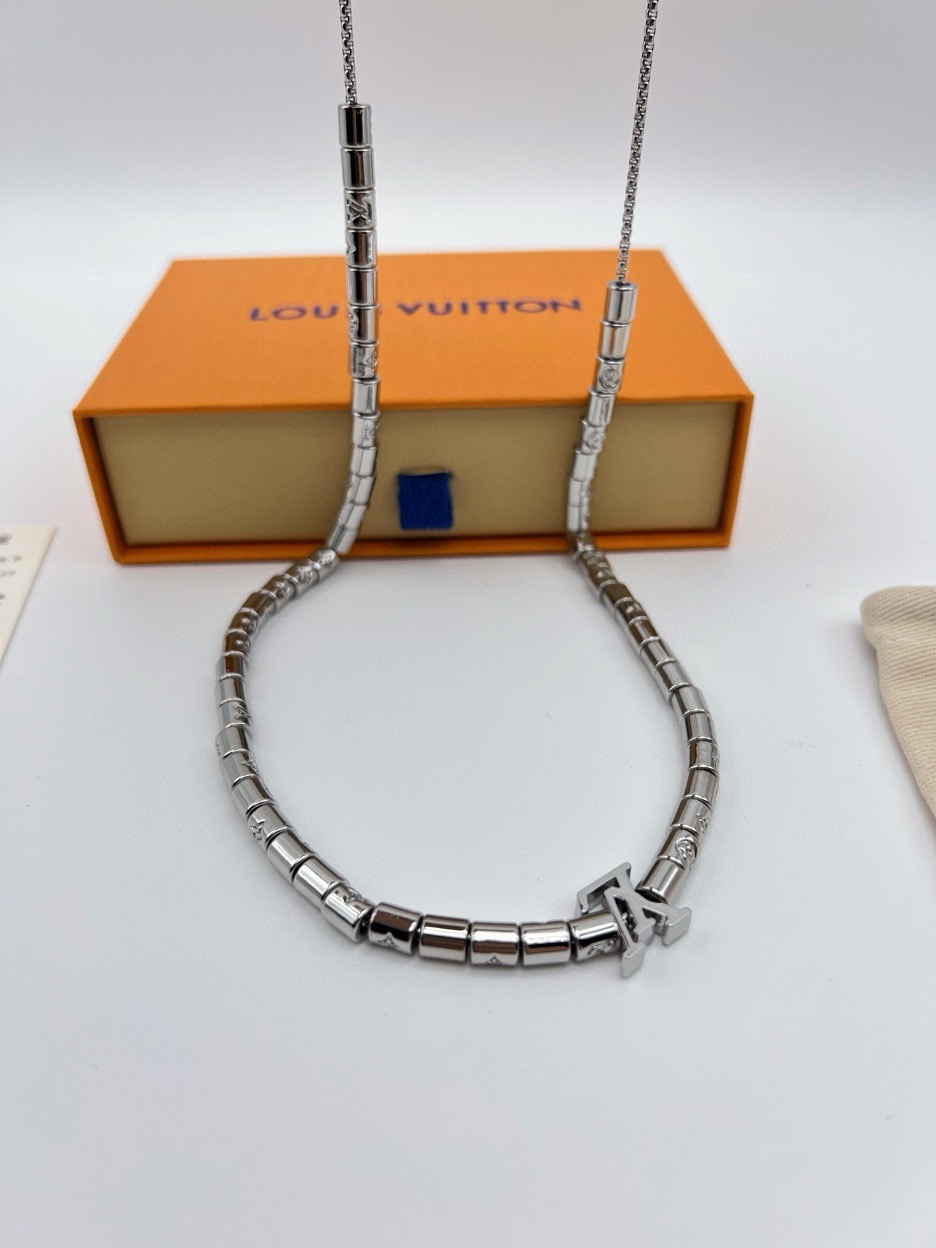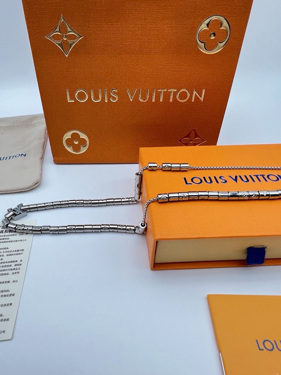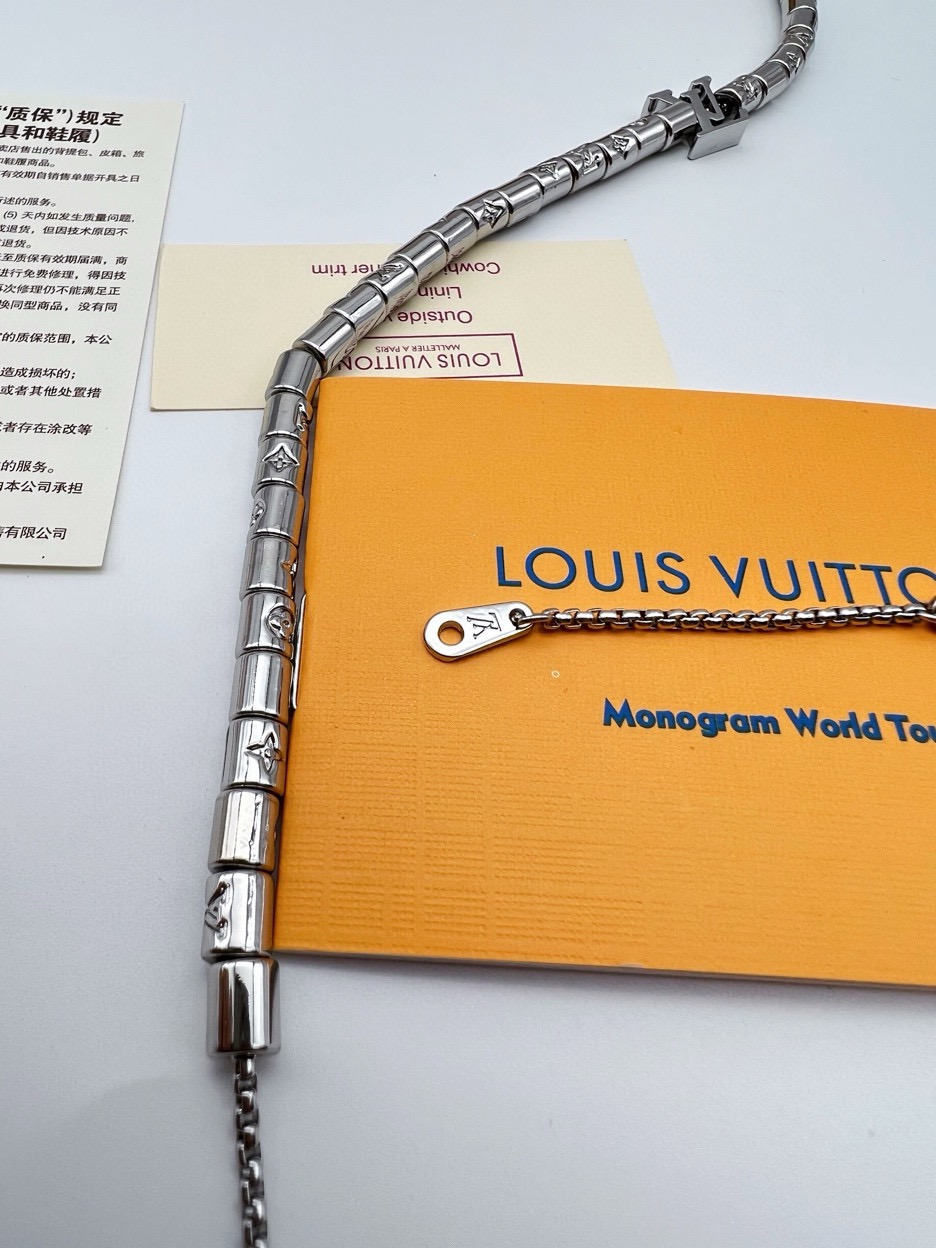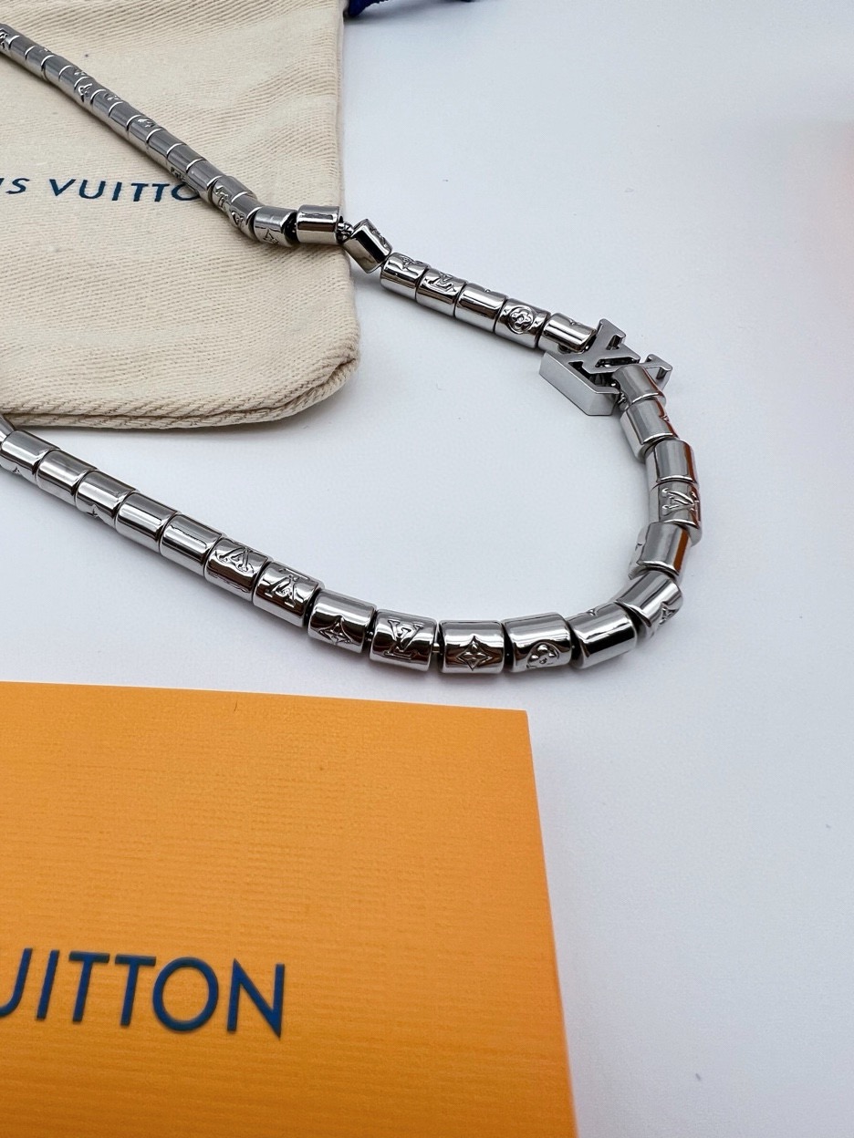 LV路易威登银色串珠项链 LV Paradise 项链以精湛匠艺展露波西米亚迷情 可调节串起袖珍串珠 洋溢蔚蓝海滨的自由精神 链环精致镂刻 Monogram 图案 LV字母点缀经典 详细特征