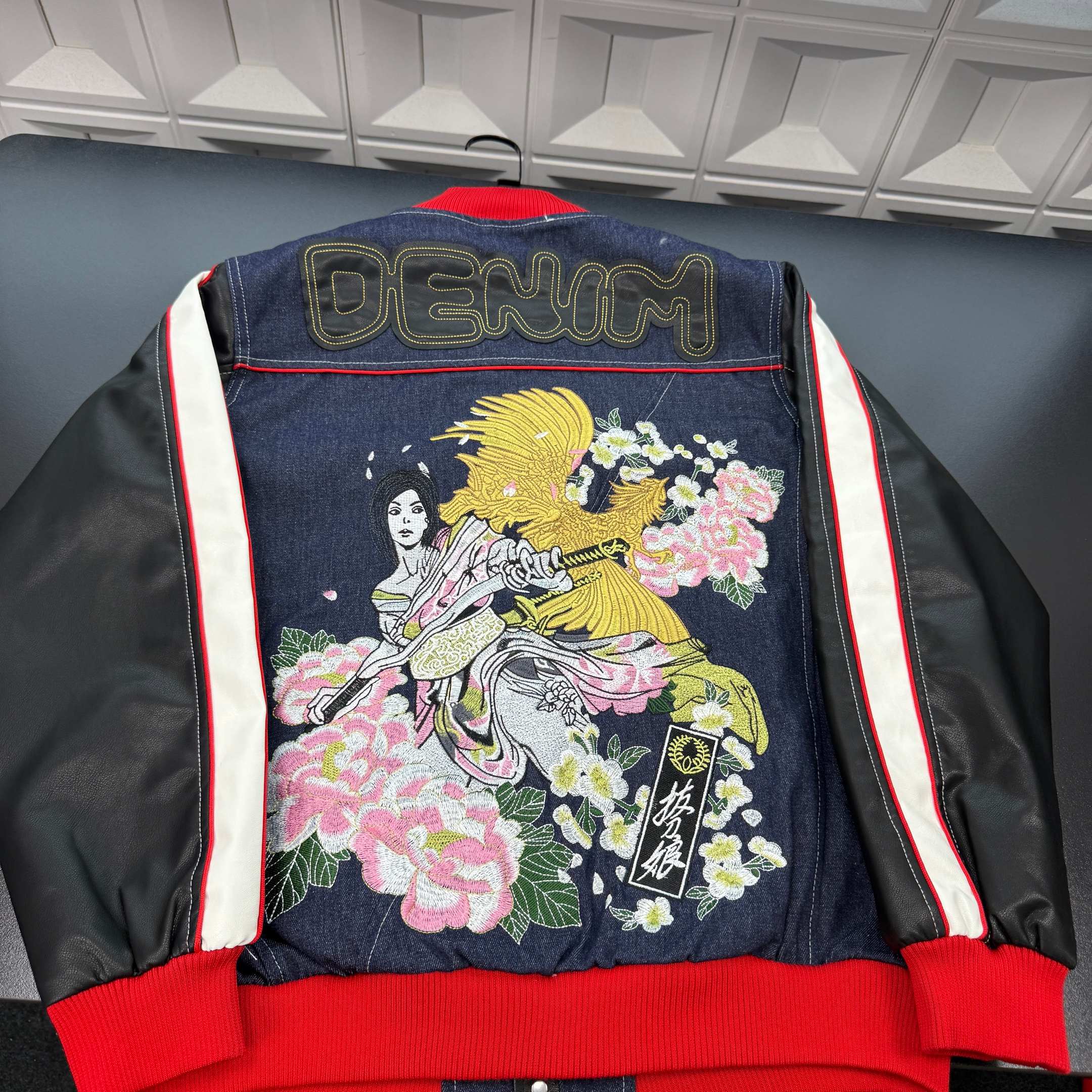 春季新款上新爆炸输出Evisu福神翻领牛仔外套 拼接皮袖 后背贴布刺绣字母 刺绣拔娘凤凰图腾 三标齐全官网一致 放大看细节原相机实物拍摄 颜色 藏青色 尺码 L 4xl L 80 105斤 XL 105 120斤 2XL 120 140斤 3XL 140 160斤 4XL 160 180斤