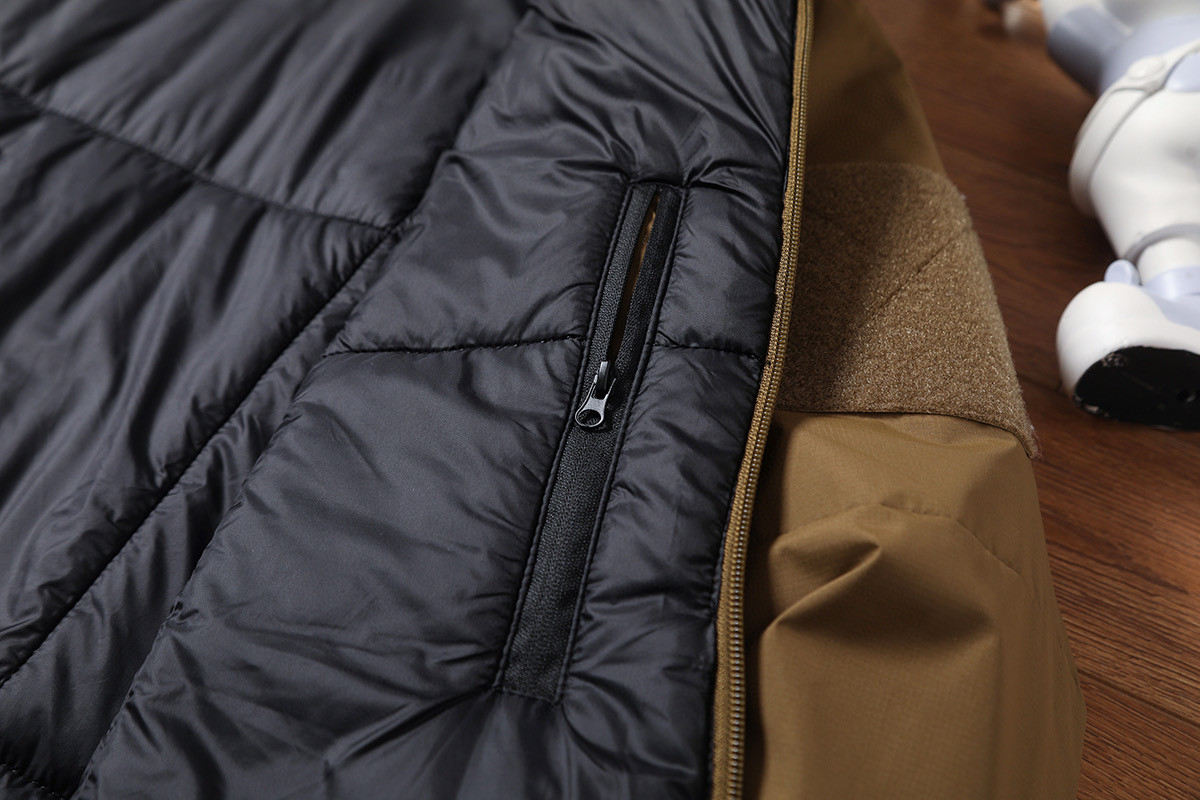 这是一件拥有动态保暖功能的棉服 其后背汗区配置弹力透气系统 实现快速散热 采用三防科技面料 可防泼水抗油污 易清洁 内胸袋 贴心出行 根据人体热能分布图 科学配比充棉克重 轻量保暖不显臃肿 人体工学立体裁剪