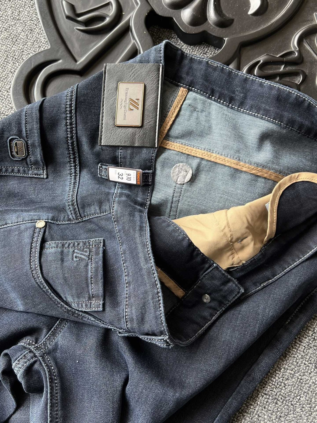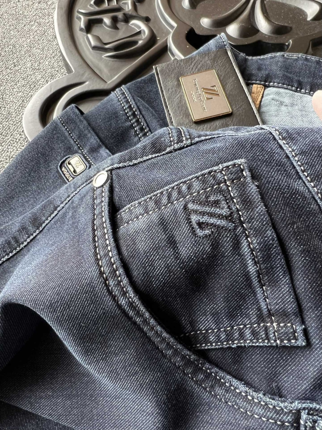 细节细节再细节 Zegna家专柜超柔牛仔裤 高级特调水洗蓝配色 大腿处多层次立体感细节 腰口镶嵌杰尼亚XXX系列金属皮标 口袋处3D立体高频杰尼亚ZZ金属标 内里包边包条精湛做工 彰显专柜高奢质感