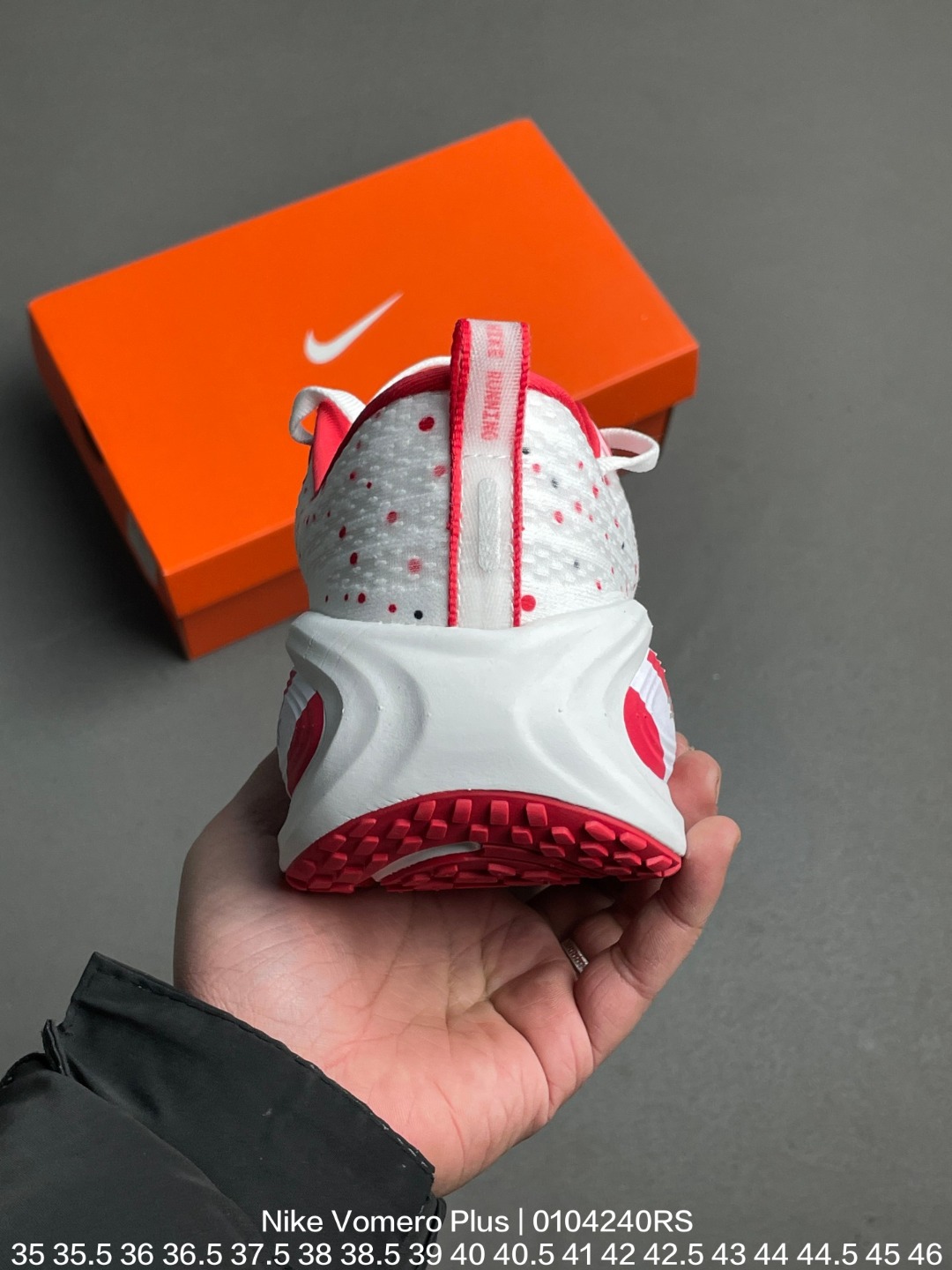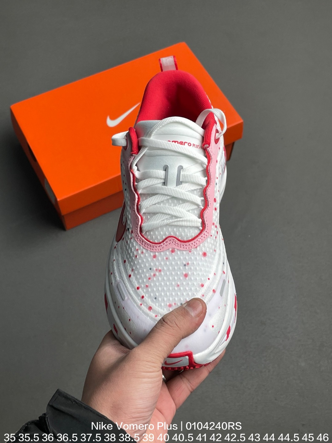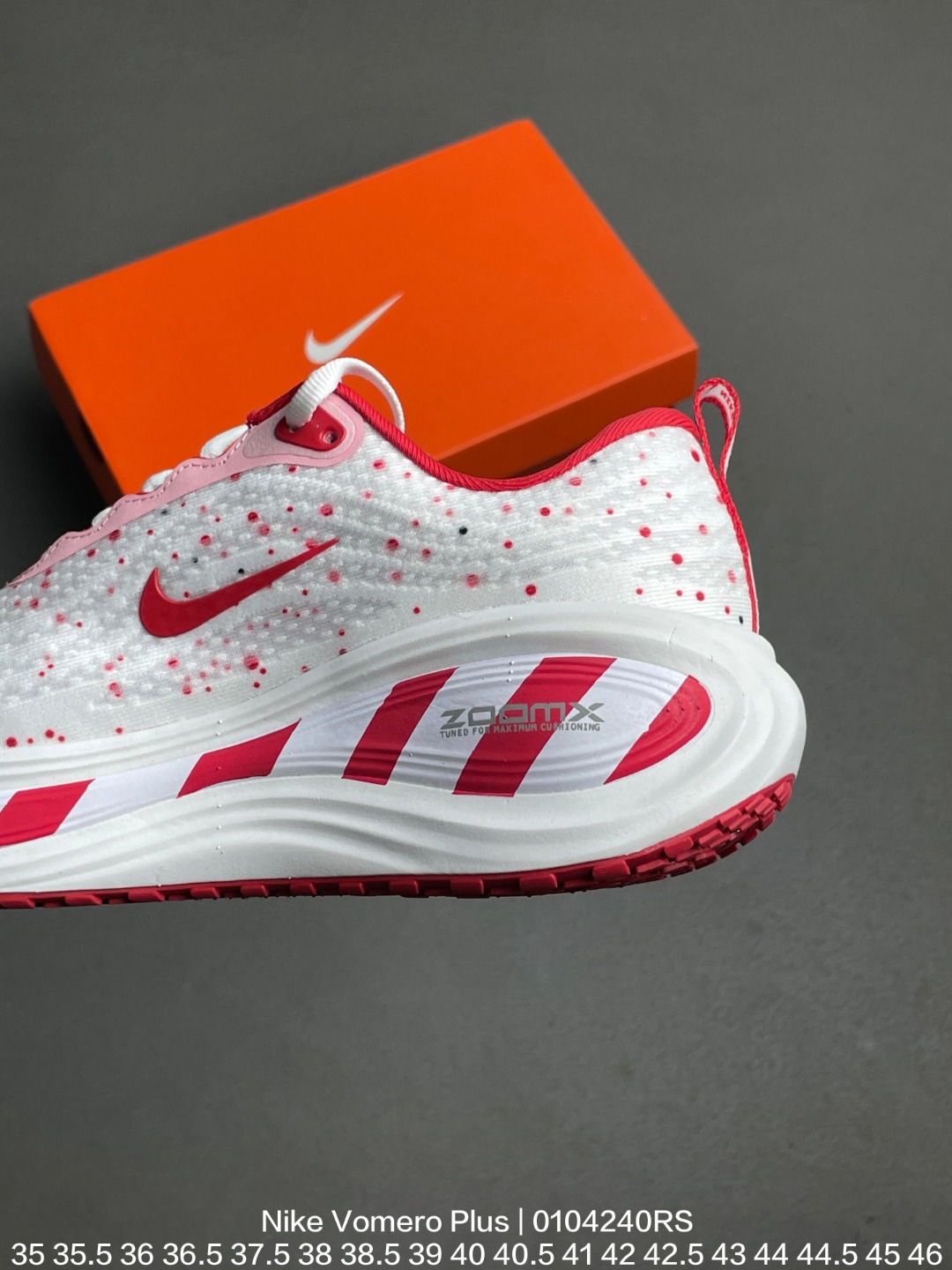 Nike 耐克 采用科技织法轻盈织物合成鞋面材质 ZoomX 泡绵中底 外置外置防滑耐磨橡胶底片造舒适迈步体验 助力日常畅跑 耐克Nike Vomero Plus Bright Mango 佛莫罗加强版系列低帮轻质厚底缓震公路透气休闲运动跑步鞋