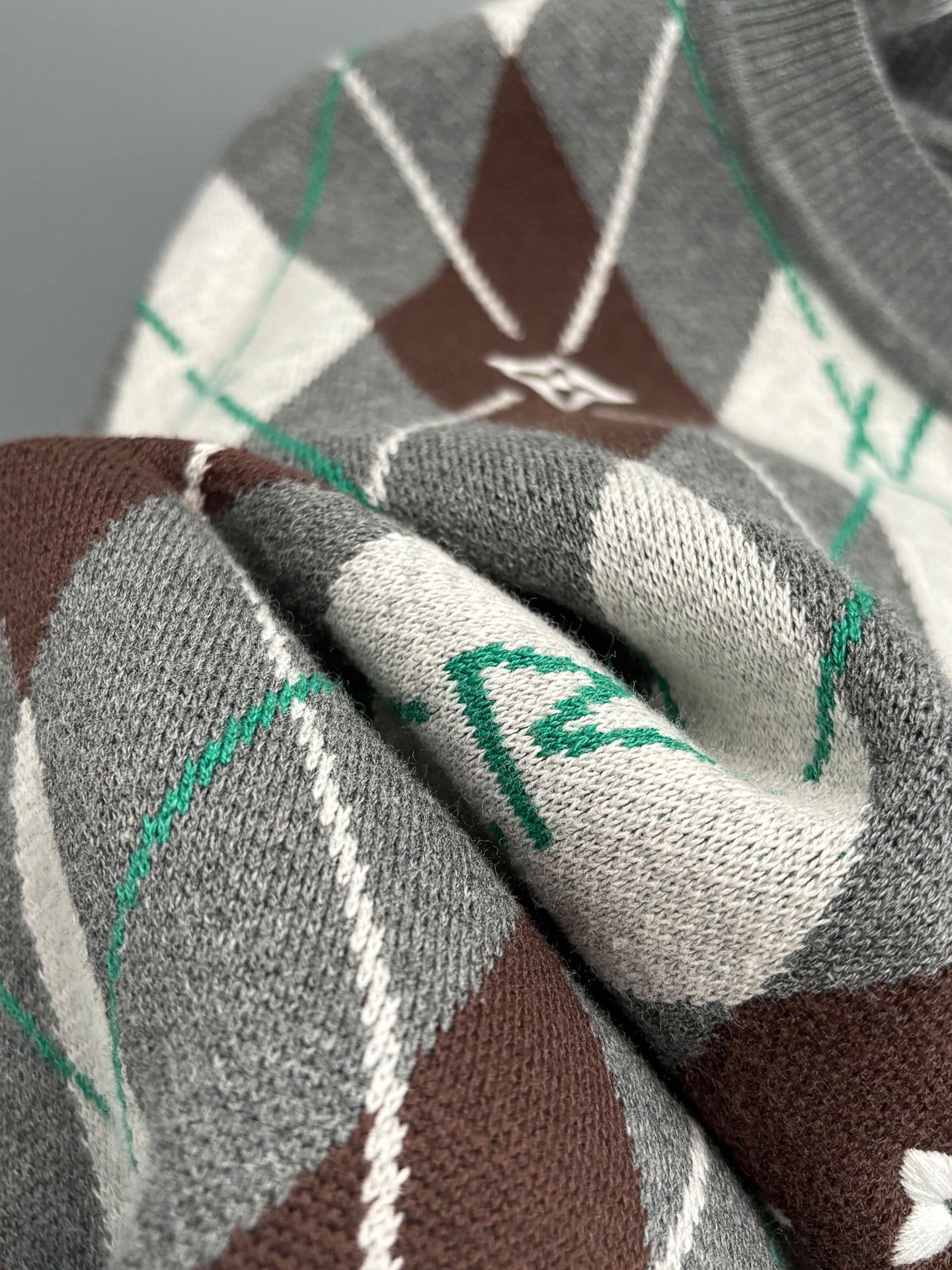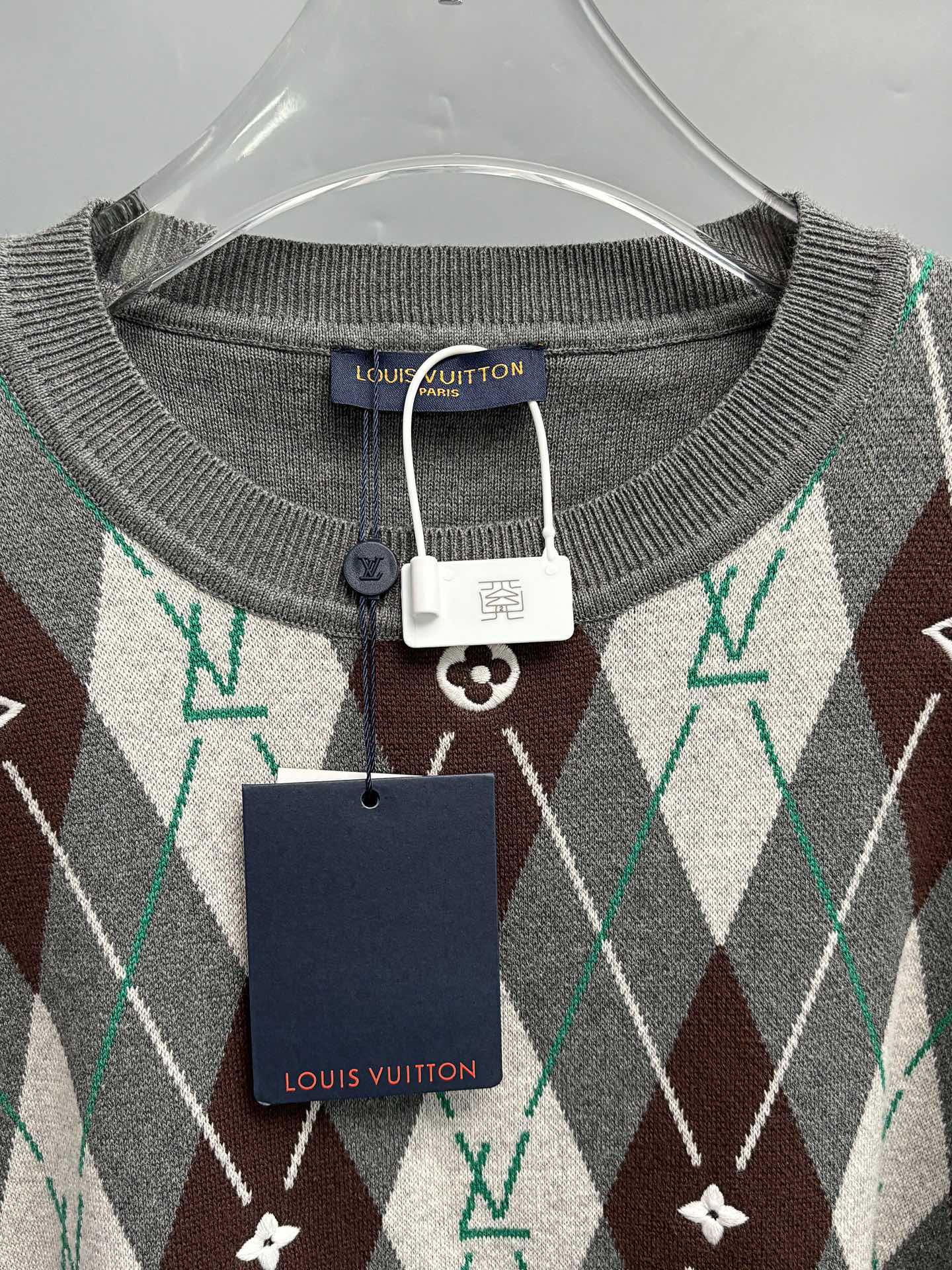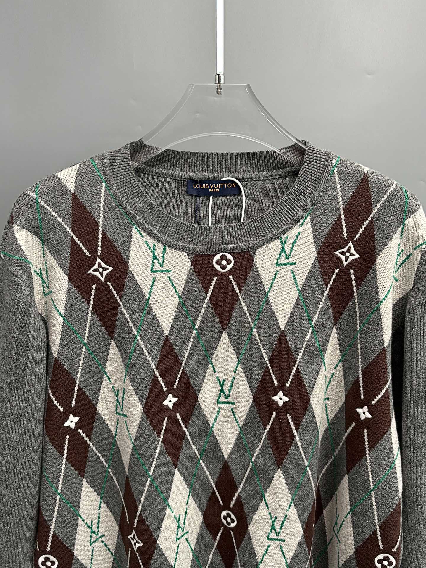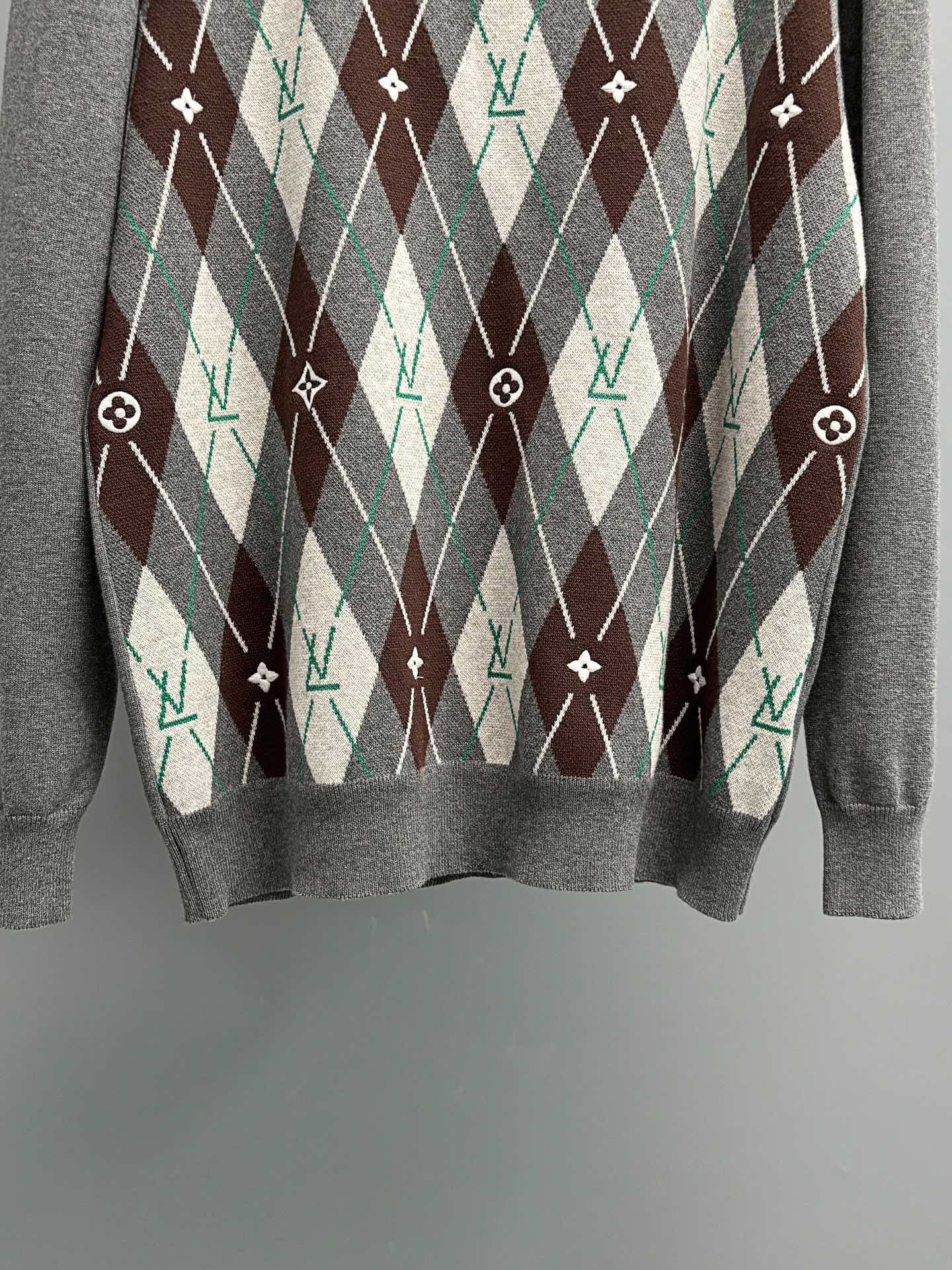 150128425 - V 路易 25秋冬新款Nigo联名复古英伦风圆领毛衣菱形格联 381301