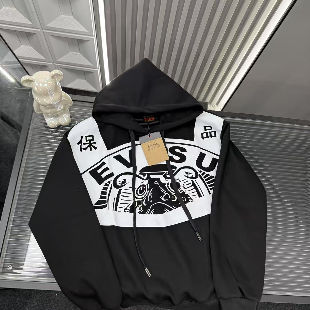 秋冬爆款热销款推荐Evisu福神连帽卫衣 胸前半满印拼接图案 三标齐全官网一致 放大看细节原相机实物拍摄 颜色 黑色 尺码 L 4xl L 80 105斤 XL 105 120斤 2XL 120 140斤 3XL 140 160斤 4XL 160 180斤