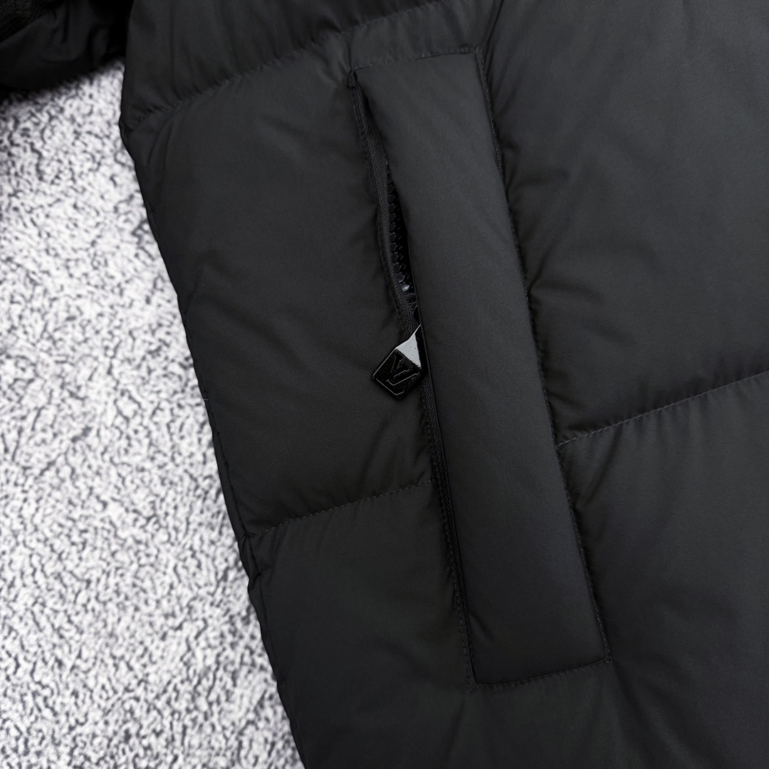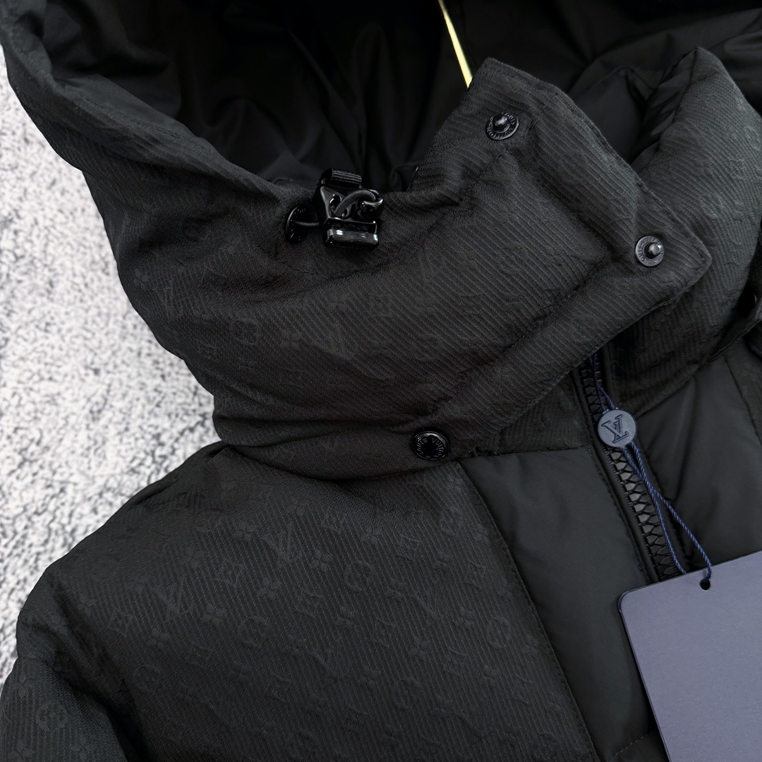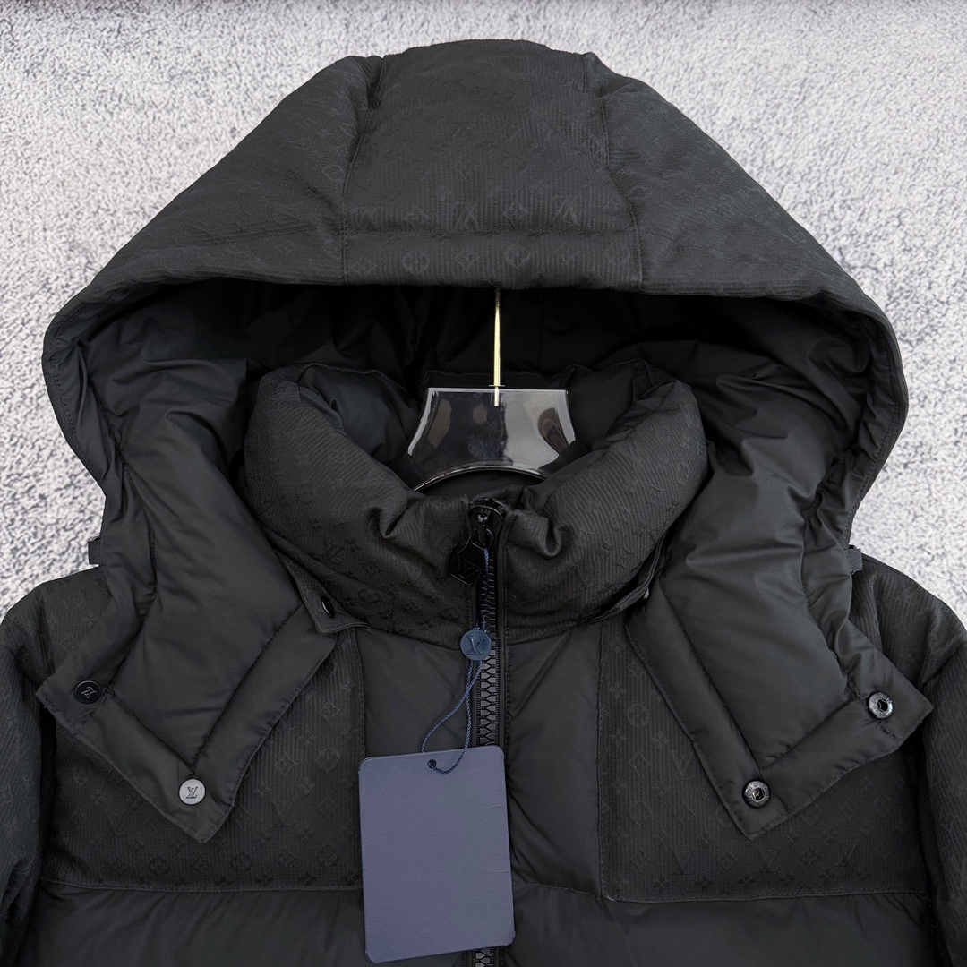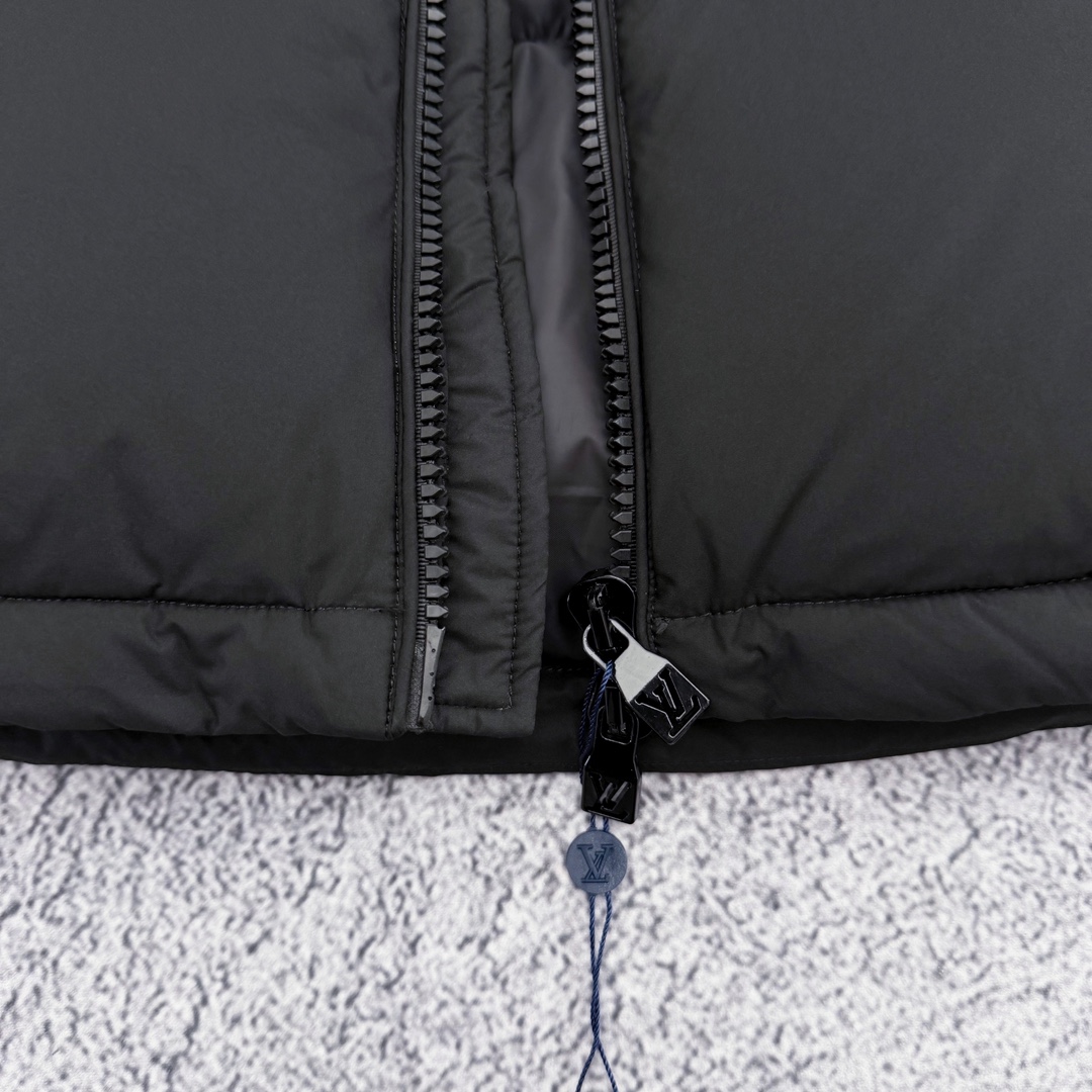 严选好货 路易威登Louis Vuitton新款男女可拆卸连帽羽绒服外套 某宝代购20000 客供轻量化羽绒专用面料 内里90 鹅绒填充 轻盈蓬松 保暖舒适 可拆卸连帽设计 一衣两穿 肩袖满印提花logo拼接 肩部硅胶徽章点缀 双开拉链门襟 松紧防风袖口 原版五金辅料 做工细节都无可挑剔 上身效果一级棒 可配情侣 喜欢的不要错过 颜色 黑色 尺码 S一2XL 模特160 98斤穿S