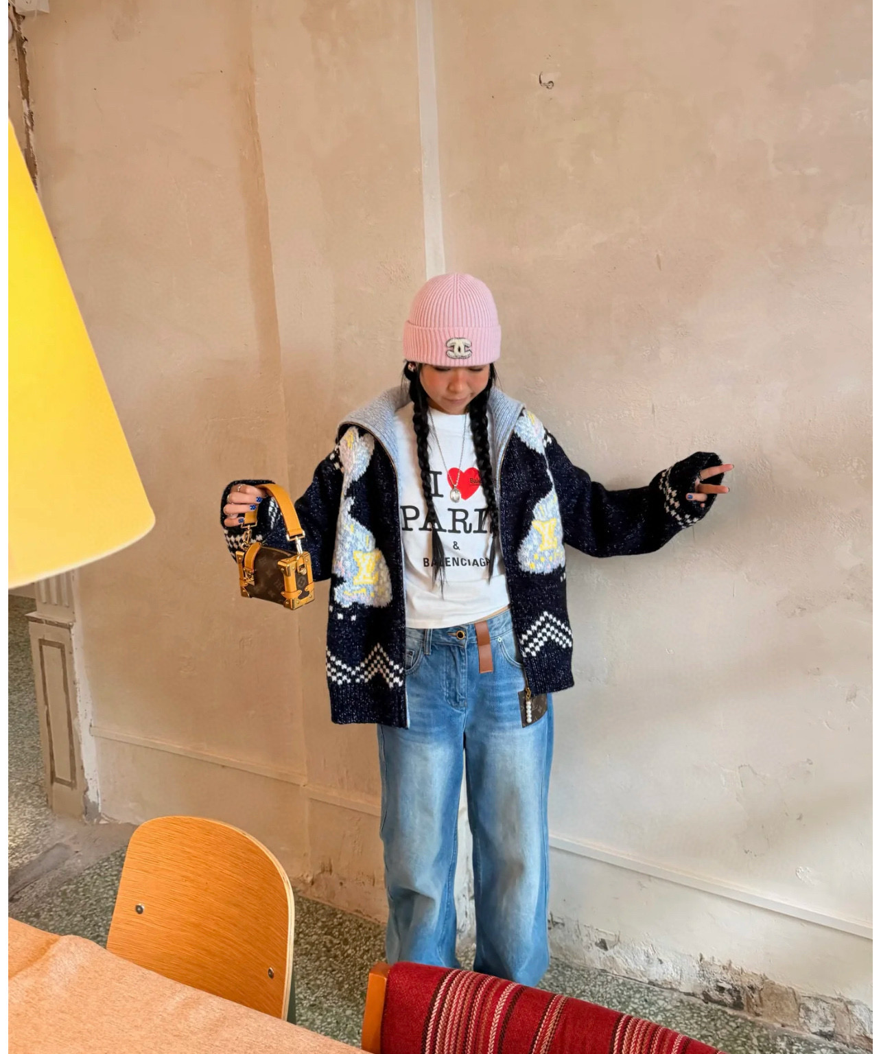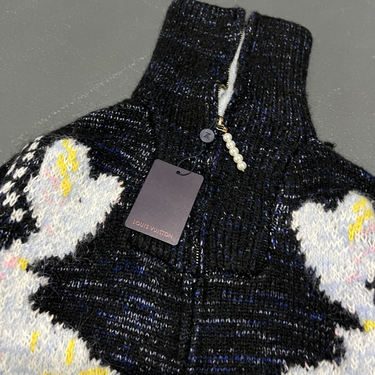 Louis Vuitton LV 路易威登 25ss联名款锦鲤提花粉花logo女款高领大翻领两穿针织毛衣珍珠拉链开衫 顶级南油版本