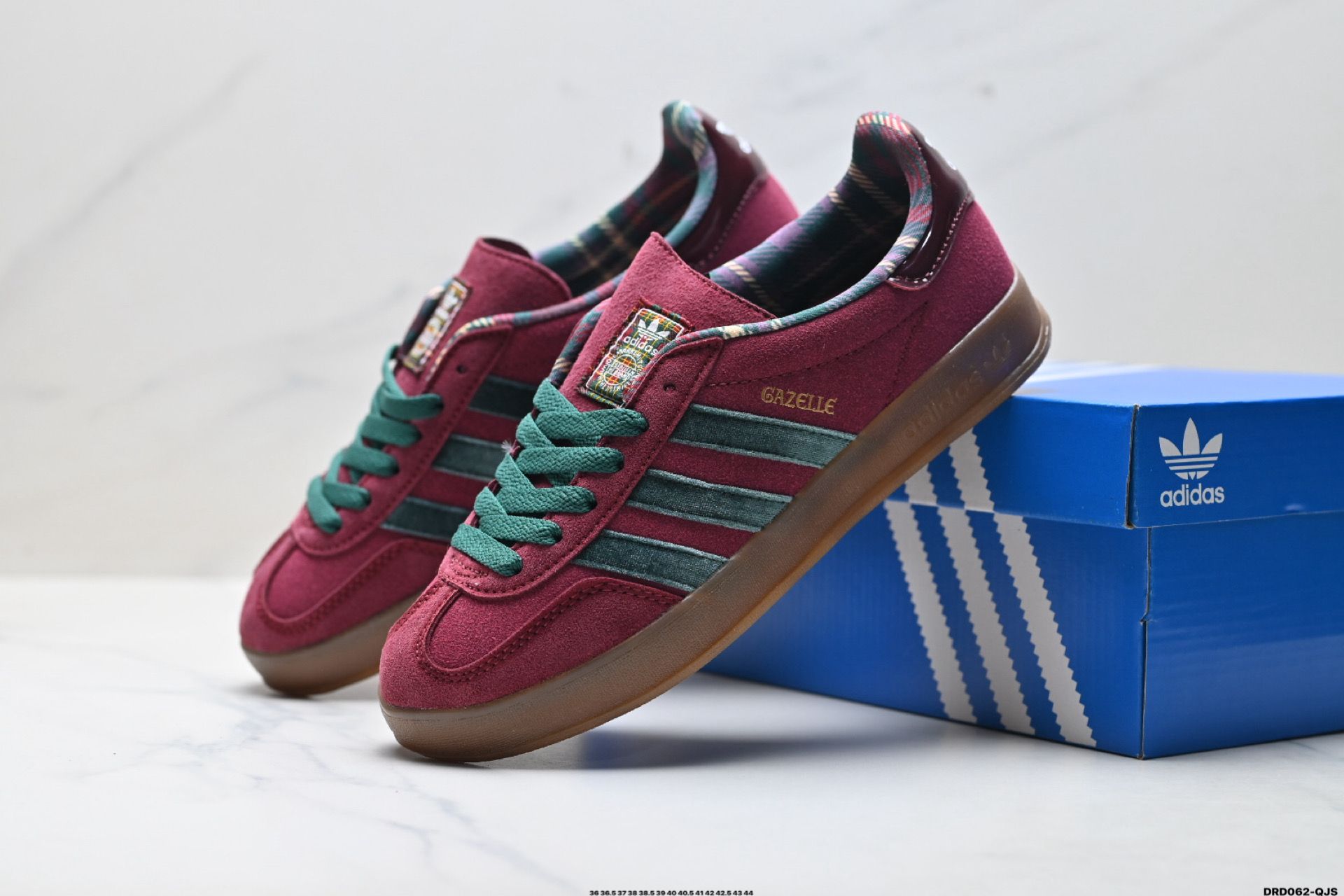 真标Adidas Originals Gazelle INdoor 阿迪达斯 三叶草休闲防滑耐磨低帮板鞋 官方货号 JR4501 尺码 36 36 5 37 38 38 5 39 40 40 5 41 42 42 5 43 44 ID DRD062 QJS