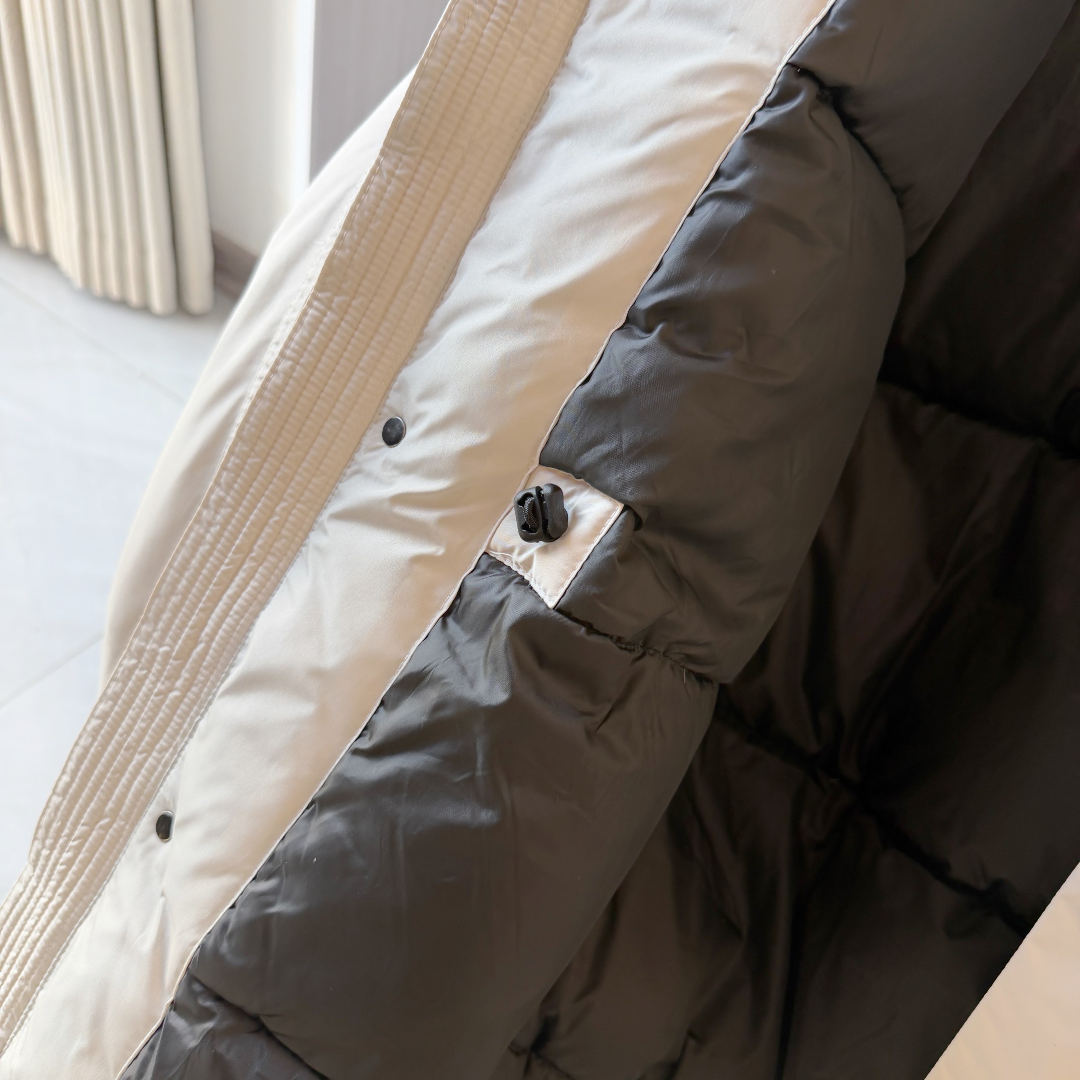 官网同步发售 可做情侣款 这件羽绒外套在保暖与潮流之间找到了恰到好处的平衡 外层选用防风防泼水的尼龙面料 并以低光泽哑光涂层处理 手感顺滑 抗皱耐磨 上身更显高级 衣身通过多块立体裁片组合 让肩线与腰部走势更加贴身 视觉上更挺括 也避免了羽绒服常见的臃肿情况