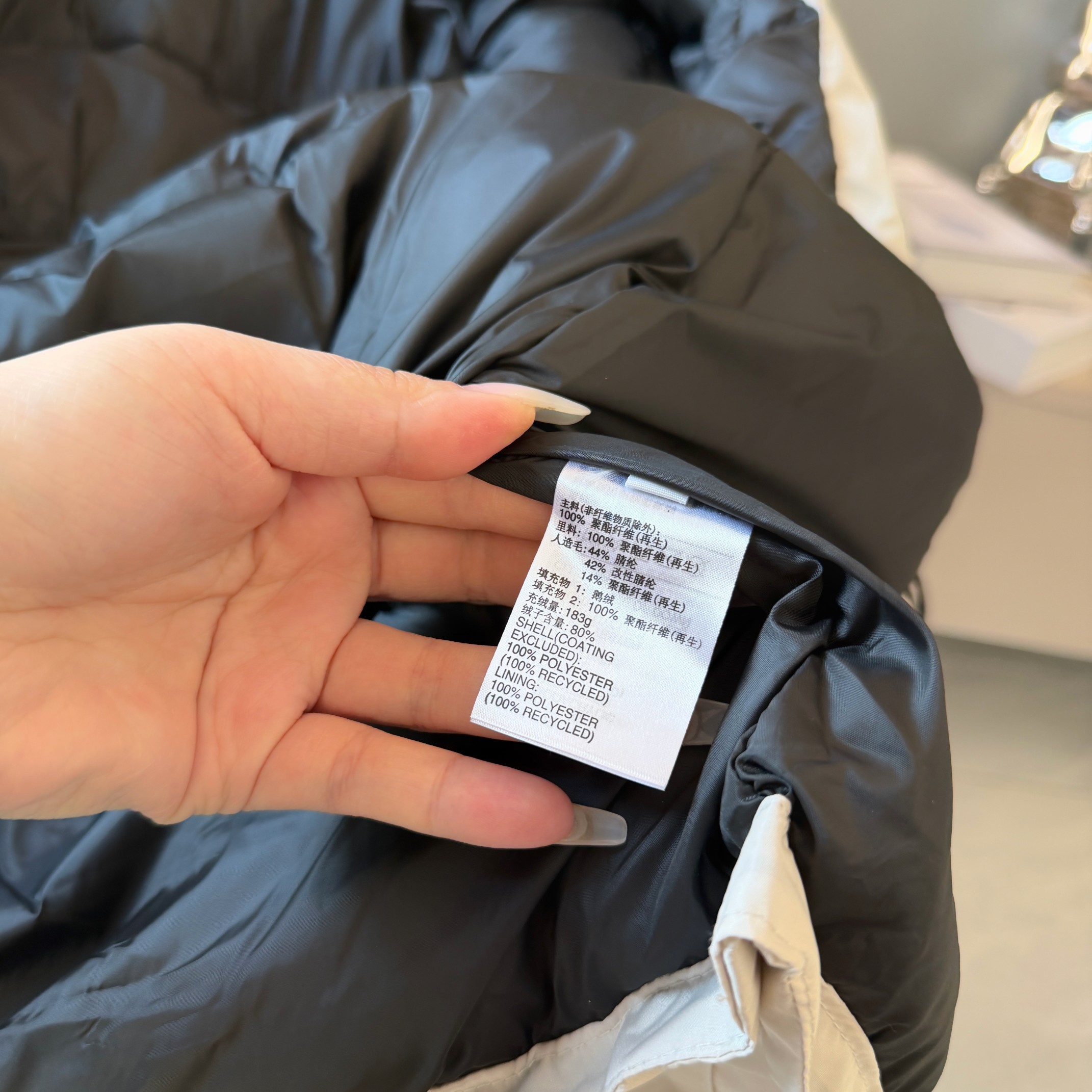 内部填充 80 含绒鸭绒 150 200g 采用分格填充搭配精细绗缝 让绒朵稳固不乱跑 按压后能迅速恢复蓬松 保暖性与轻盈度兼具 高密度防钻绒里布结合双线细密走针结构 有效规避钻绒问题 提高整体使用寿命