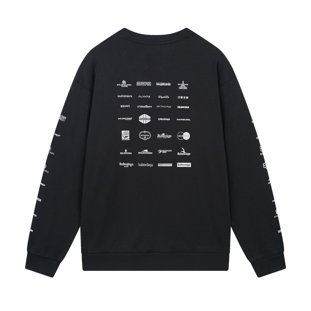 细节图 顶级版本 官网品质 BALENCI GA 巴黎BALENCI GA 2024春夏季新款 印满经典LOGO集合长袖圆领卫衣 2024春夏新品 砖柜同步 欢迎对比