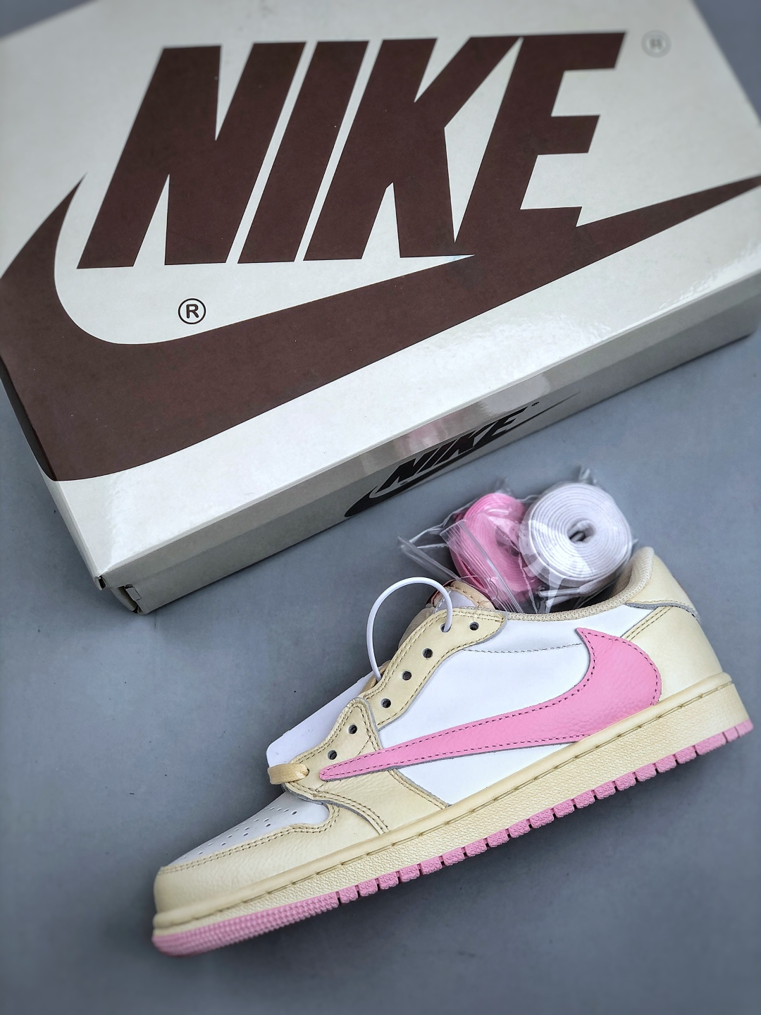 Travis Scott x Air Jordan 1 Low 低帮 米白粉倒钩 AJ1 乔丹1代 aj1 乔1 低邦