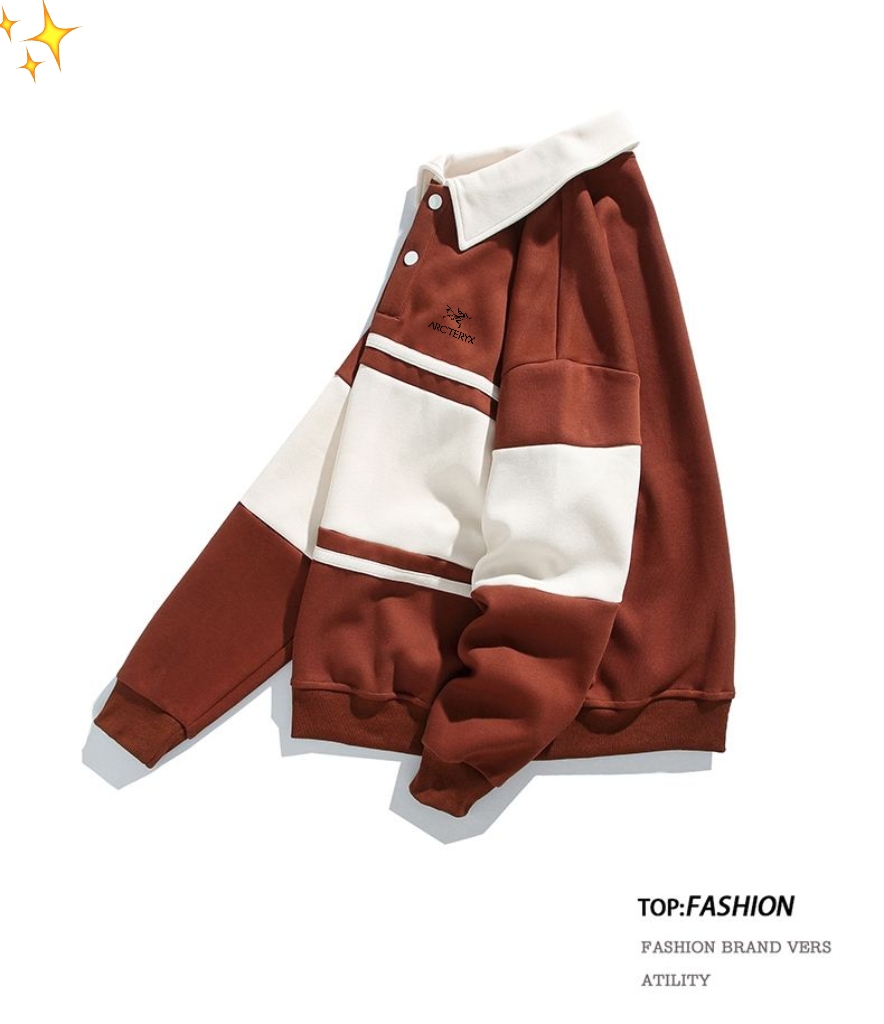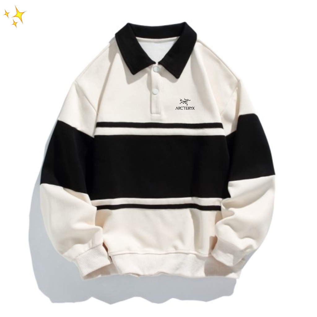 ARC TERYX始祖鸟 专柜版撞色条纹拼接翻领Polo衫套头卫衣上衣 男女同款