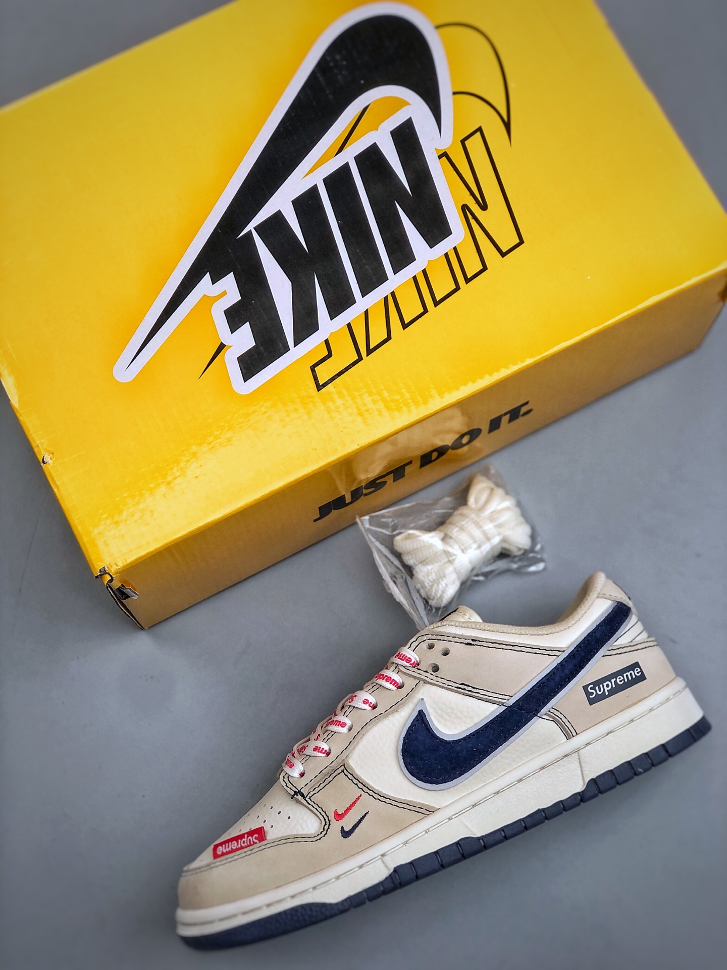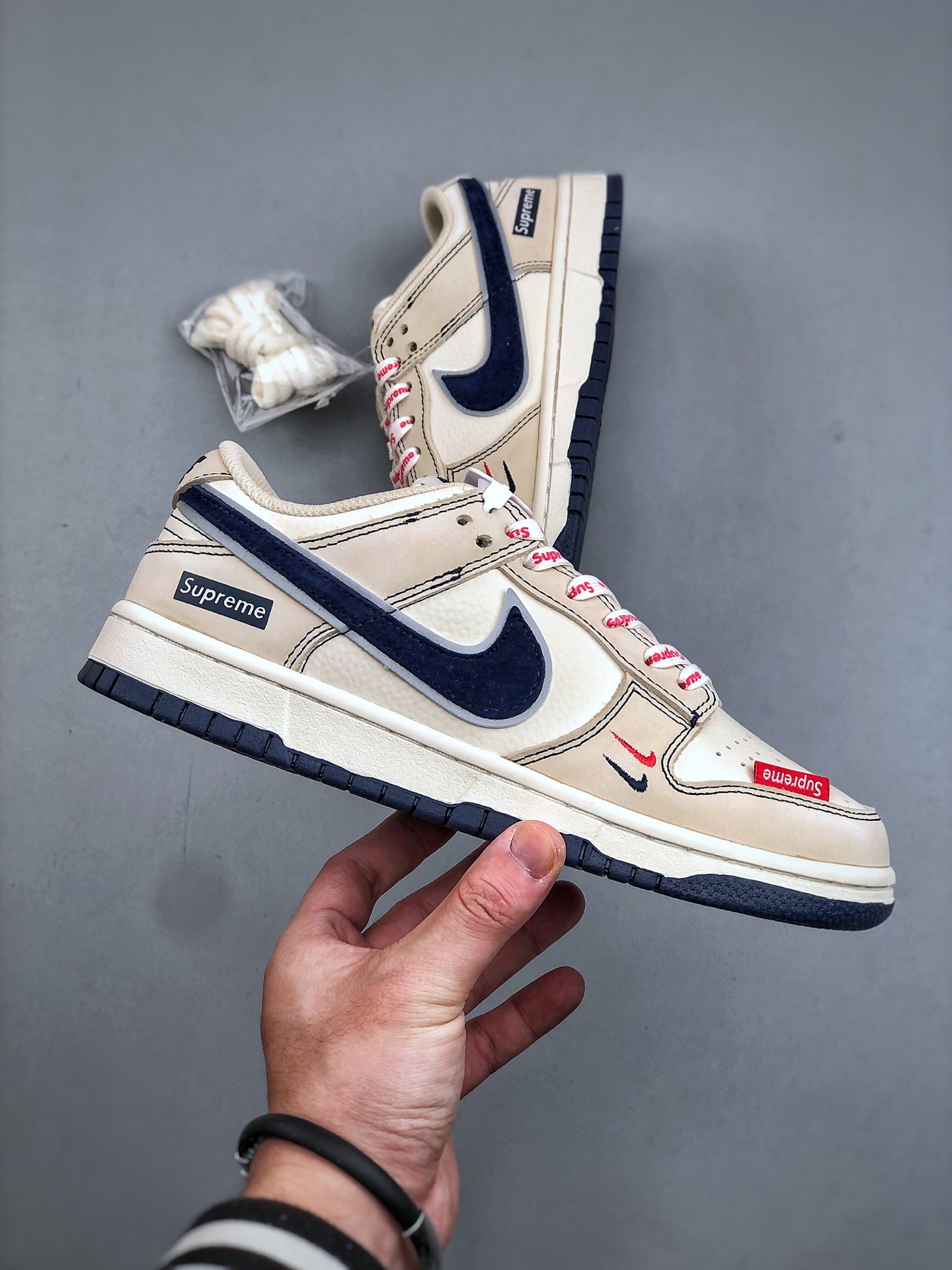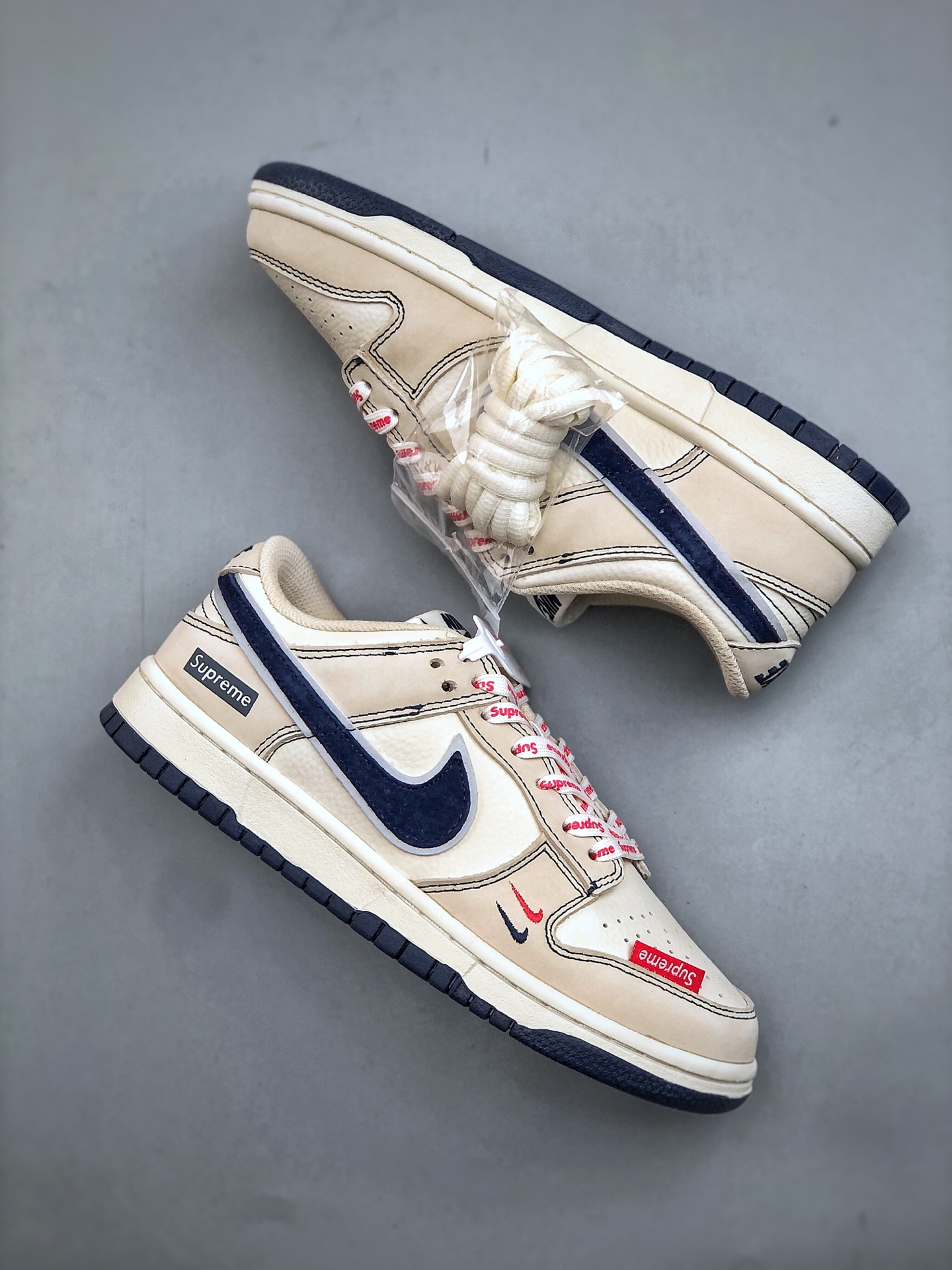 XC版 海外爆款限量发售 Nike SB Dunk Low Supreme联名 米蓝头层皮 周年高端定制 低帮休闲板鞋 定制鞋盒 大厂纯原品质出货 超高清洁度 皮料切割干净无任何毛边 细节完美