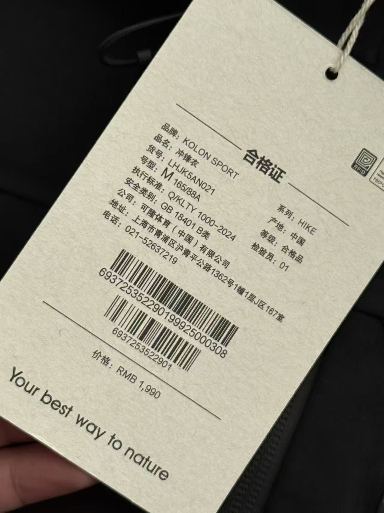 220293799 - KOLON可隆风脊石墨烯软壳夹克防泼水防静电防风男女外套 完 489733