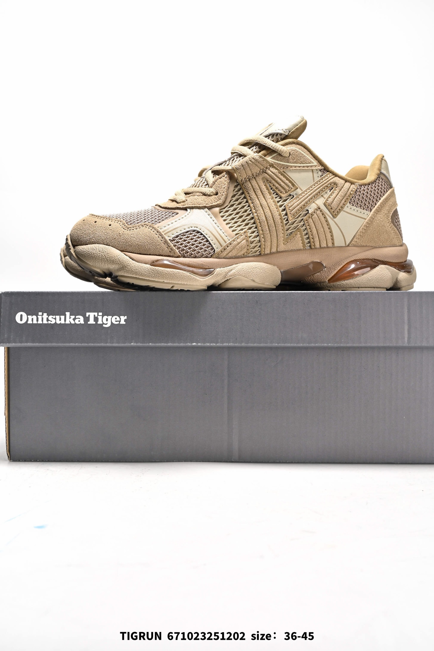 全新ICON LOGO 采用特色网布和皮革的异材质拼接 轻量且富有弹性的材质 赋予双脚弹跳般的穿着感 前掌与后跟两处可视化GEL胶 提升缓震性能 外置TRUSSTIC中桥 增强稳定性 流线型鞋底融入了品牌象征的老虎图案 带来强烈的视觉冲击 兼顾弯曲性与缓震