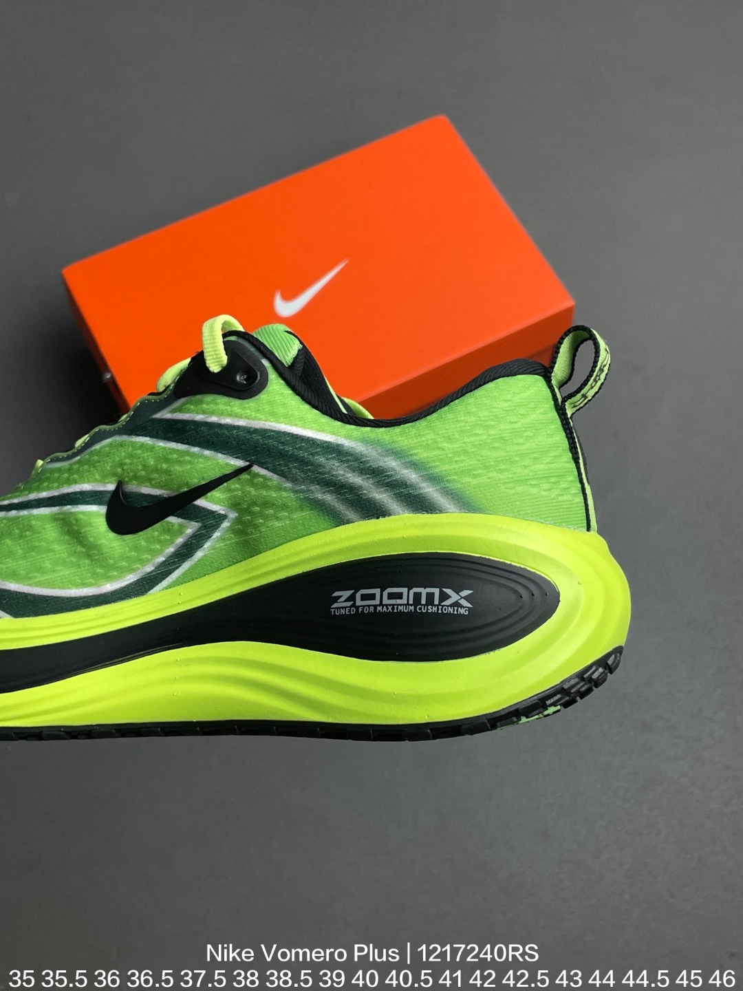 Nike 耐克 采用科技织法轻盈织物合成鞋面材质 ZoomX 泡绵中底 外置外置防滑耐磨橡胶底片造舒适迈步体验 助力日常畅跑 耐克Nike Vomero Plus Bright Mango 佛莫罗加强版系列低帮轻质厚底缓震公路透气休闲运动跑步鞋