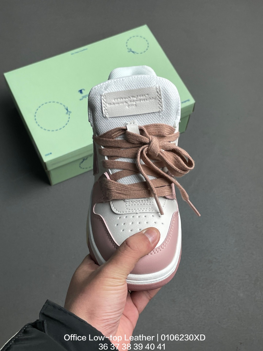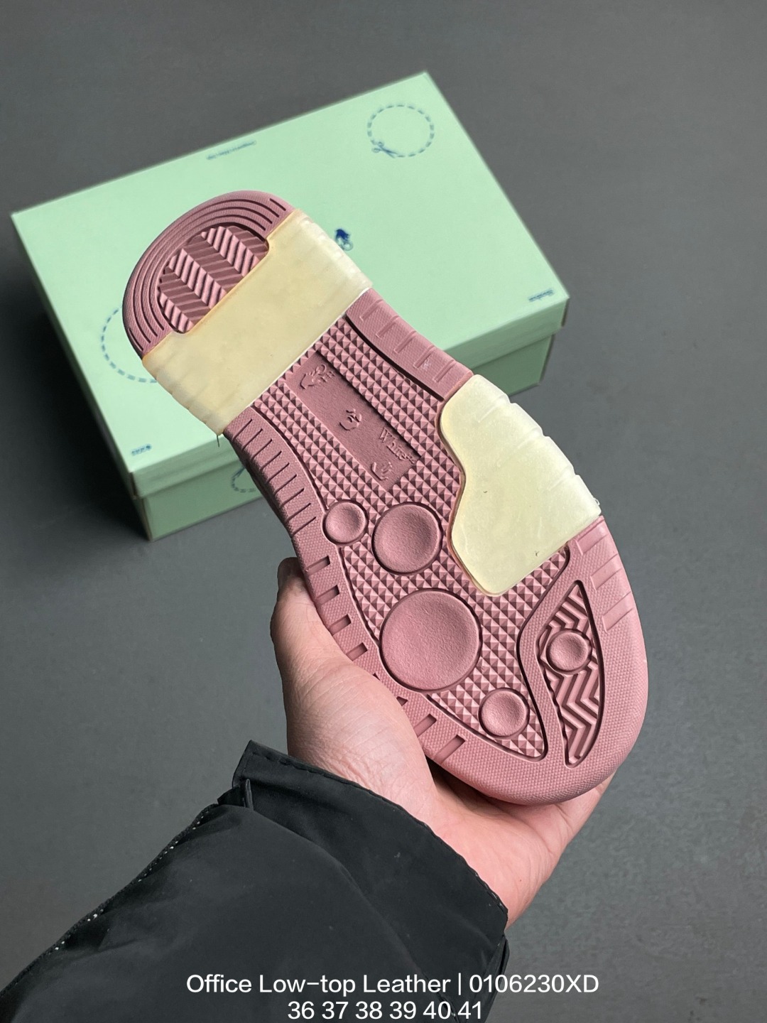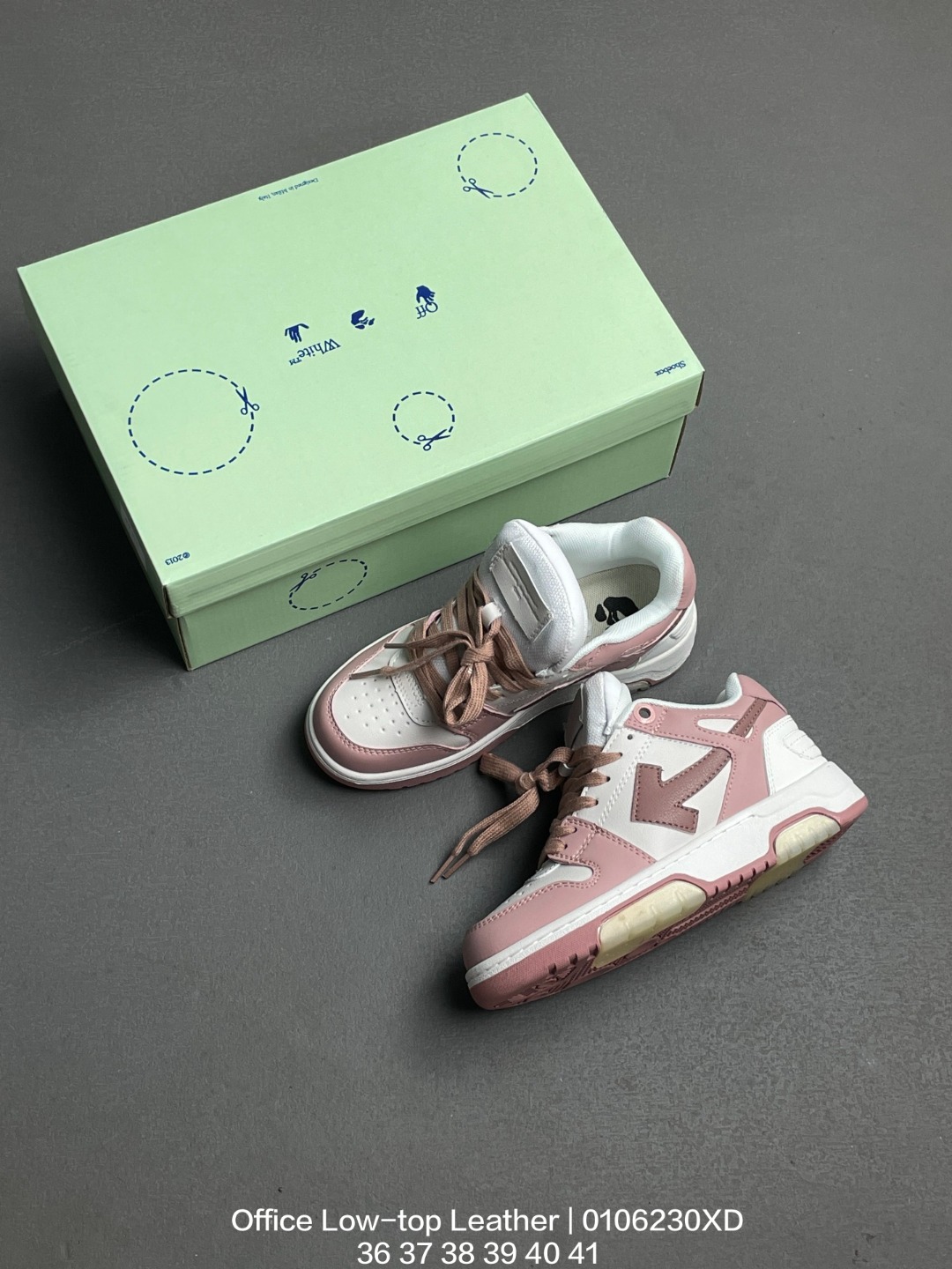 采用硬质荔枝纹牛剖革组合网眼布鞋面材质 鞋垫嵌入发泡缓震EVA物料 外置耐磨隔色橡胶鞋底当红美潮街头设计师独立品牌Off White c o Virgil Abloh Out Of Office Low top Leather Sneakers OOO 系列低帮复古百搭休闲运动板鞋