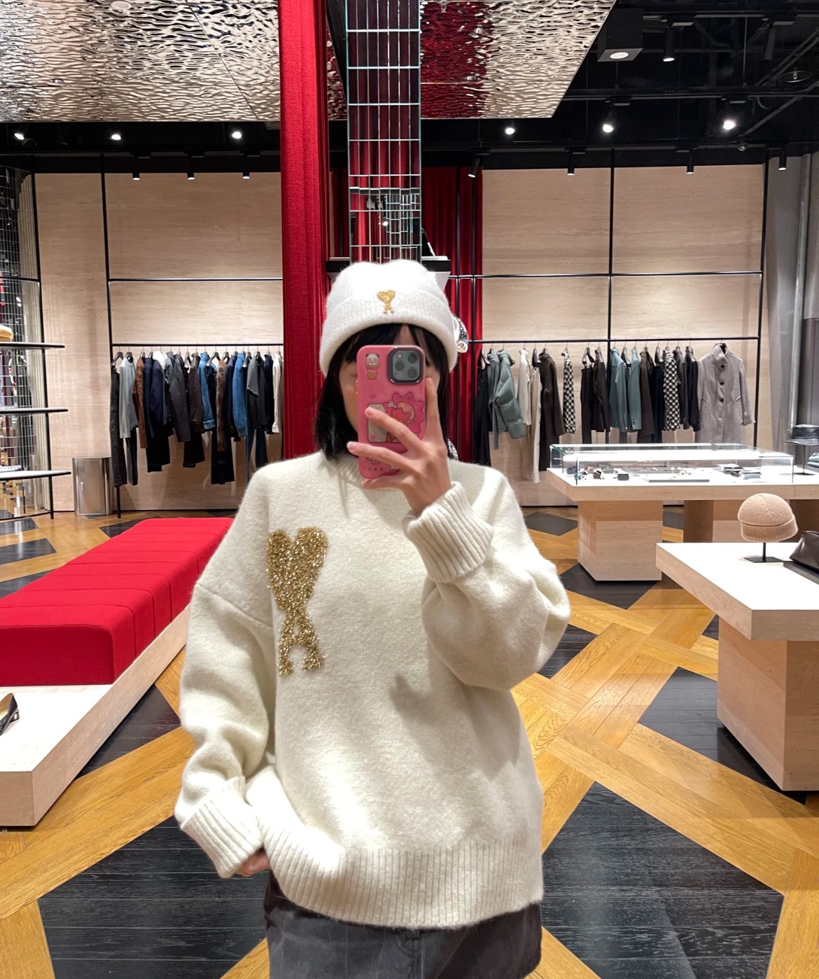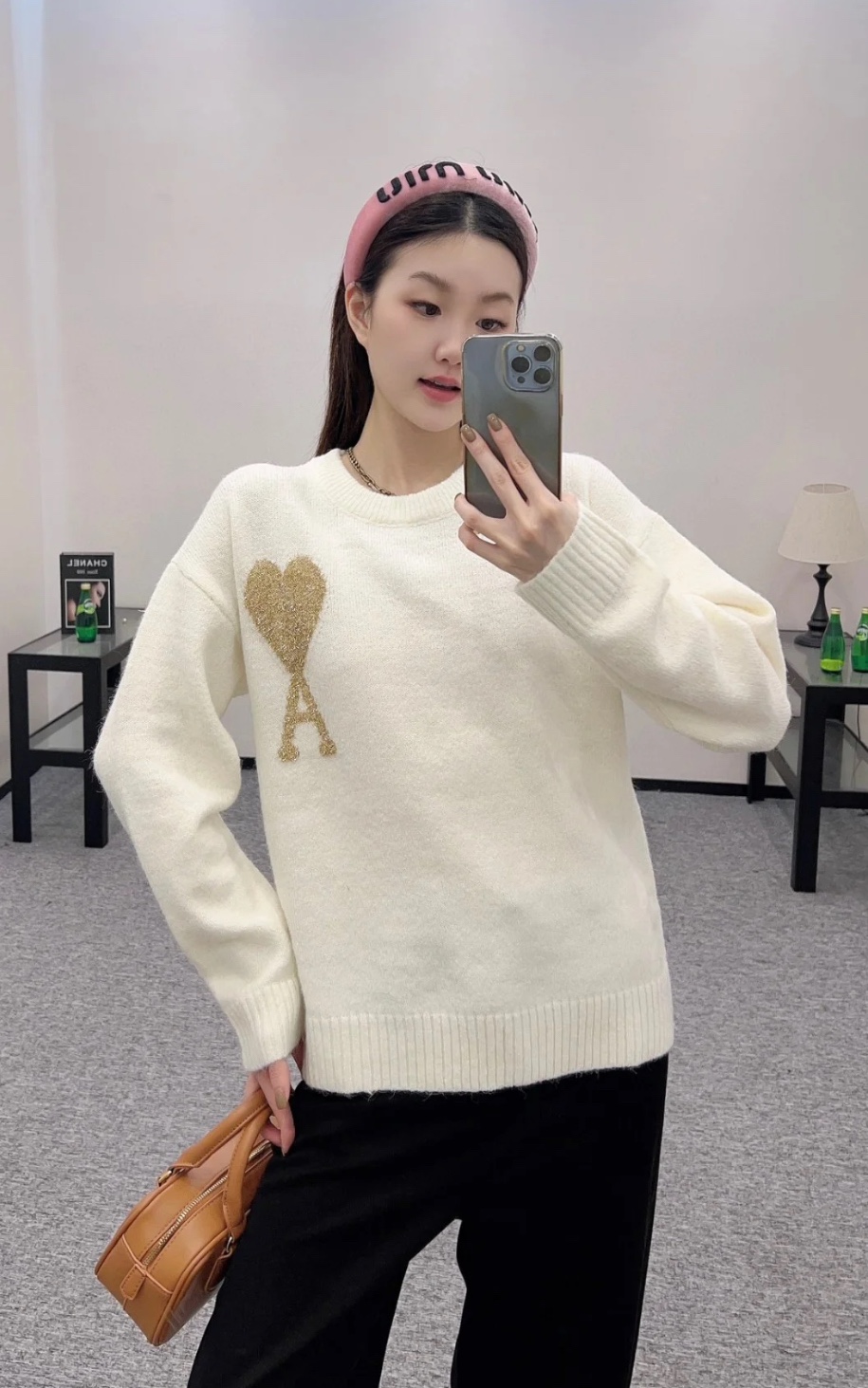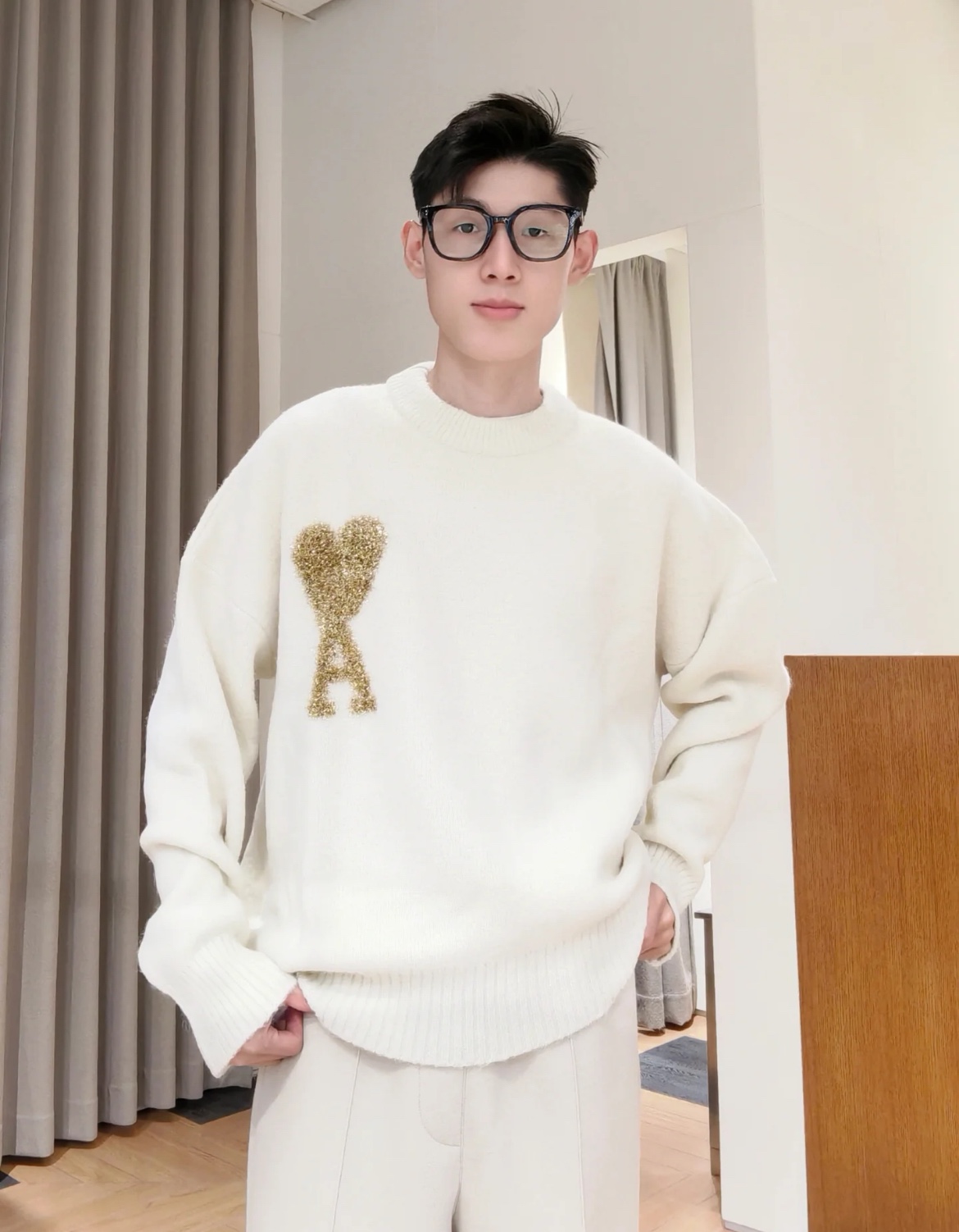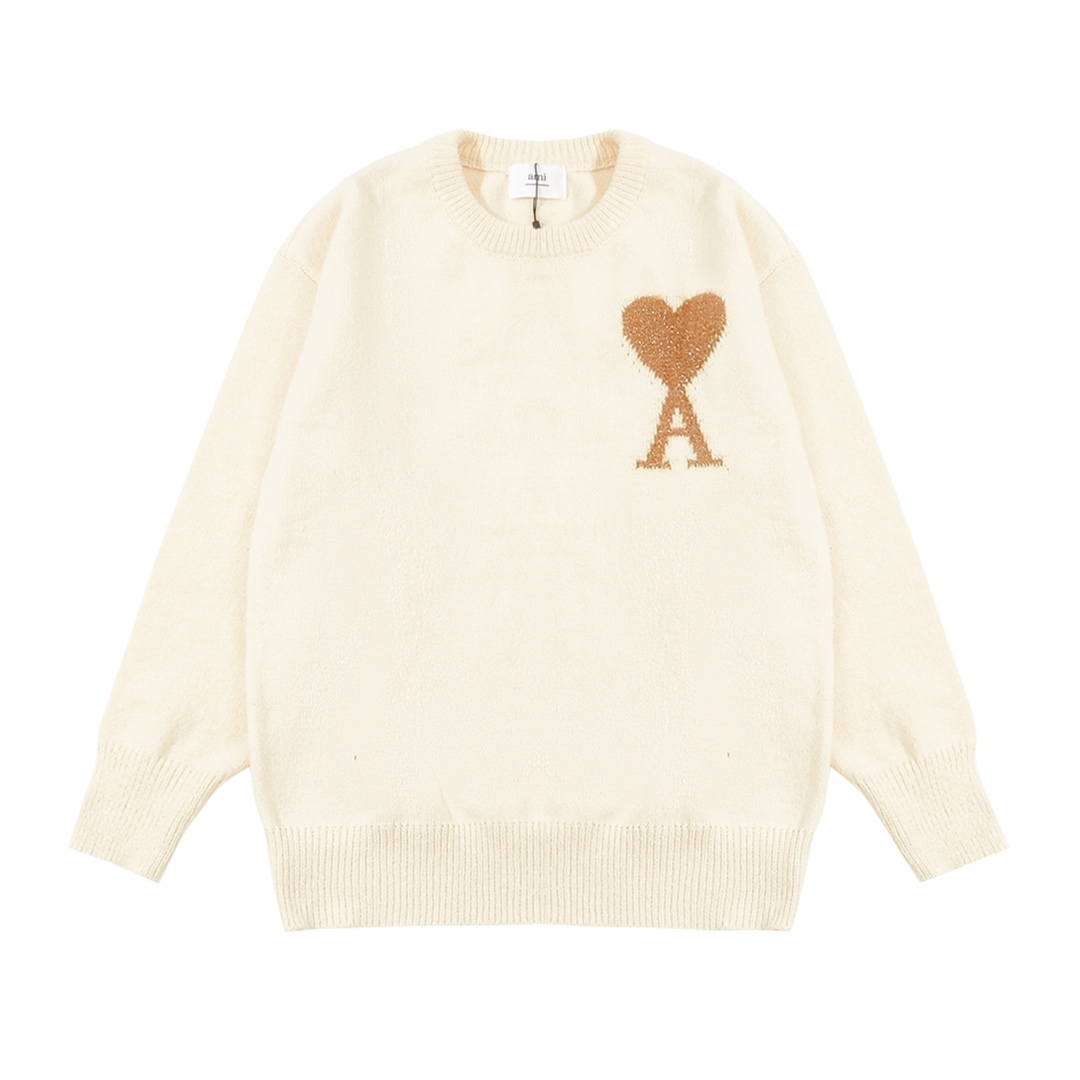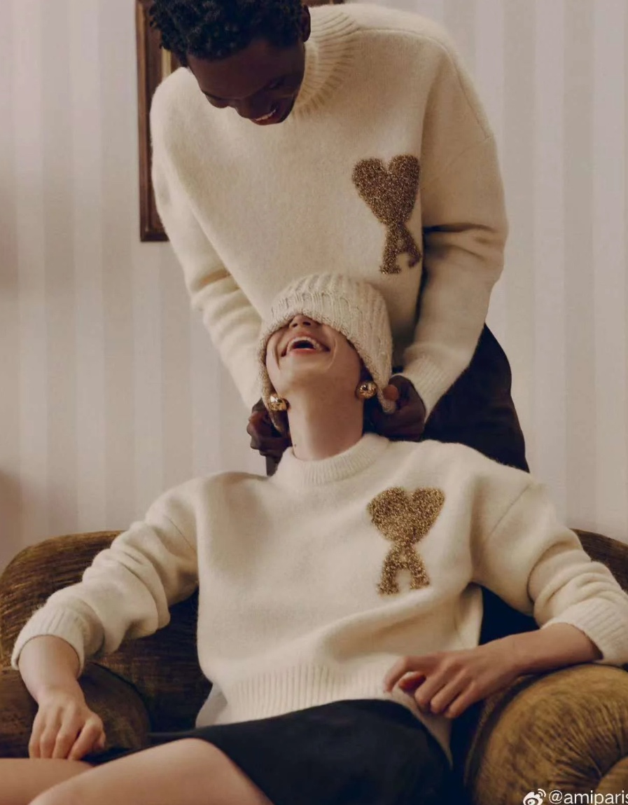 AMI PARIS 艾米 24FW 圣诞限定金线爱心 logo 提花情侣针织圆领毛衣 顶级原单版本