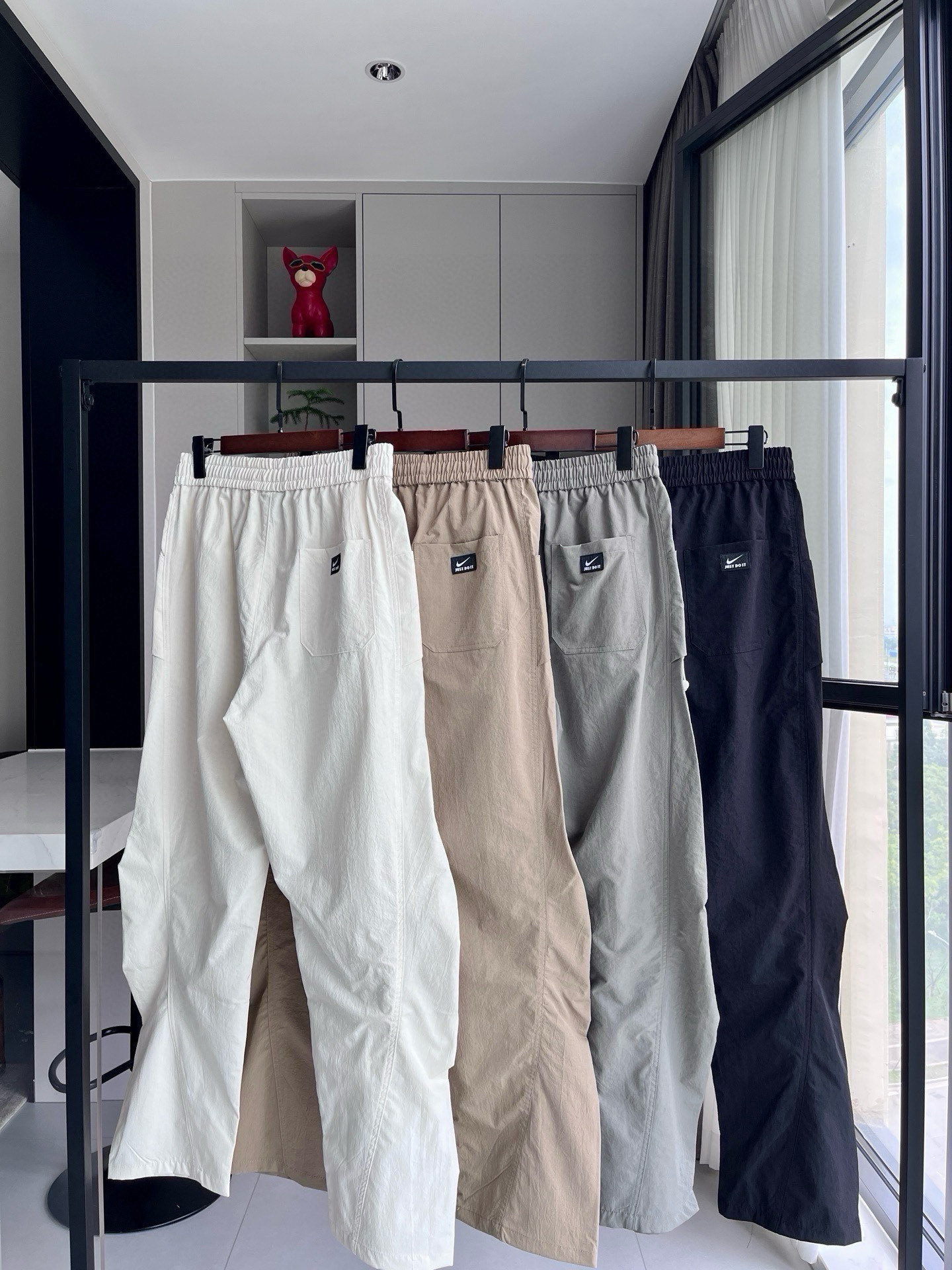 nike耐克美式铆钉褶皱直筒裤卫裤 ins韩版夏季新款 松紧腰宽松显瘦显高 采用优质面料 细节质感极佳后面口袋搭配膝部铆钉设计更显潮流正品廓形版型休闲慵懒 完美修饰腿型 低调更懂格调三标细节到位 转发爆单