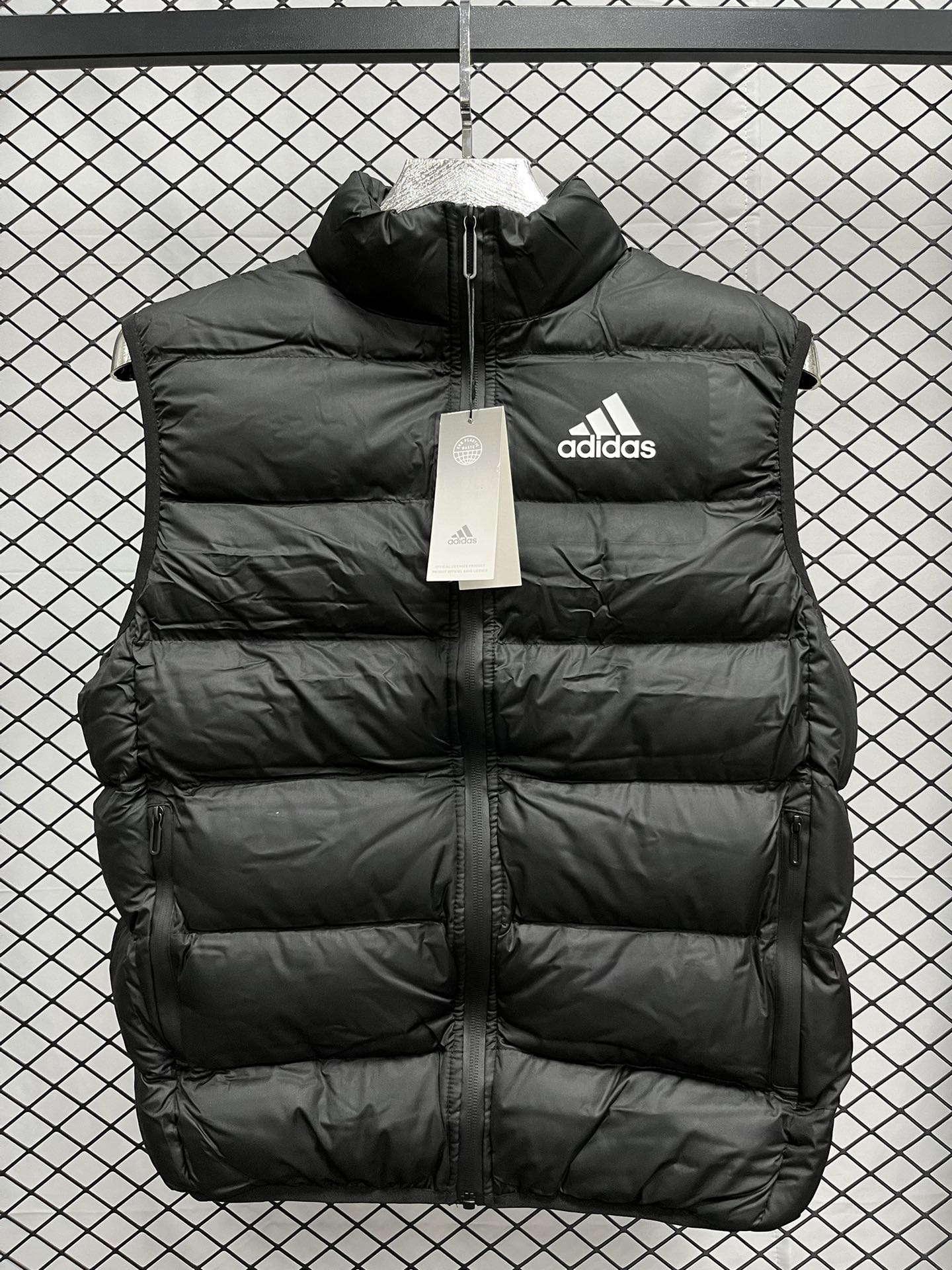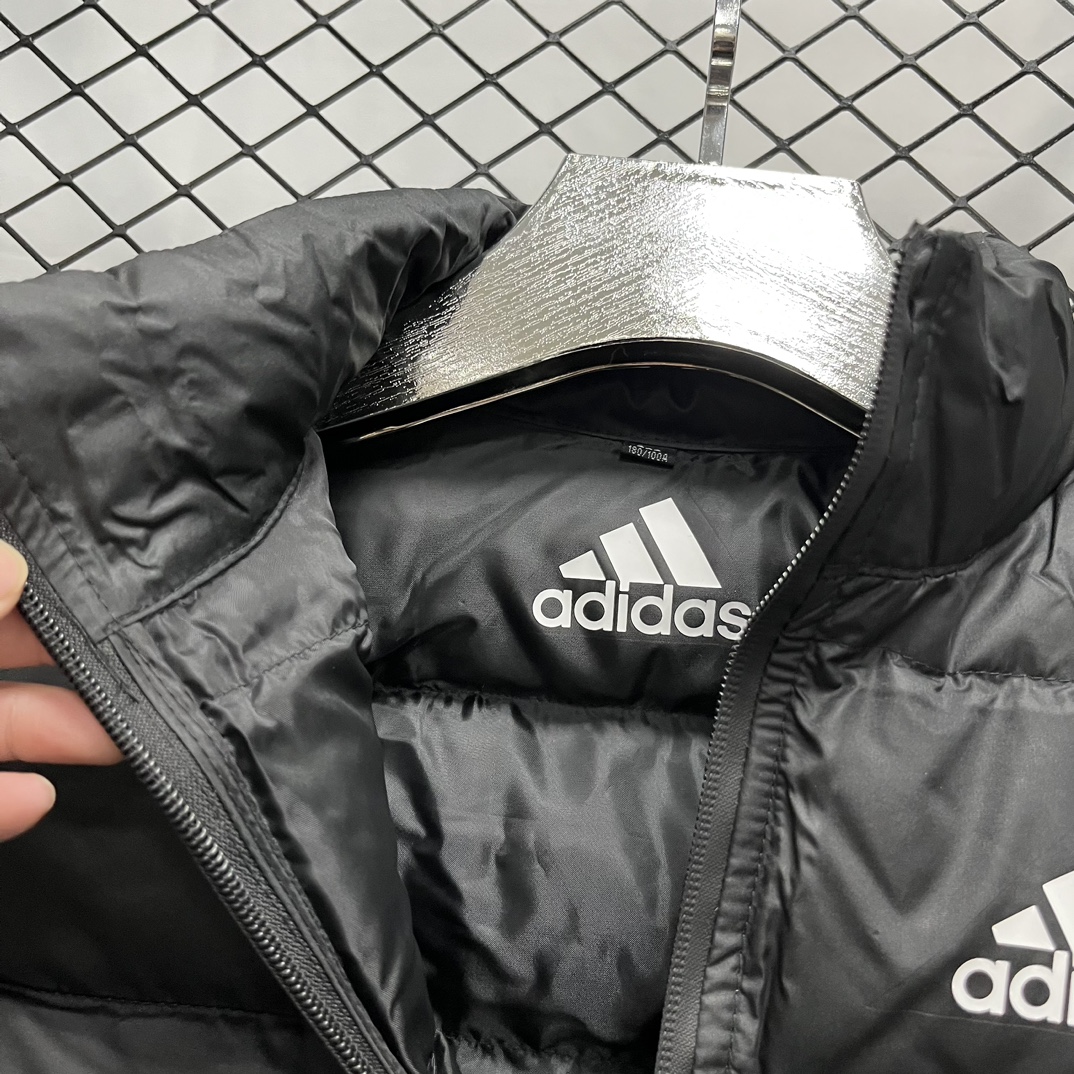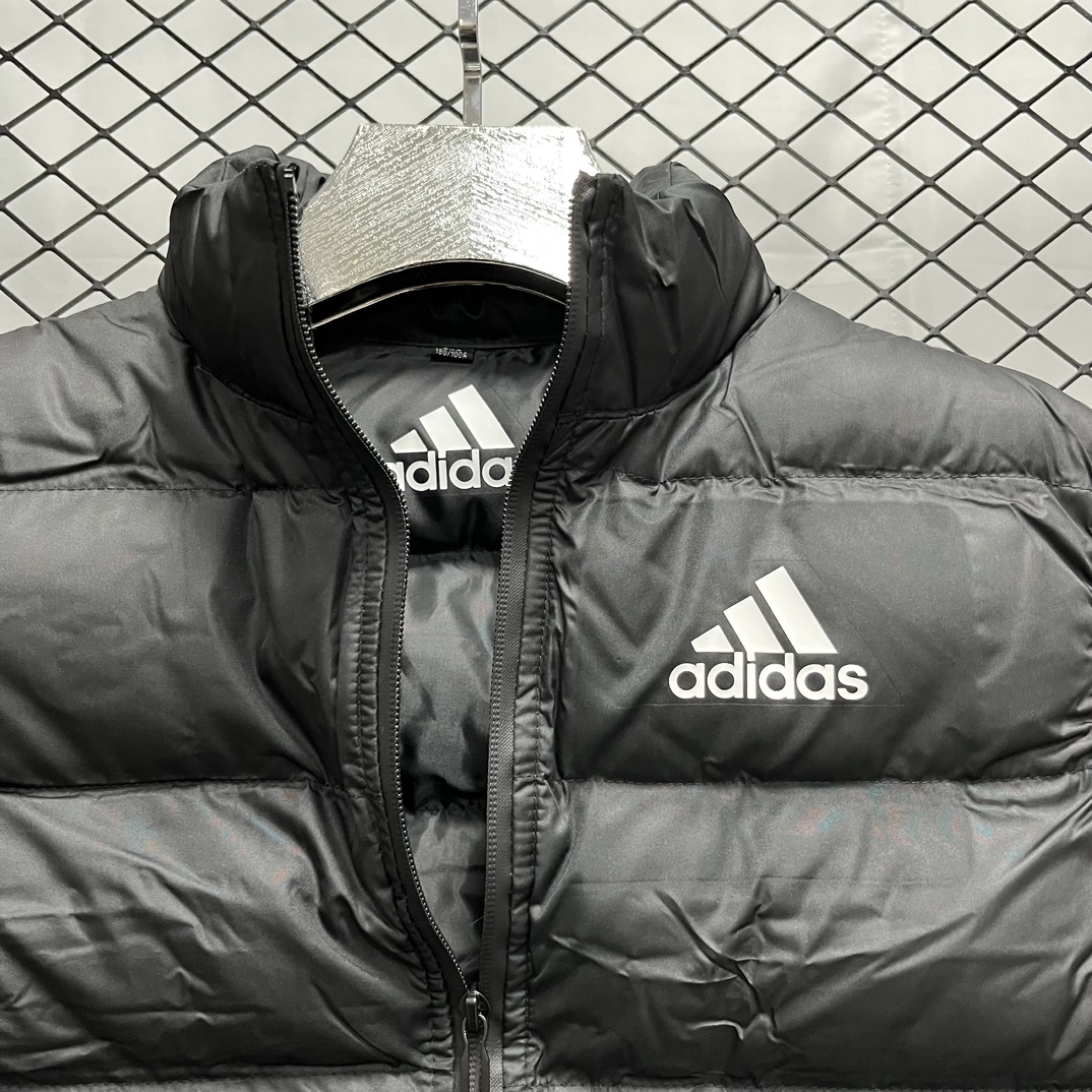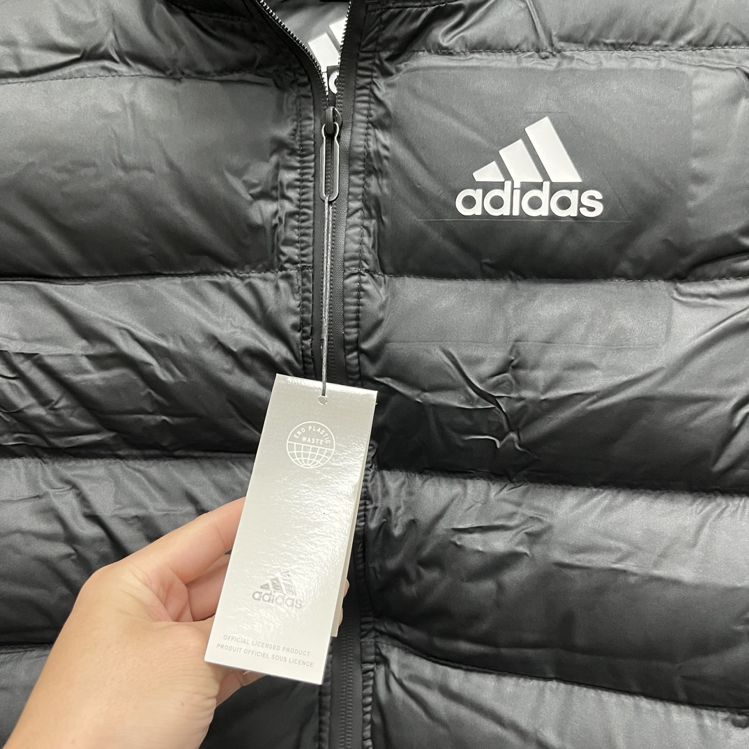 上新 得物品质 现货 adidas 阿迪达斯马甲纯色Logo印花 防风拉链羽绒棉马甲 立领无袖 马甲 厚实 蓬松保暖马甲