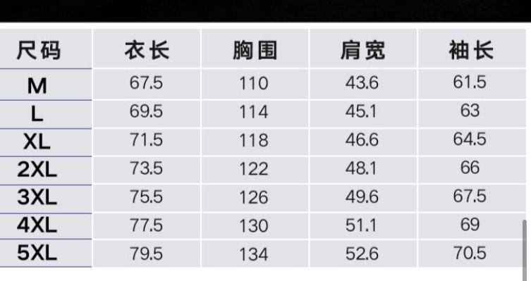 尺码 M 5XL